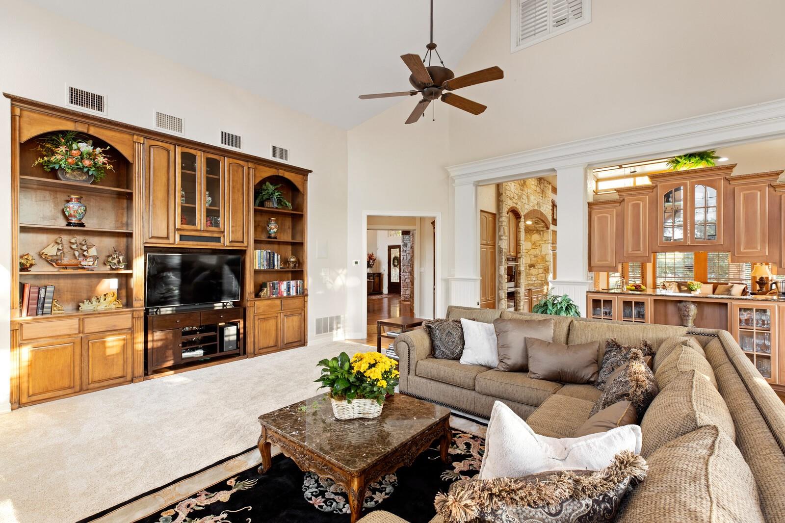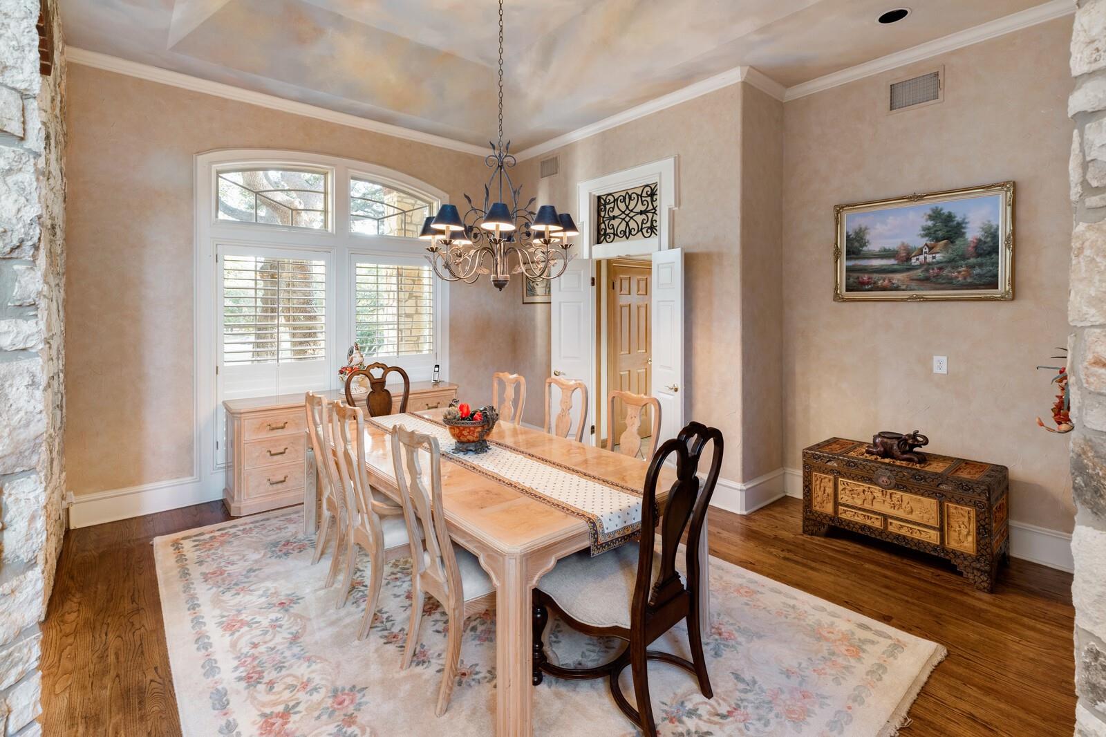 | Interior Features | Bookcases, Built-in Features, Cedar Closet(s), Ceiling Fan(s), High Ceilings, Granite Counters, Double Vanity, Entrance Foyer, French Doors, Kitchen Island, Multiple Dining Areas, Multiple Living Areas, Natural Woodwork, Pantry, Primary Bedroom on Main, Soaking Tub, Walk-In Closet(s) | |