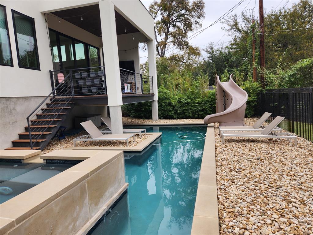 Rare recently constructed 1 Story with an inground custom pool and hot tub on a thru lot that backs to a park/greenbelt area. Walkable to The Grove, restaurants, shops, parks, walking/biking trails and top rated elementary school!