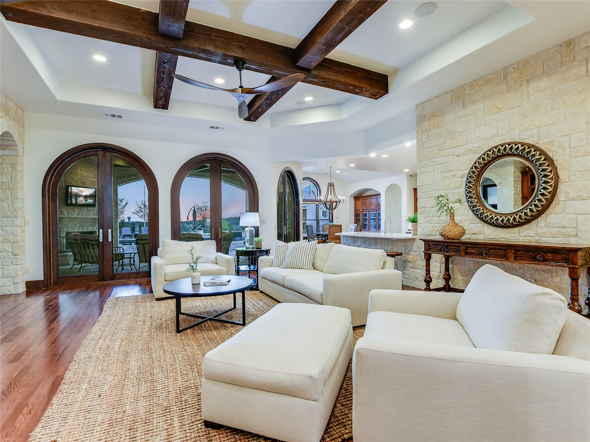 | Interior Features | Two Primary Suties, Bar, Built-in Features, Cedar Closet(s), Ceiling Fan(s), Beamed Ceilings, Quartz Counters, Kitchen Island, Pantry, Primary Bedroom on Main, Walk-In Closet(s) | |