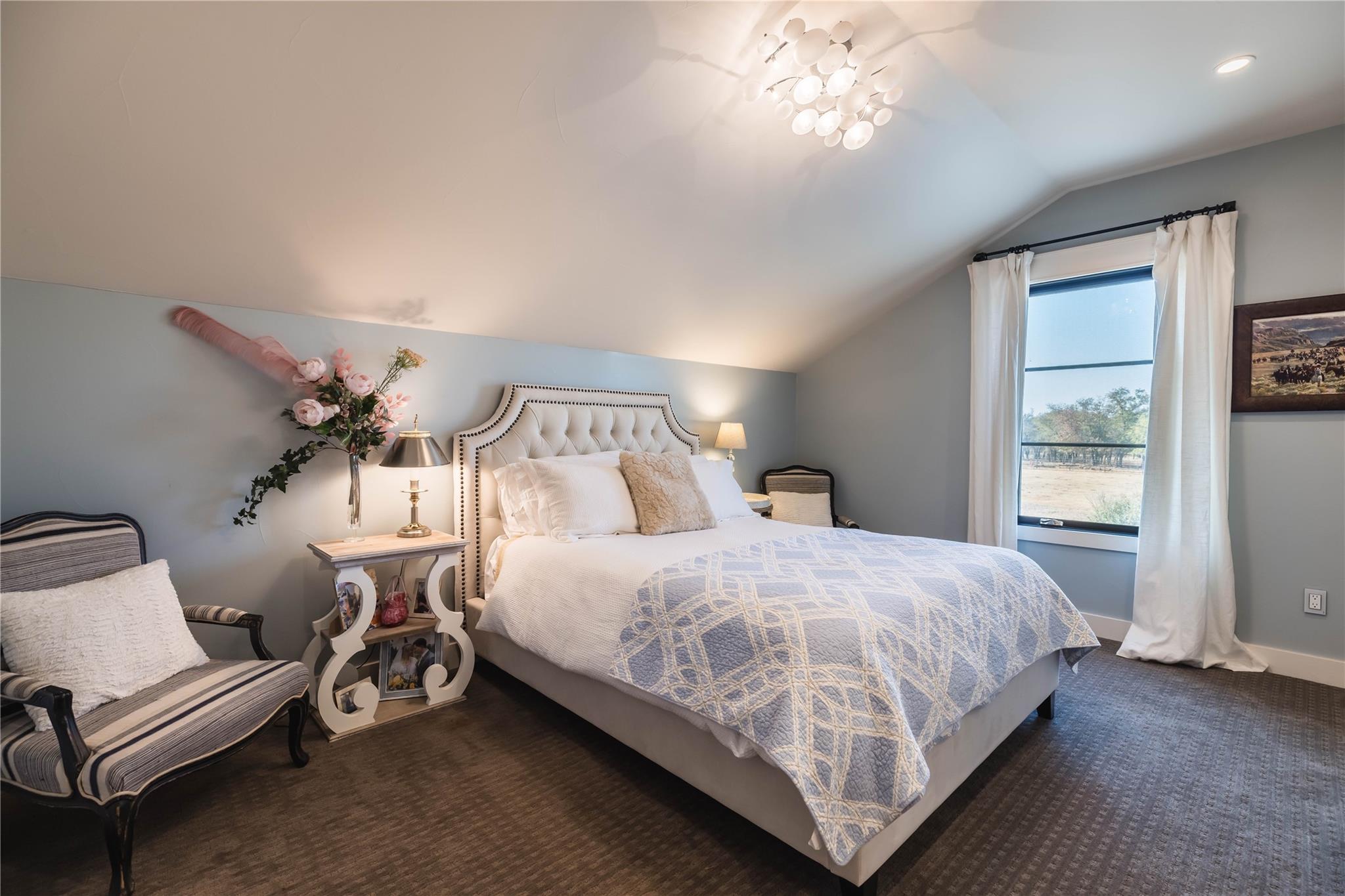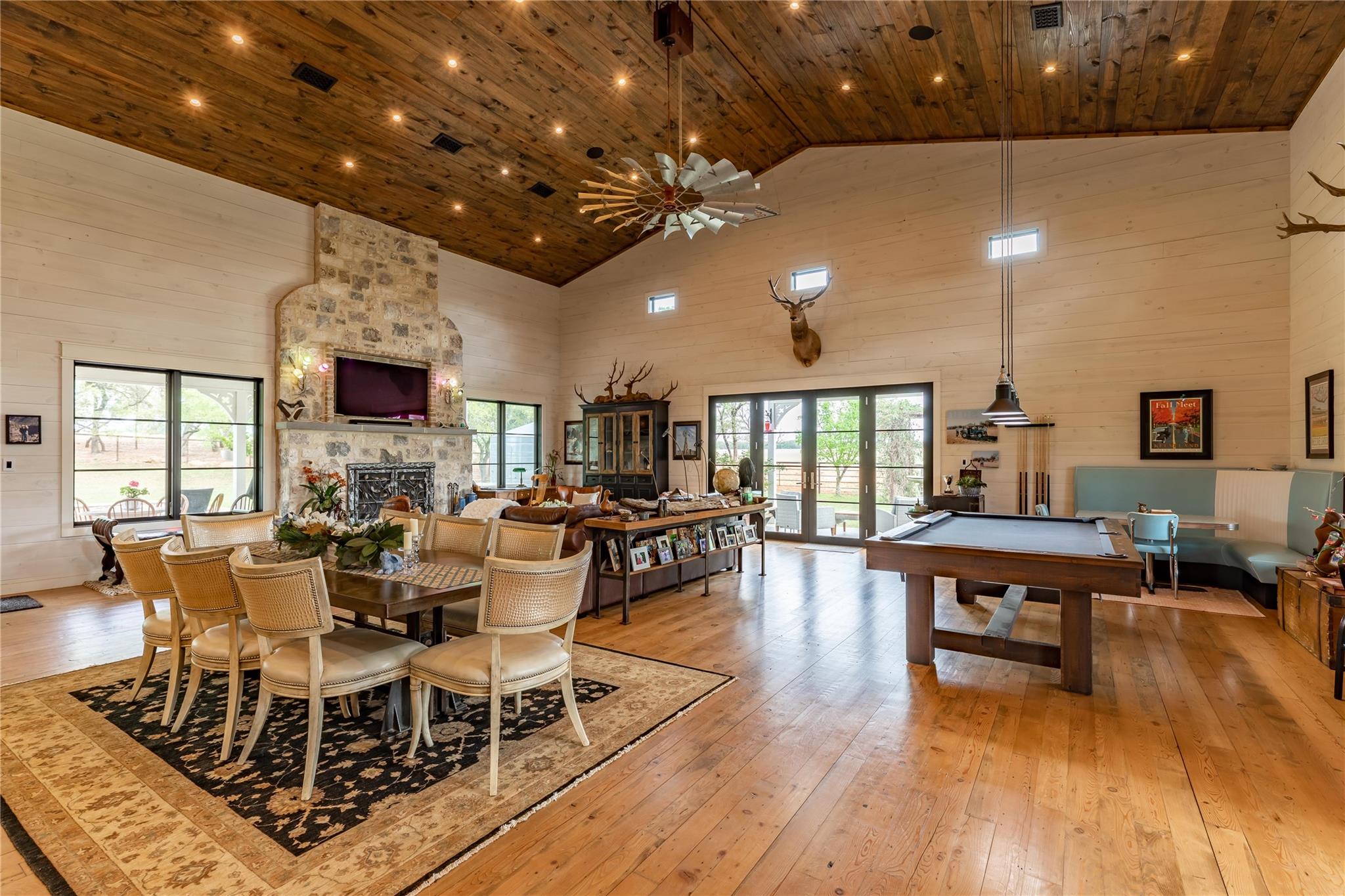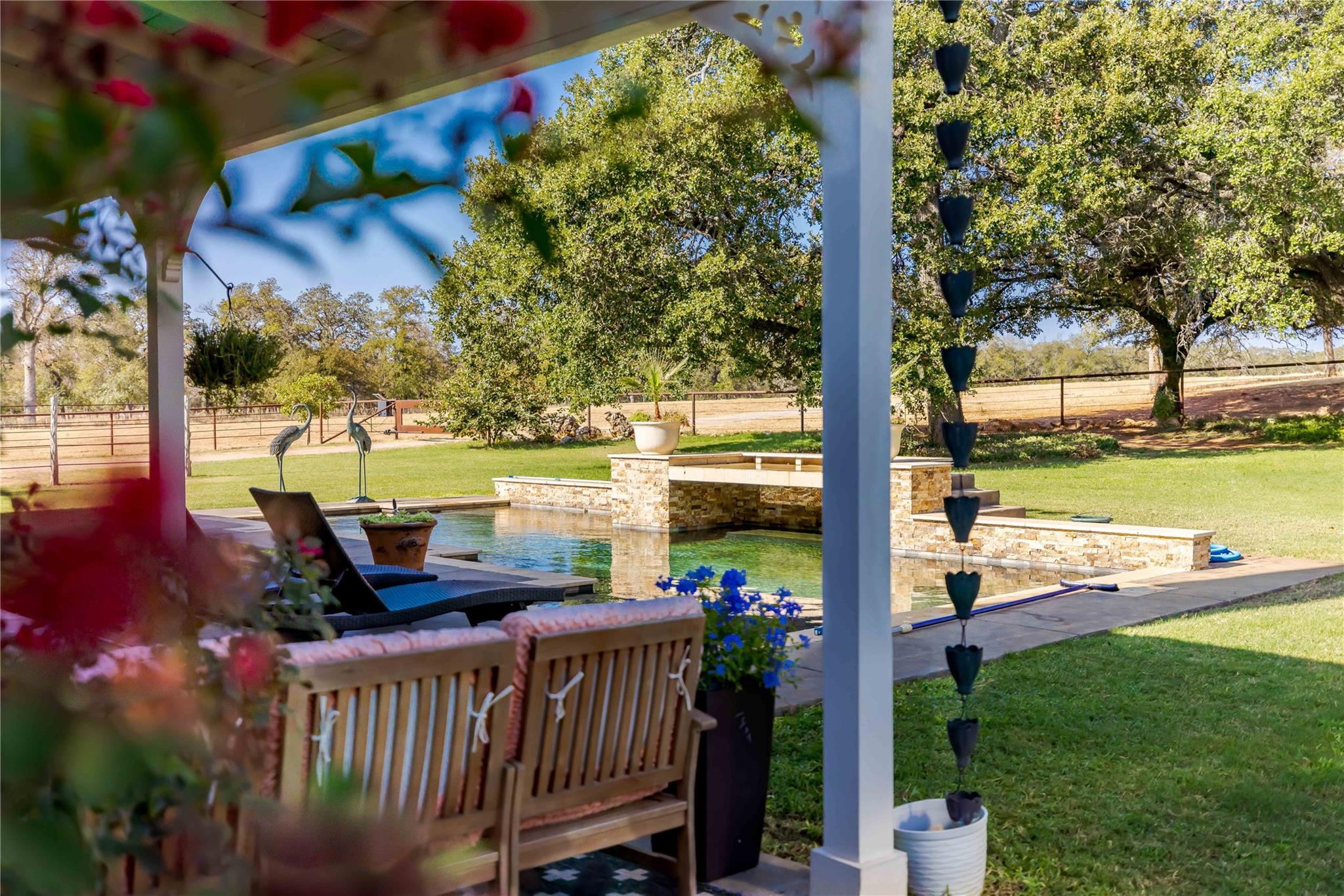 HILL COUNTRY HAVEN! Located on 69+/- acres in Fredericksburg, Texas, at the end of a country road that provides ideal privacy and quiet solitude, yet only a few minutes to town. Bring your horses, your RV, and your love for land and a beautiful home, and settle into your own Hill Country Lifestyle. The home is surrounded by porches. On one side is a beautiful pool, and on the other side is a screened porch with an outdoor circular patio with a center fire pit. The open concept home is outfitted with high-quality finishes throughout, including reclaimed pine flooring from an 1800s barn, Murano glass fixtures, Rocky Mountain Hardware, custom tile backsplash (inspired by the Plaza Hotel in NYC), custom iron railing, shiplap walls, a fan that is made from a windmill, and a beautiful rock fireplace with a custom forged screen. The kitchen displays custom walnut cabinetry, top-of-the-line appliances, an ice maker, a workstation sink, and a large pantry. Next to the kitchen is a cozy nook, perfect for your morning coffee, reading, or simply enjoying the solitude. The primary is located on the main floor and has a large walk-in closet complete with built-ins. The ensuite has a dual vanity and large dual walk-in shower. Two guest bedrooms share a bathroom and double vanity, tub/shower combo and are adjacent to a second living area. This property includes 8 horse stalls and a barn along with perimeter and cross fencing. There is 450 feet of Palo Alto Creek running through, and you’ll see Sika, Black Buck Antelope, Axis, and White Tail Deer roaming through. The land is sandy loam and has an Ag Valuation.