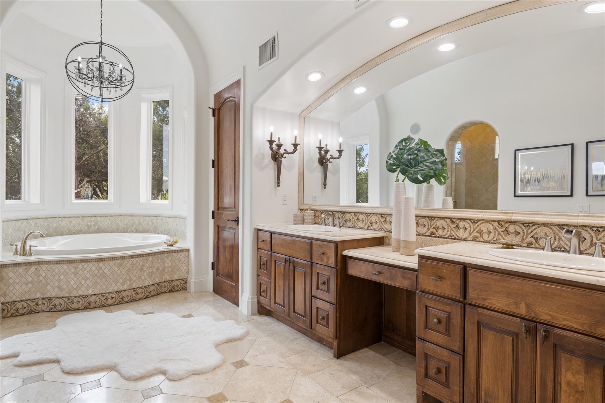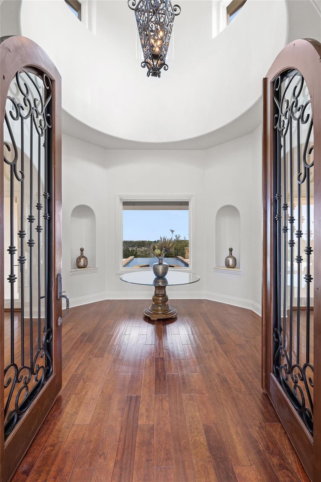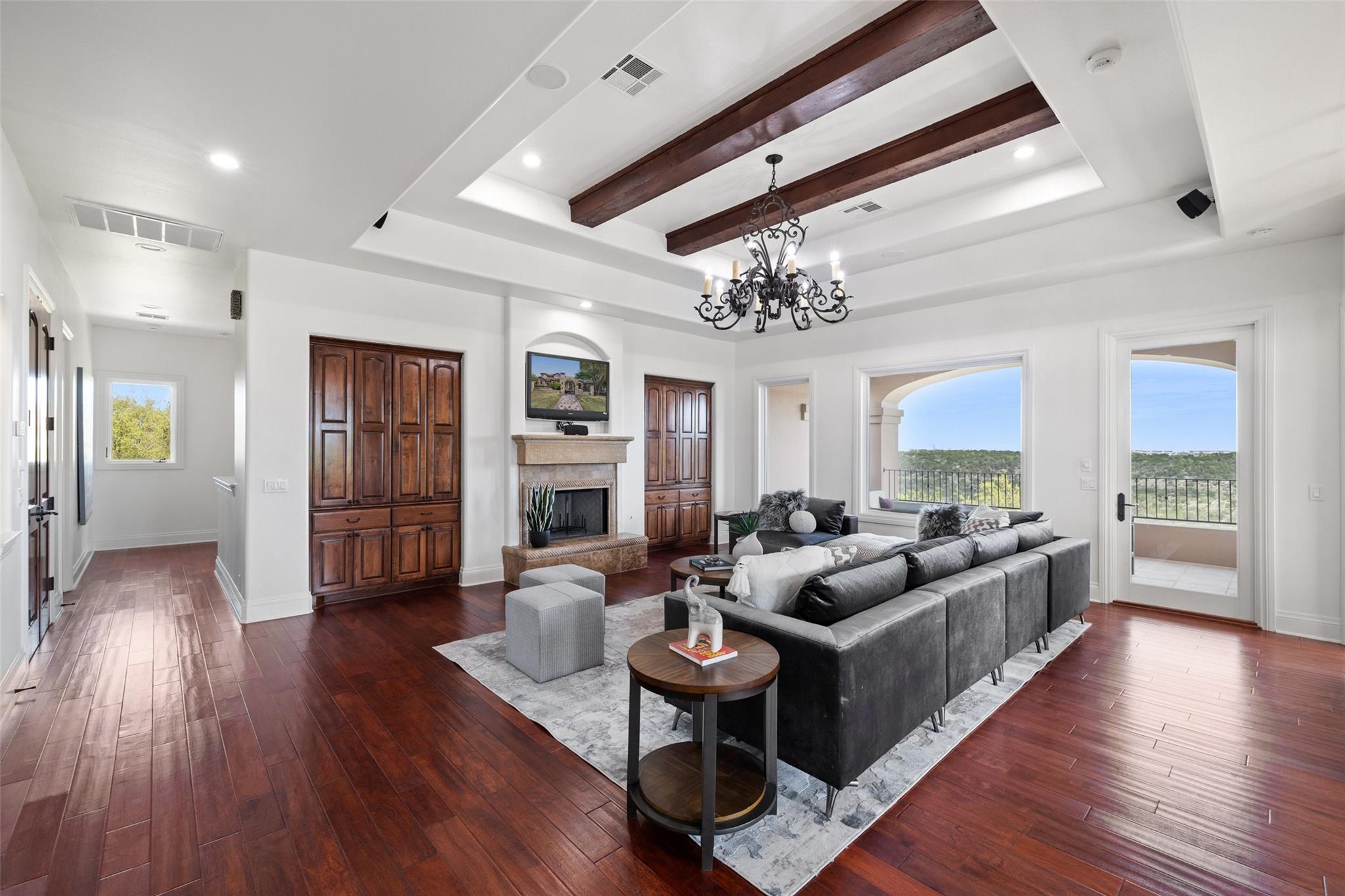 Welcome to 4805 Mirador in the gated community of Barton Creek! This beautiful property sits on 2.5 acres of lush land. With an infinity-edge pool, bocce ball court, playscape, and multiple outdoor sitting areas, the backyard offers a serene retreat. The home boasts 5 bedrooms, each with ensuite bathrooms, 3 living areas with fireplaces, a dedicated office, a media room, a flex room, and a wine room. The main floor includes two primary suites, one featuring a luxurious bathroom, a fireplace, and two large closets with ensuite laundry. The kitchen is equipped with top-of-the-line appliances, two large islands, and opens to casual living and dining areas. Upstairs is a spacious living area with beautiful views and a covered patio, media room, 3 additional bedrooms, and a flex space. Residents of Barton Creek enjoy an array of luxurious amenities that cater to their every need. It offers access to a private clubhouse complete with state-of-the-art fitness facilities and a resort-style swimming pool. With concierge services, gourmet dining options, and breathtaking views of the surrounding hill country, living in the Mirador section of Barton Creek epitomizes upscale living at its finest. Expansive decks on both levels offer breathtaking views of the serene surroundings, while four indoor fireplaces and one outdoor fireplace create cozy ambiances for any occasion. With a 3-car garage and ample parking within the private gate, convenience is ensured. Enjoy the tranquility of hill country living while being just a short distance from downtown Austin's vibrant amenities.