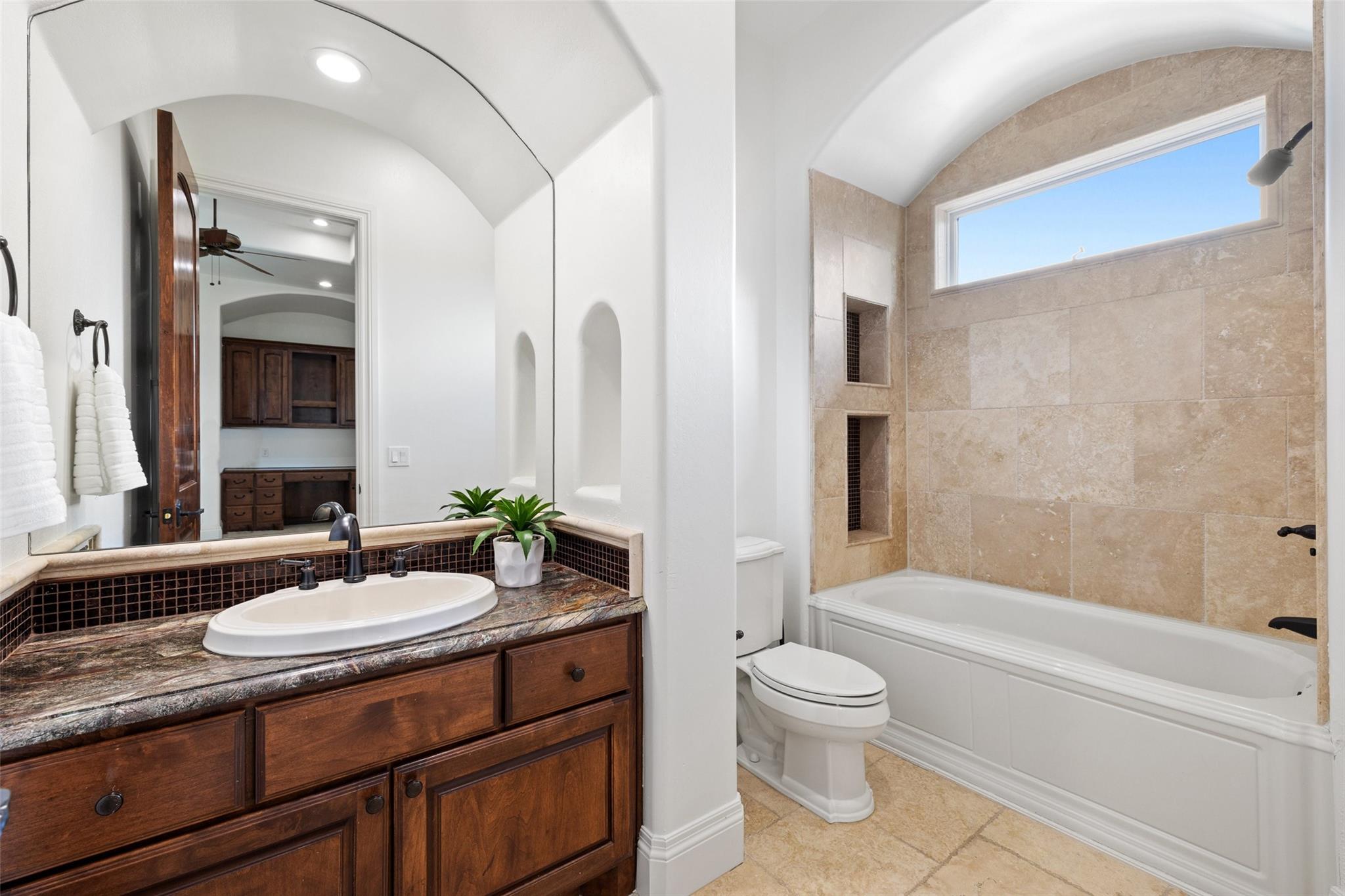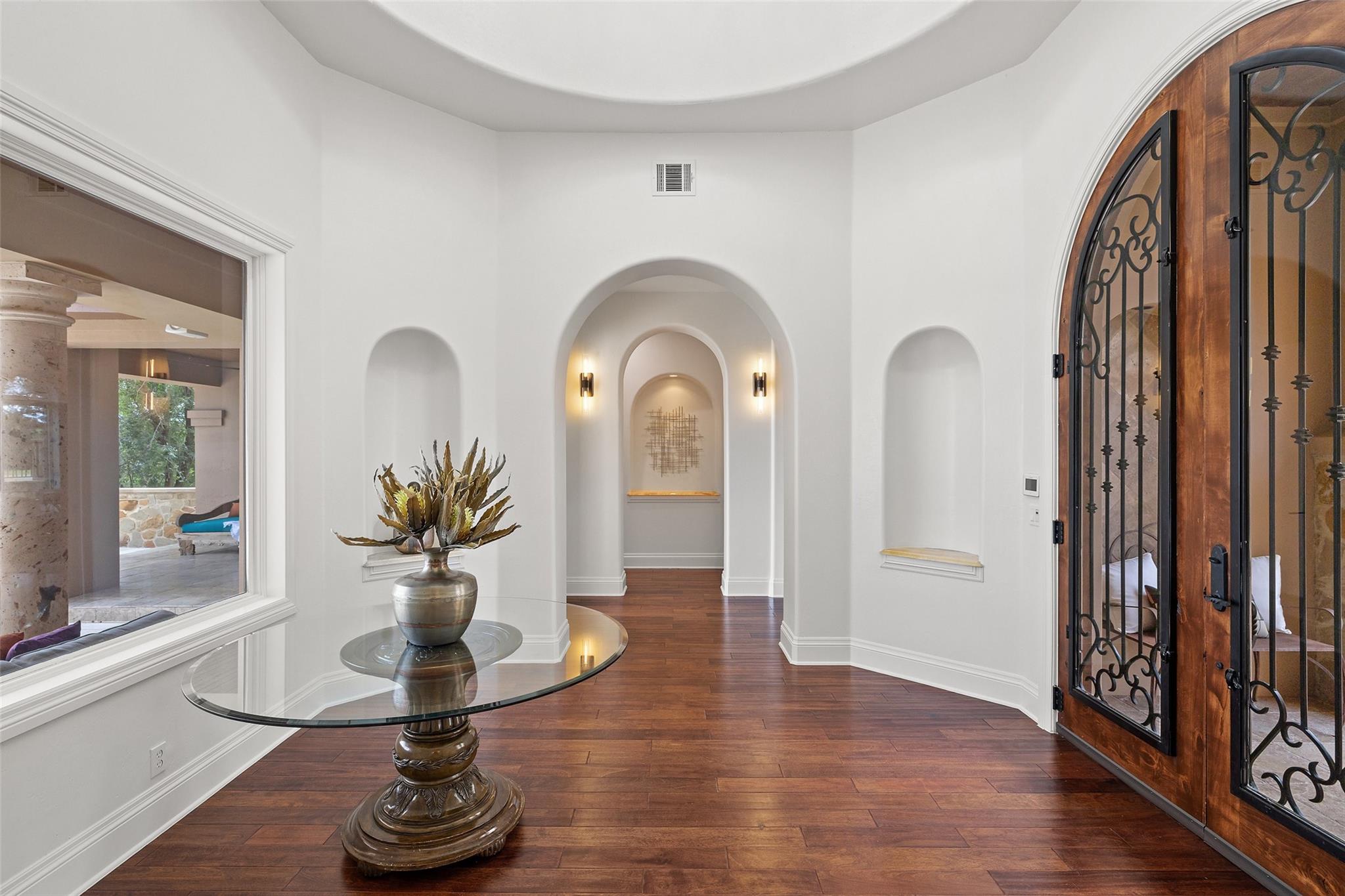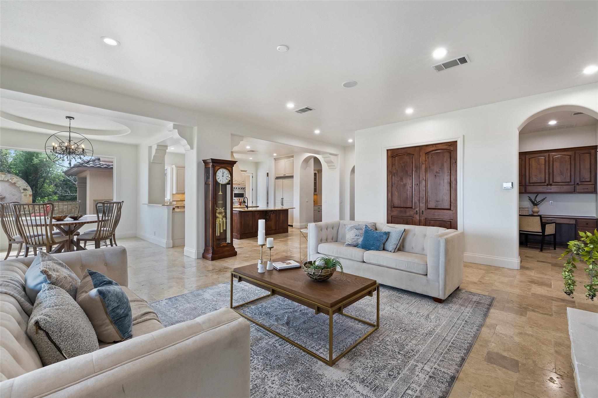 Welcome to 4805 Mirador in the gated community of Barton Creek! This beautiful property sits on 2.5 acres of lush land. With an infinity-edge pool, bocce ball court, playscape, and multiple outdoor sitting areas, the backyard offers a serene retreat. The home boasts 5 bedrooms, each with ensuite bathrooms, 3 living areas with fireplaces, a dedicated office, a media room, a flex room, and a wine room. The main floor includes two primary suites, one featuring a luxurious bathroom, a fireplace, and two large closets with ensuite laundry. The kitchen is equipped with top-of-the-line appliances, two large islands, and opens to casual living and dining areas. Upstairs is a spacious living area with beautiful views and a covered patio, media room, 3 additional bedrooms, and a flex space. Residents of Barton Creek enjoy an array of luxurious amenities that cater to their every need. It offers access to a private clubhouse complete with state-of-the-art fitness facilities and a resort-style swimming pool. With concierge services, gourmet dining options, and breathtaking views of the surrounding hill country, living in the Mirador section of Barton Creek epitomizes upscale living at its finest. Expansive decks on both levels offer breathtaking views of the serene surroundings, while four indoor fireplaces and one outdoor fireplace create cozy ambiances for any occasion. With a 3-car garage and ample parking within the private gate, convenience is ensured. Enjoy the tranquility of hill country living while being just a short distance from downtown Austin's vibrant amenities.