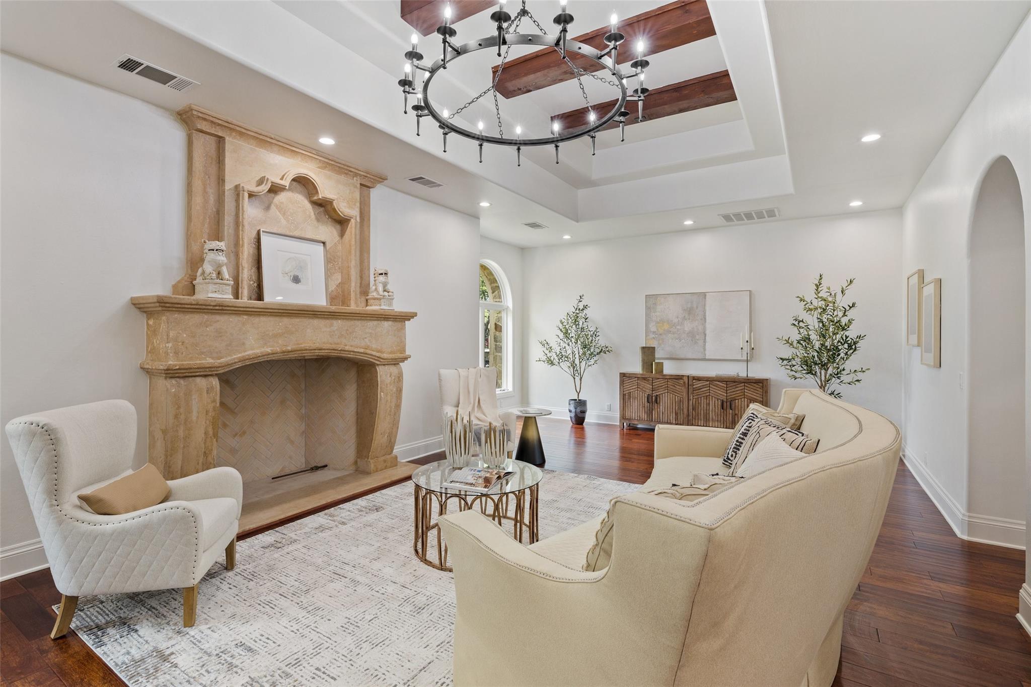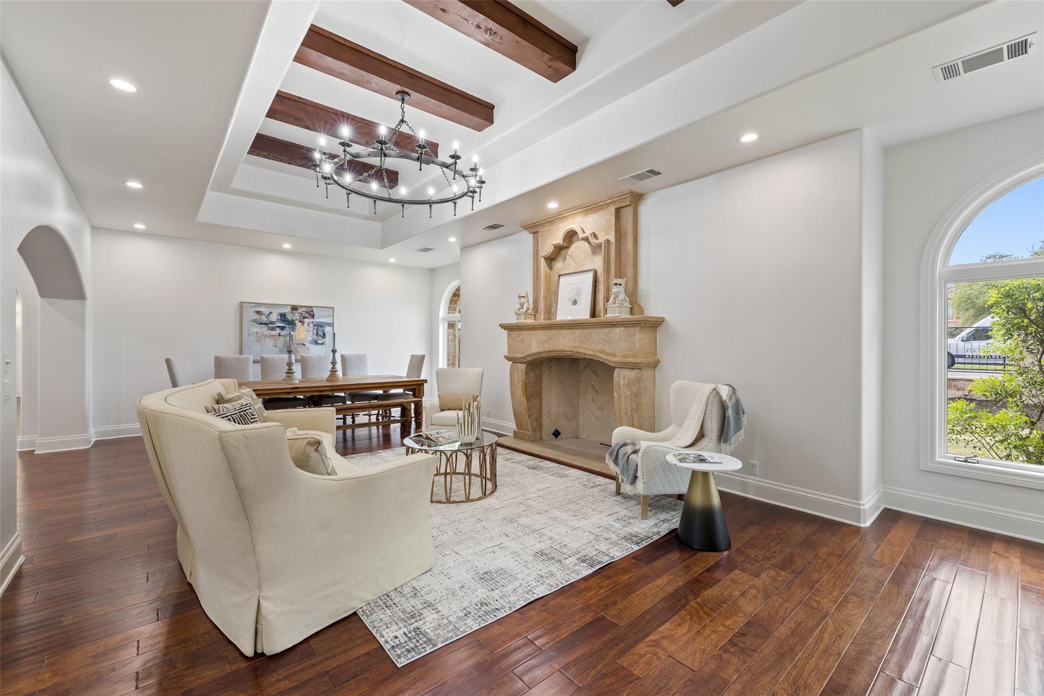 | Interior Features | Two Primary Suties, Beamed Ceilings, Coffered Ceiling(s), High Ceilings, Vaulted Ceiling(s), Granite Counters, Double Vanity, Entrance Foyer, In-Law Floorplan, Interior Steps, Kitchen Island, Multiple Dining Areas, Multiple Living Areas, Pantry, Primary Bedroom on Main, Two Primary Closets, Walk-In Closet(s), Wired for Sound | |