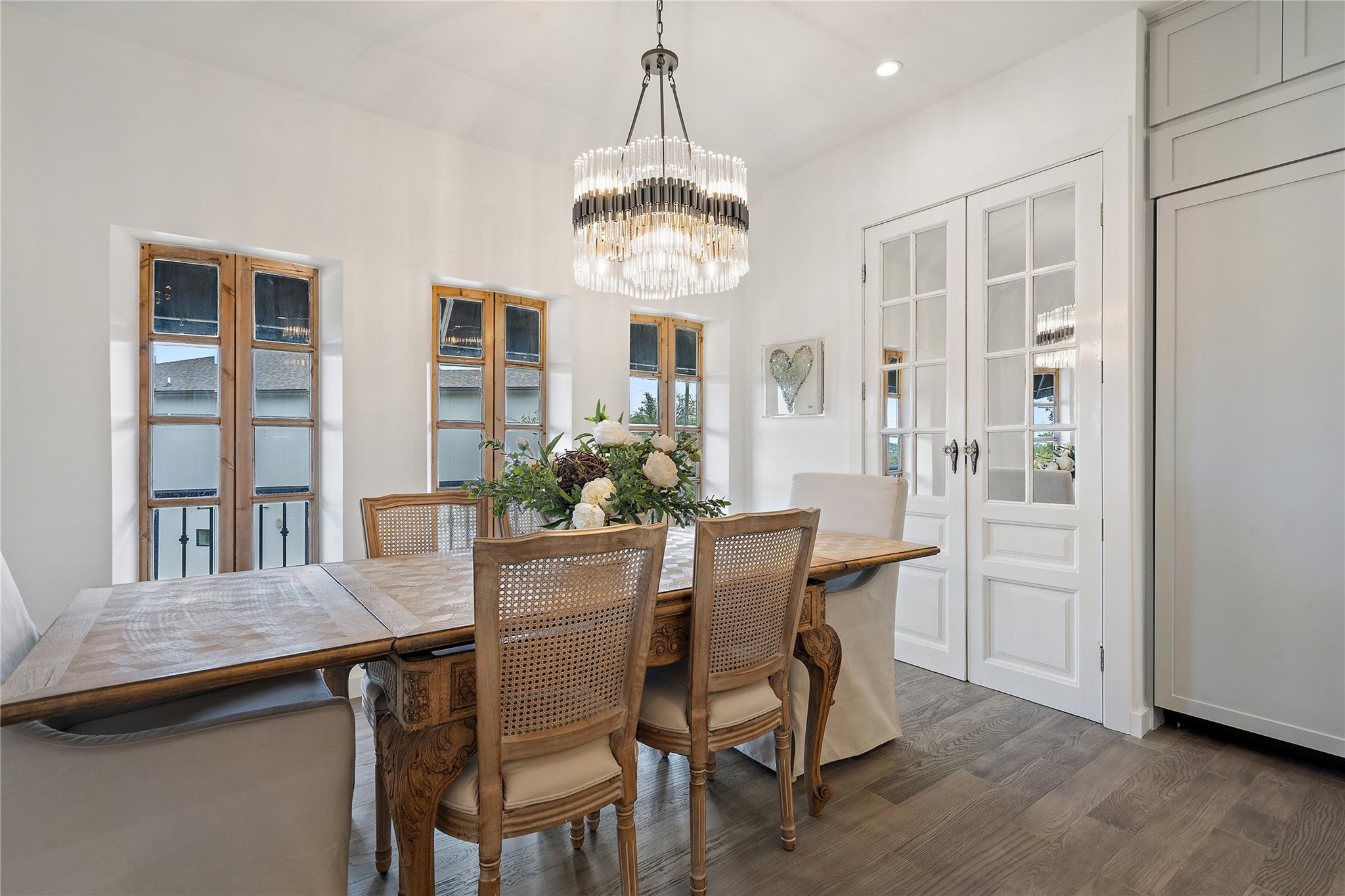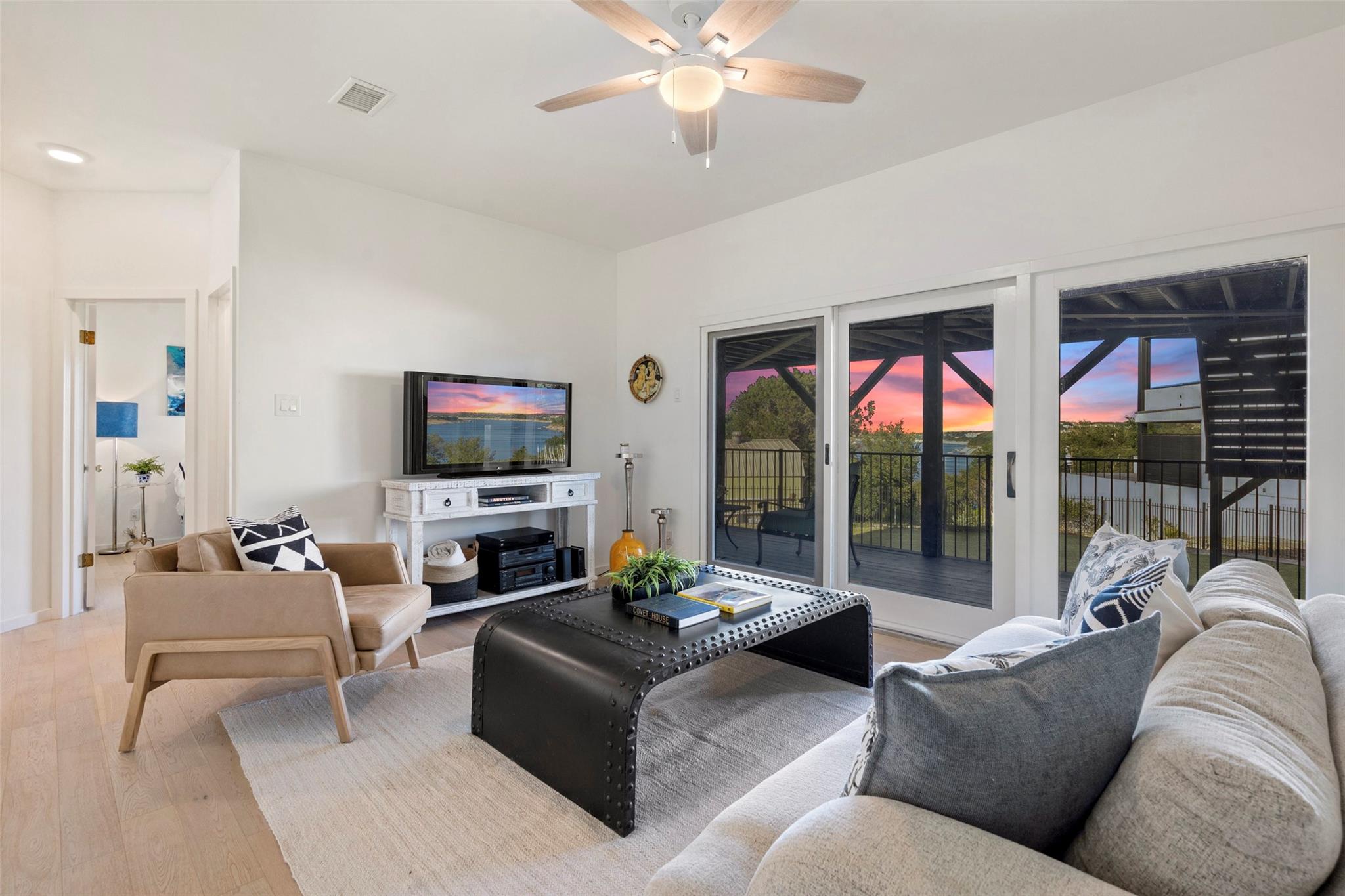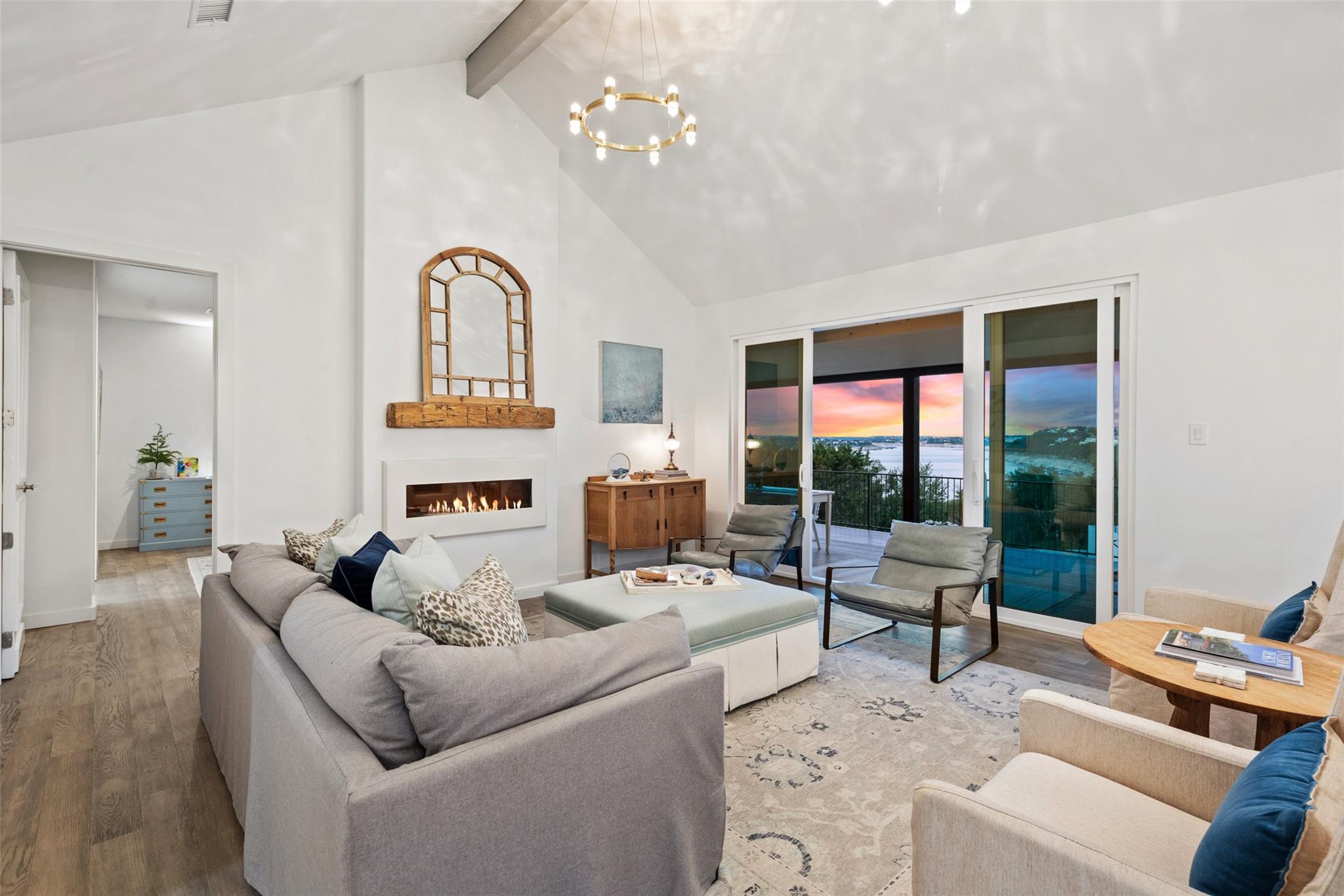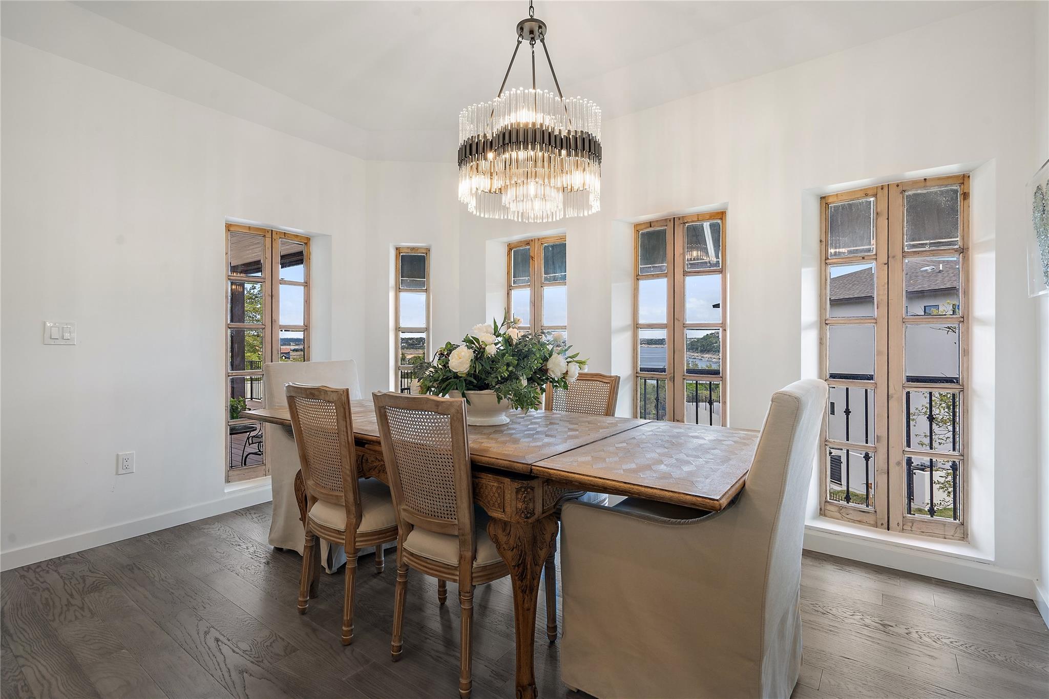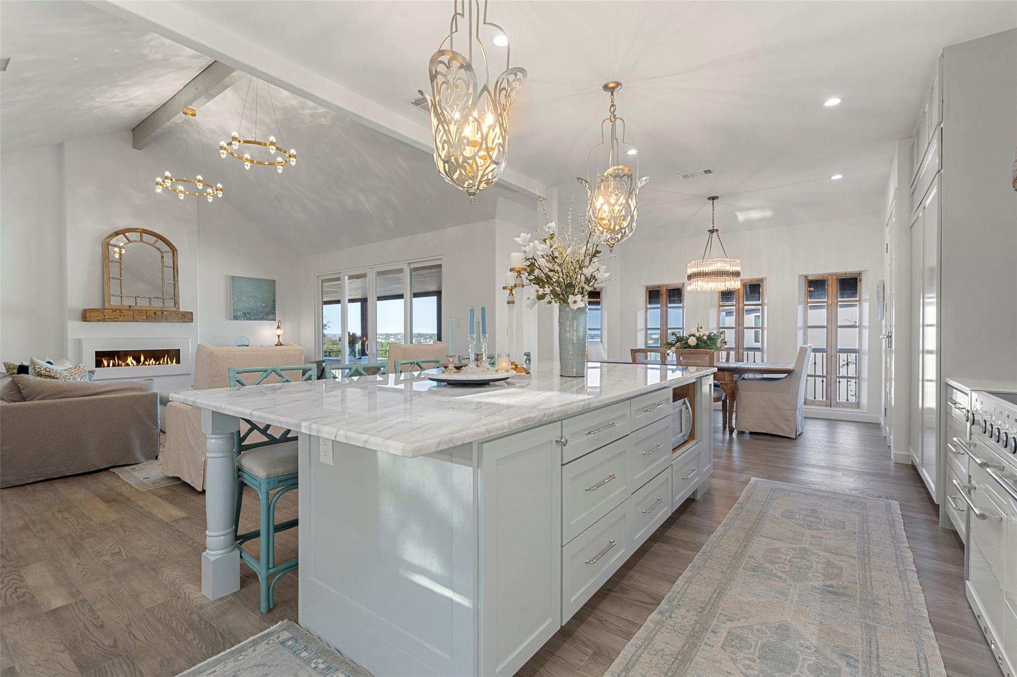 *LAKE TRAVIS WATERFRONT HOME ~ IDEAL LOCATION ~ STUNNING LAKE VIEWS ~ FULLY REMODELED ~ PRIVATE BOAT DOCK* Escape to your own creative oasis with breathtaking views, personal waterfront access, and an expansive outdoor sanctuary. YOU WILL FEEL LIKE YOU ARE ON VACATION EVERY DAY! Each moment in this inspiring haven is an opportunity for artists and writers to capture natural beauty on canvas or craft a literary masterpiece, as the panoramic view sets the stage for relaxation and creativity. This meticulously remodeled home exudes European sophistication. The vintage elegance of the entryway sets the tone for the home's unique character, leading to the lavish chef's kitchen featuring a 10-foot Carrara marble island, a custom vent hood, a built-in commercial grade refrigerator/freezer, an AGA Mercury induction oven, elegant chandeliers, and a dining area adorned with restored curved windows. In the living room, European gold and crystal pendants create mesmerizing reflections on the vaulted ceiling, while a cozy fireplace with a reclaimed mantle takes center stage. Pella sliding doors from the living room and primary suite lead to a covered deck that extends across the back of the home, offering an ideal space to enjoy magnificent views and serenity. The elegant owners retreat is nothing short of spectacular. Views of the sunrise and water are enough to make you feel like you are in paradise. This sanctuary features a fireplace, elegant wall sconces, and a spa-like bathroom with marble floors, a customized vanity, reclaimed French doors, an expansive shower, and a cast iron tub. The lower level presents three bedrooms, a luxurious bath, a second living area, and a 170 sqft room ideal for an office or design studio. The main house spans 2544 sqft. The property is surrounded by a wrought iron privacy fence and a stone pathway leading to your boat dock and waterfront access, offering an exclusive lakeside living experience. LOW TAXES and HOA! Lake Travis ISD.