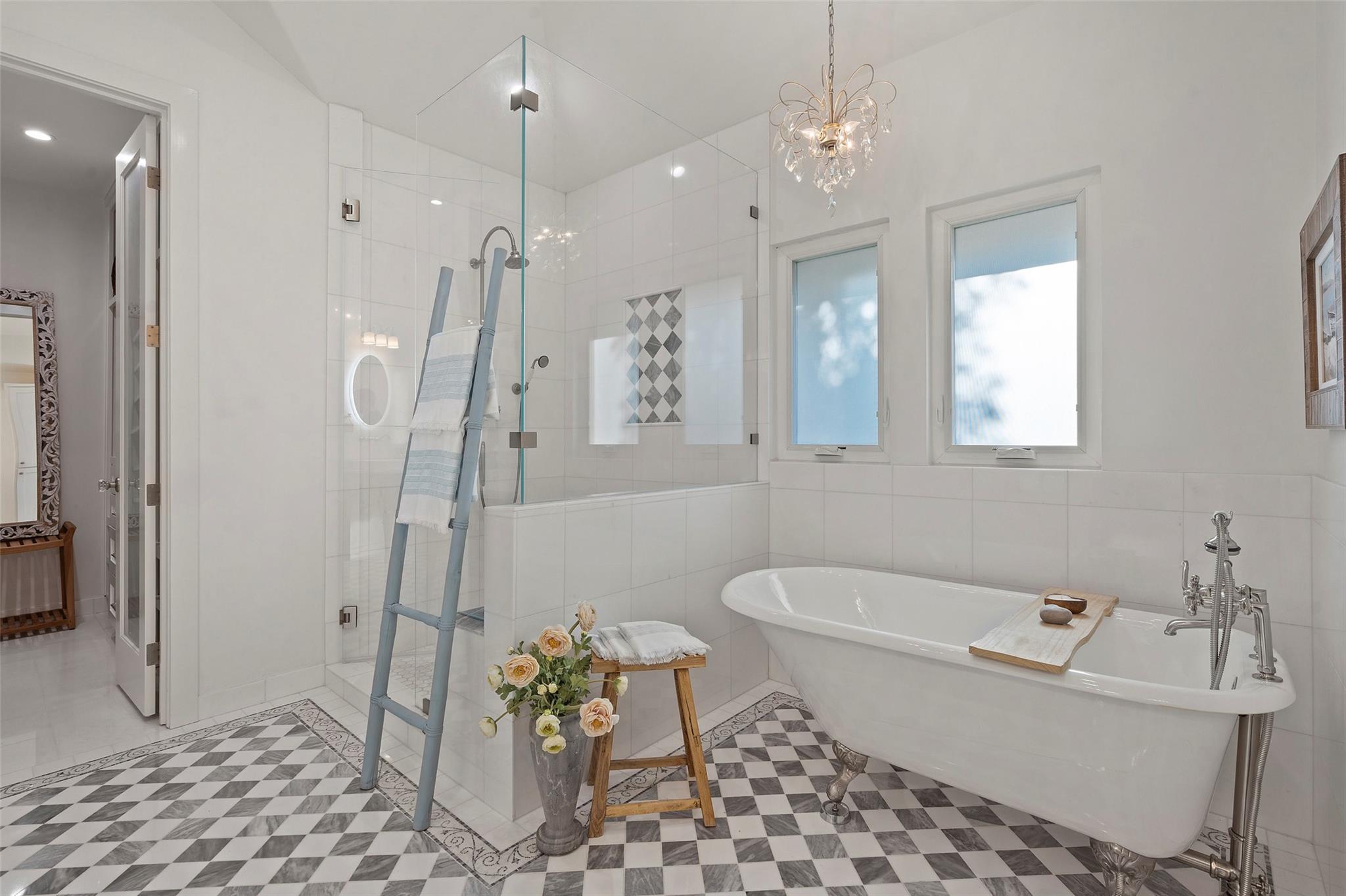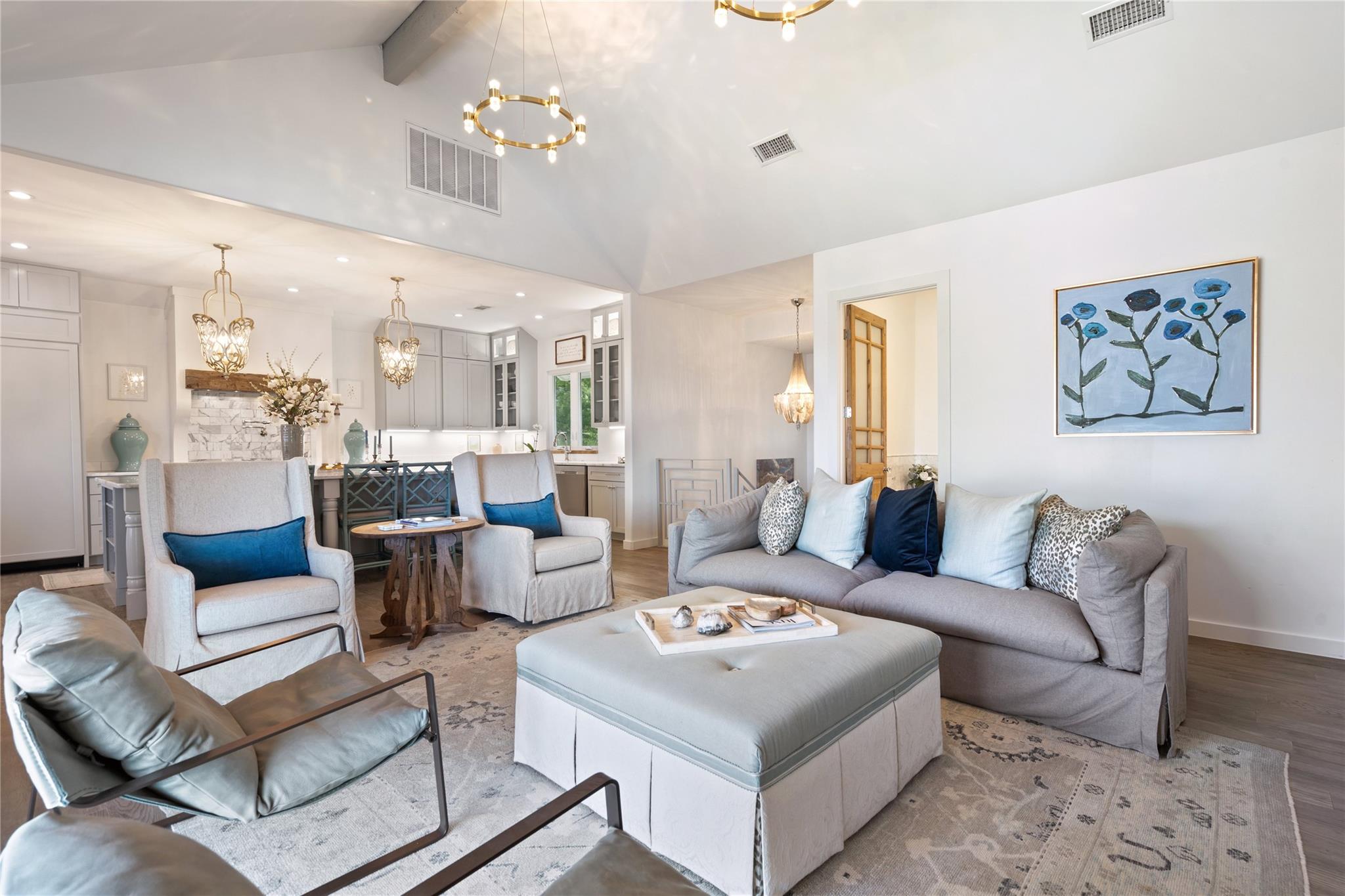 | Interior Features | Ceiling Fan(s), Beamed Ceilings, High Ceilings, Vaulted Ceiling(s), Chandelier, Stone Counters, Double Vanity, Electric Dryer Hookup, Entrance Foyer, French Doors, Interior Steps, Kitchen Island, Multiple Living Areas, Open Floorplan, Primary Bedroom on Main, Recessed Lighting, Soaking Tub, Storage, Walk-In Closet(s), Washer Hookup | |