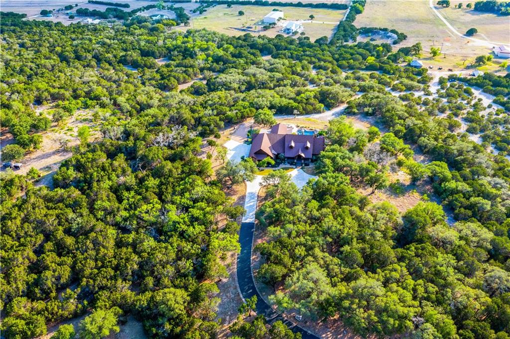 This remarkable 37 +/- acre gated ranchette boasts exceptional privacy, stunning views, and a CUSTOM single-story ranch home. Gourmet kitchen opening to 2 large living areas - 1 with large sitting area & massive wood-burning fireplace & 85 inch TV; 2nd living space used primarily as game room & music room w/special lighting to showcase art & trophies. In addition, the home has 2 bonus rooms, 200 & 240 sqft. Perfect space for adult’s personal use: man/woman cave, hobby or work space, home schooling - ready to meet the needs of the family. Municipal water provided by City of Georgetown. All but 1 acre of the 20 acre lot is under a subdivision wildlife exemption. Property is only a 15 min. drive to the Florence ISD campus. In addition, property is only 20 min. from one of the top private schools in the Austin area. Very high-end finishes throughout, inc. 100+ year reclaimed wood, Texas limestone & granite countertops. Glass doors opening to incredible outdoor living, entertaining areas, & swimming pool w/hot tub. Accessible w/phone app, home has a custom lighting system as well as audio & video, security & HVAC. Panoramic Hill Country vistas from home & outdoor living area w/ultimate privacy on all sides in small, exclusive, gated, 4-lot large acreage community. 40+ mile view at 1040 ft elevation. City lights of Marble Falls, Burnet, & Buchanan Dam are visible on a clear night. Ranch has easy access via 183A toll to major shopping, entertainment, restaurants & tech campuses. 20 min. to Georgetown, 15 min. to new HEB plus on Ronald Reagan, 25 min. to Apple Campus, 45 min. to Downtown Austin,. Construction of Phase 3 of 183A toll is expected to finish in early 2025 which will make this an even better & easy commute. Nearly 40 acres total available. The 17+/- acres of pasture land is not part of the HOA & will not be restricted if purchased with the lot. Great for livestock, horses, additional outbuildings, toy barns etc. Owner financing considered.