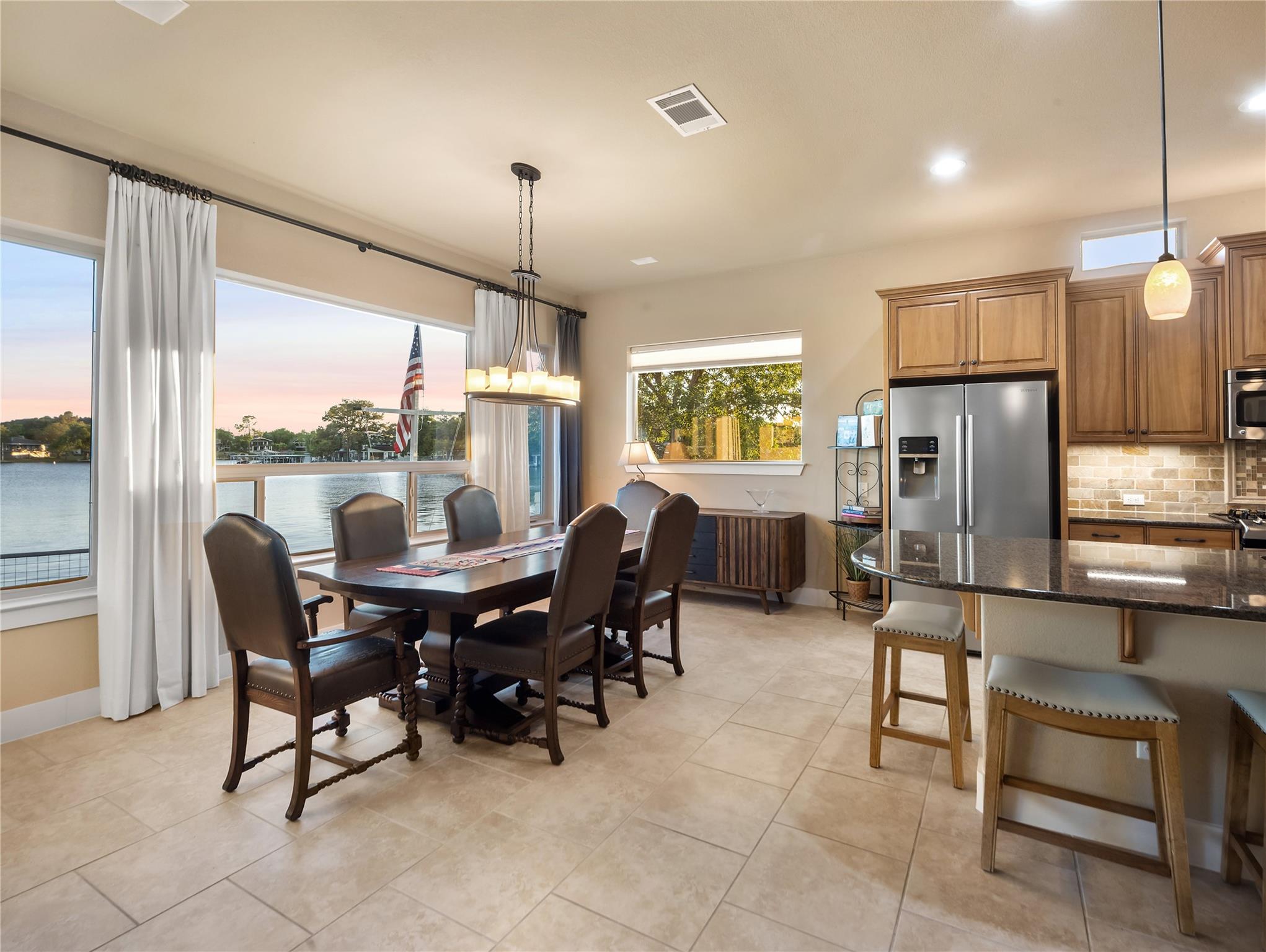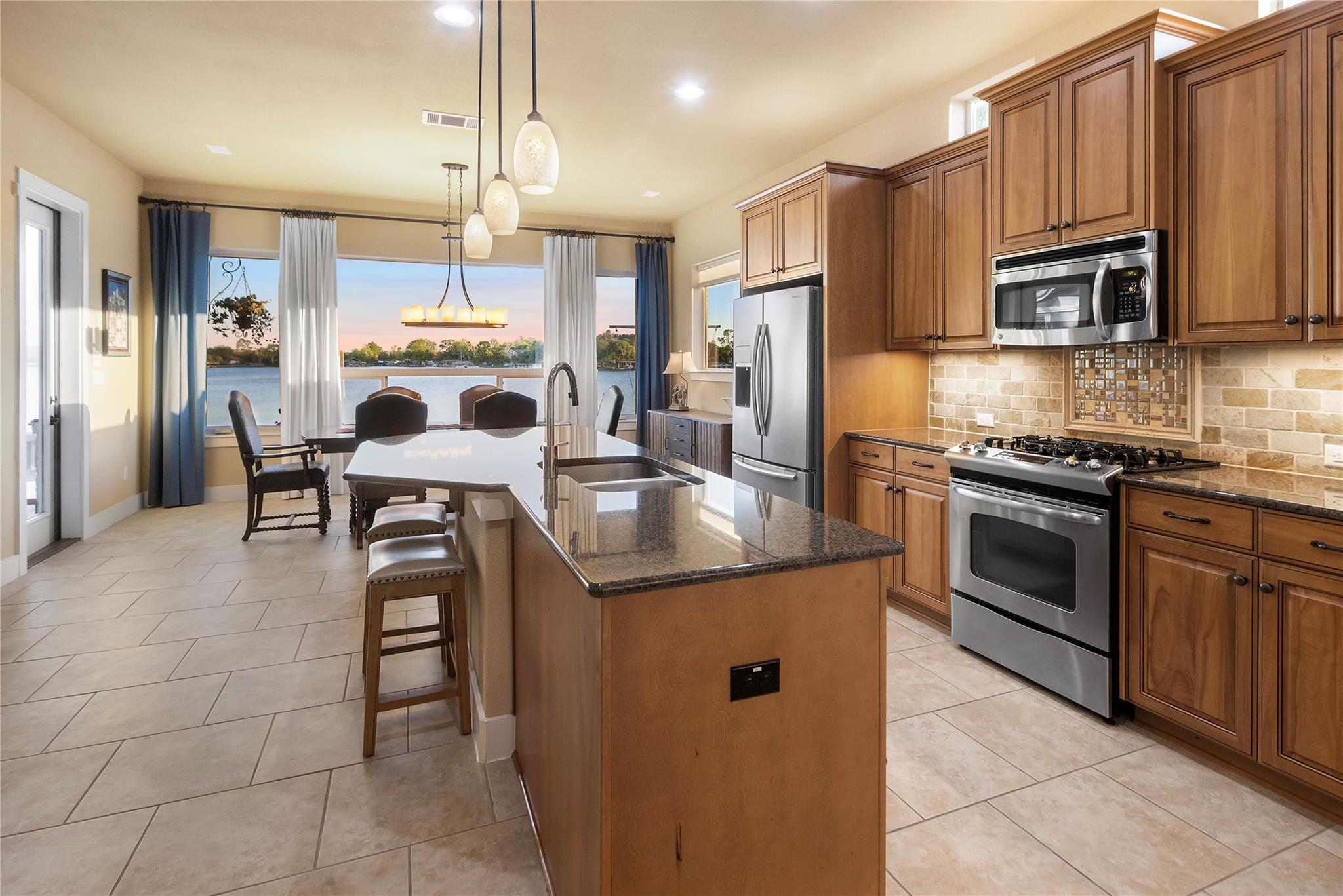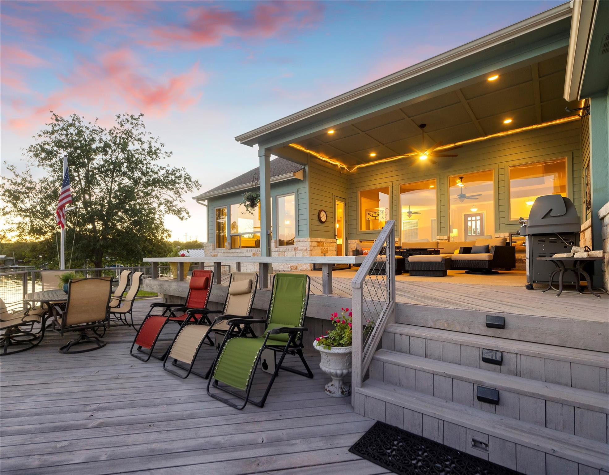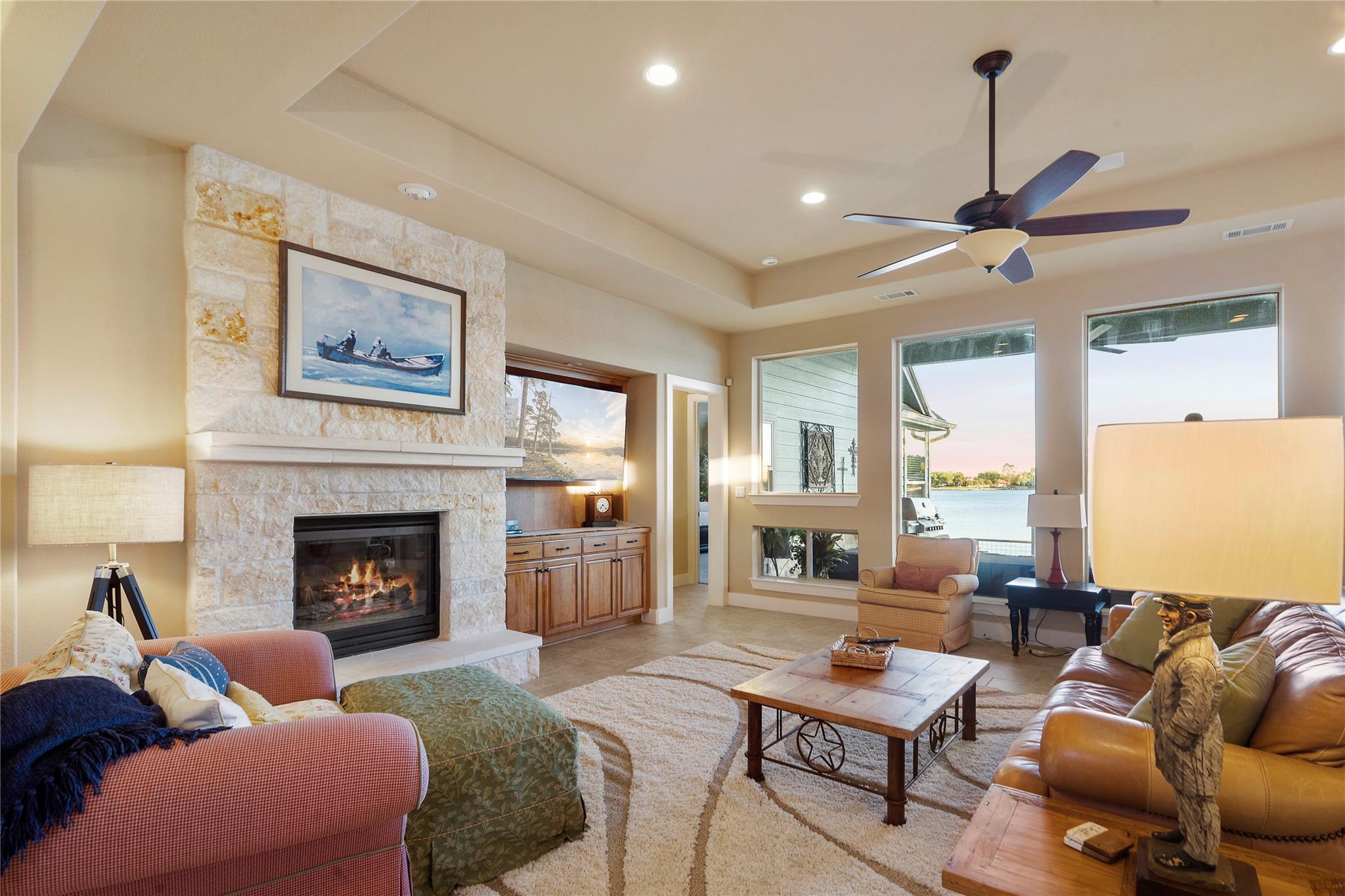 Don't miss out on this unique chance to own a stunning waterfront home in Sunrise Beach. This property is perfect for hosting large gatherings or enjoying intimate moments with loved ones. Nestled on two spacious lots with 208 feet of waterfront in a protective cove, this home offers a safe beach area for children to play, a yard for outdoor activities, and a serene spot under a majestic oak tree for napping. Originally built by David Weekley in 2011, this well-maintained single-story home can easily be expanded to include a second story for an additional bedroom and bathroom. The open concept layout seamlessly connects the kitchen, dining, and living areas, while the mudroom features a convenient half bath, extra storage, and a laundry room with access to the lake. The property also boasts an attached garage, ample driveway parking, and modern amenities such as a sound system, outdoor kitchen plumbing, and outdoor TV cable. With 2,663 square feet of living space, 3 bedrooms, and 2.5 baths, this home comes equipped with a boat dock for one boat and two jet skis, as well as a spacious boathouse for storing water toys, a refrigerator, and yard tools. The strategic placement of the house on two lots ensures breathtaking lake views from nearly every room, while the southeast-facing patio and two-level decking capture refreshing summer breezes and shield from chilly north winds. Situated at the end of a quiet street, this property offers unparalleled privacy and stunning views of wildlife, sunrises, sunsets, storms rolling in, rainbows, and more. The sale also includes 70 feet of inundated waterfront ownership, making this home a truly exceptional find in the area.