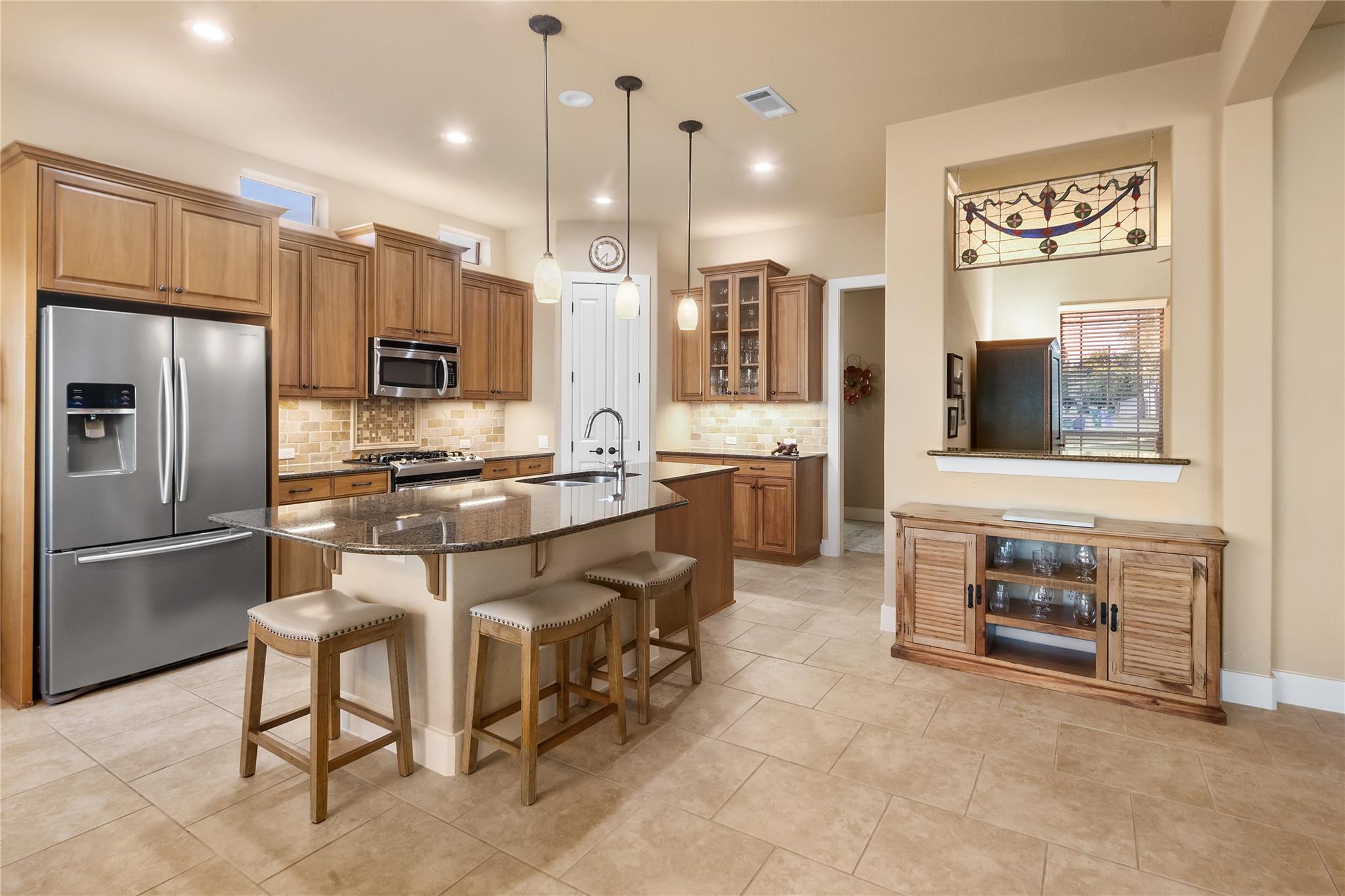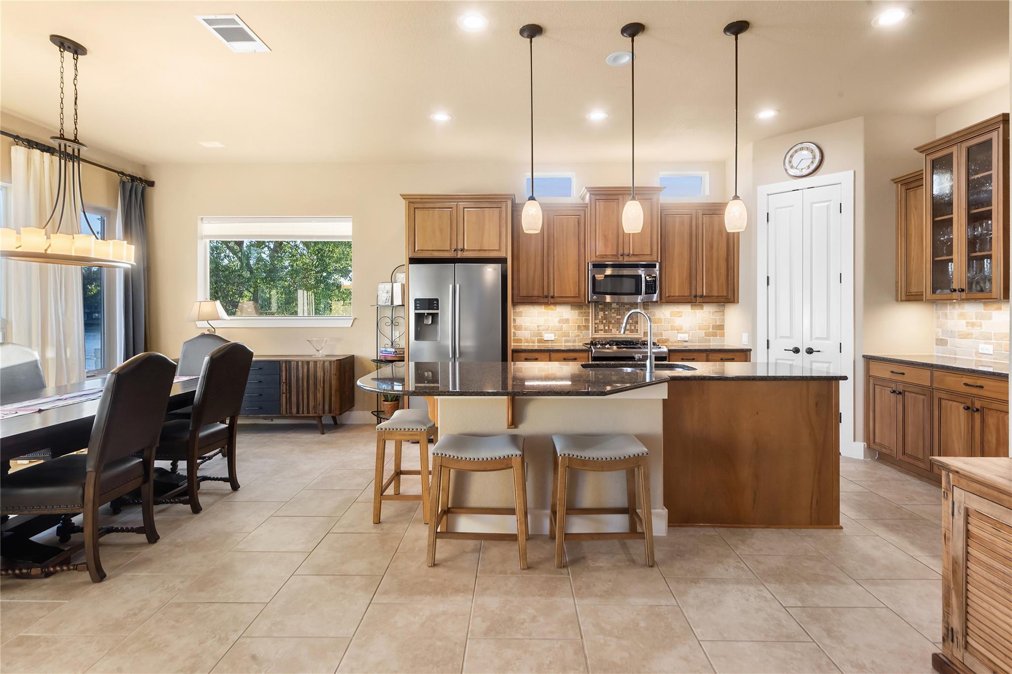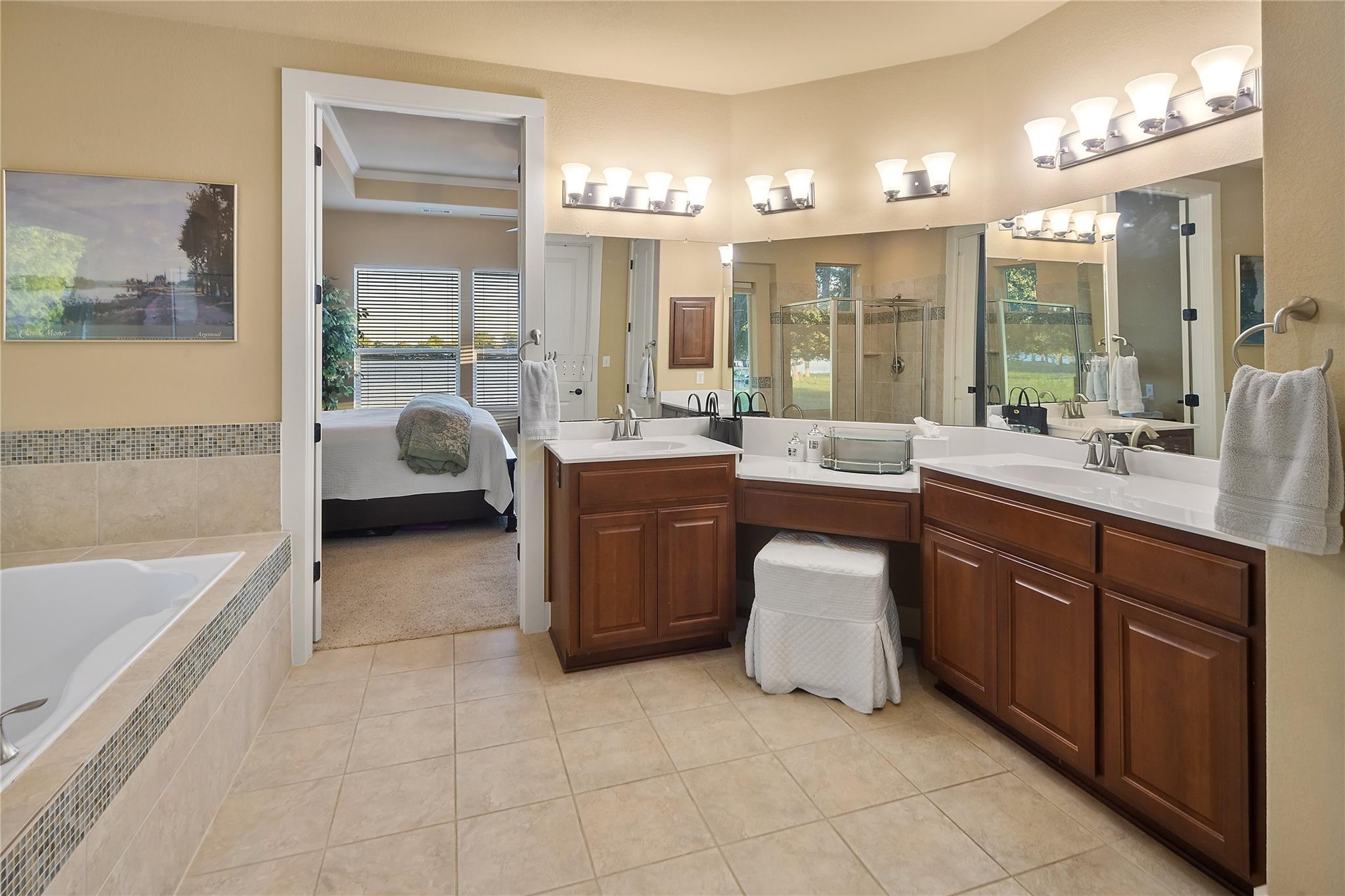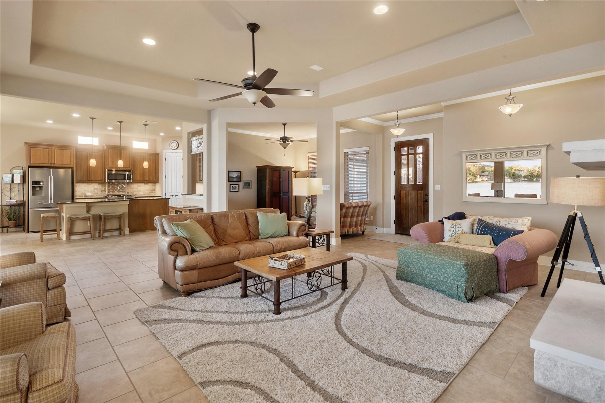 | Interior Features | Breakfast Bar, Ceiling Fan(s), High Ceilings, Tray Ceiling(s), Chandelier, Granite Counters, Double Vanity, Electric Dryer Hookup, Eat-in Kitchen, High Speed Internet, Kitchen Island, Multiple Dining Areas, Multiple Living Areas, No Interior Steps, Open Floorplan, Pantry, Primary Bedroom on Main, Recessed Lighting, Soaking Tub, Sound System, Storage, Walk-In Closet(s), Washer Hookup, Wired for Data, Wired for Sound | |