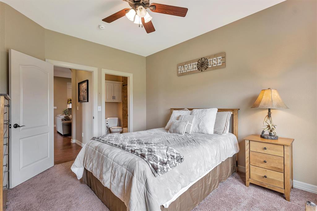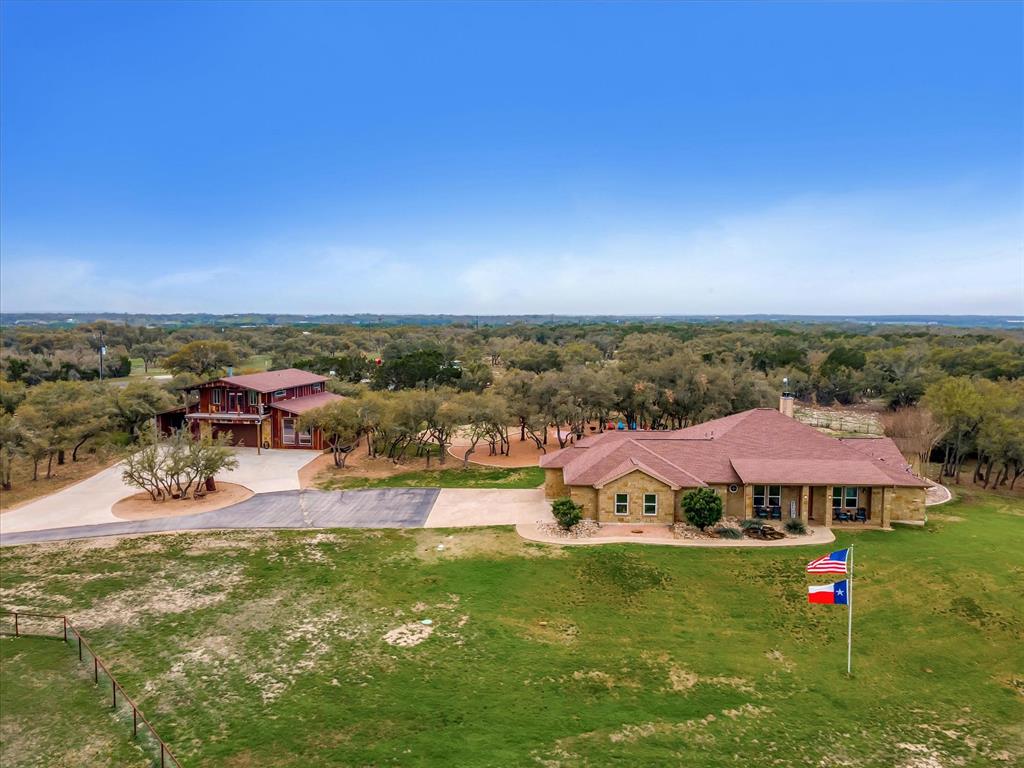 Escape city living with your dream 10.77-acre gated equestrian estate in Liberty Hill. Located in Durham Park, the immaculately maintained property has a main home boasting five bedrooms, three with en suite baths, and two living and dining areas. The gourmet kitchen is the heart of the home and a chef’s dream, with stainless steel appliances, granite counters, decorative tile backsplash, double ovens, a built-in refrigerator, two pantries, expansive counter space, and a 6-burner gas cooktop with a modern stainless vent hood. The primary suite has access to the backyard through French doors, a jetted tub, comfort-height dual vanities with granite counters, a make-up area, and an oversized walk-in shower with a bench and rainfall shower head. The estate is an entertainer’s dream, with many promising activities. Take a swim or relax by the in-ground heated pool with an attached hot tub, play a game of bocce ball, horseshoes, or washers in the tree-covered backyard, roast marshmallows for s’mores, and relax by the fire pit. Enjoy dining under the stars, with dinner cooked in your outdoor kitchen. If you would prefer, the separate man cave/game room, complete with a kitchenette and a three-quarter bath, provides another outlet. Attached to the game room is an oversized workshop for those who like to tinker, which also has two 50-amp RV hookups. Above the workshop, you’ll find a perfect one-bedroom guest suite with a fully equipped kitchen, rock fireplace, laundry room, bath, and closet with built-ins. French doors provide access to the balcony, which offers views for miles. For the equestrian-minded, there is a 5-stall barn and a corral. Add some chickens to the large coop if you want fresh eggs. Grow your own vegetables in the irrigated, raised beds. Pick one of the two stocked ponds on the property if fishing is more your speed. The list of amenities on this estate is vast. Please reach out to the listing agent for additional details. You won’t want to miss it.