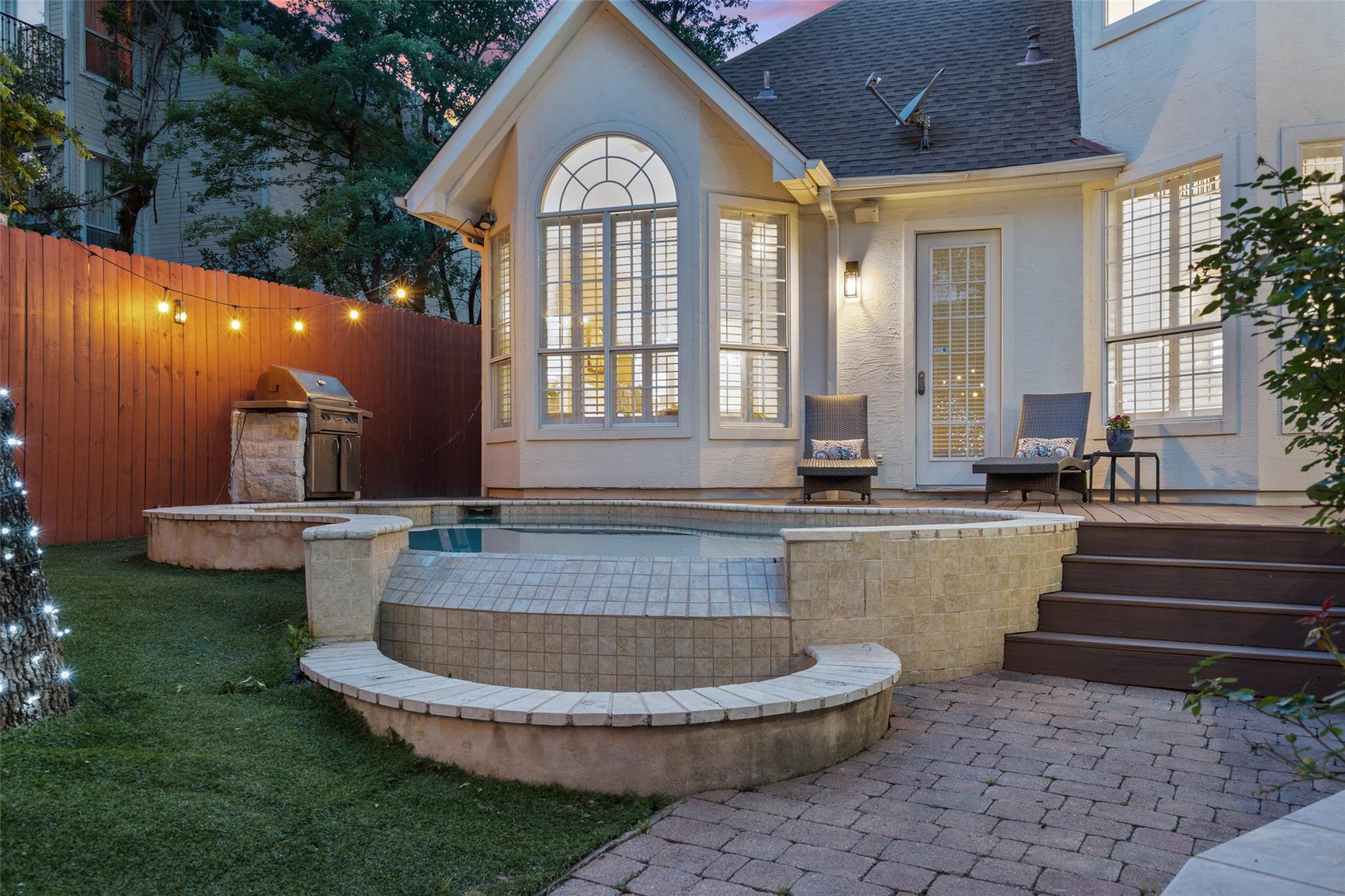 Nestled on a corner lot and conveniently located in the neighborhood Woods of Westlake Heights, this beautiful estate welcomes you home from the moment you walk inside. On the first floor, you will find an open living room saturated with abundant natural light; primary suite with double vanities, two closets, tub and walk-in shower; plus another main-level guest bedroom or office with en-suite bathroom. The kitchen includes a Sub-Zero fridge, double ovens, gas range, Stainless Steel Appliances, granite, and walk-in pantry. Upstairs you will find 3 additional bedrooms and a game room with downtown views. The extra-large bonus studio could be used as a gym, office, or additional living area. While outside, enjoy the sparkling negative-edge pool, turfed backyard and firepit. Maintenance Free Backyard. Only 1 mile from Westlake HS. Welcome Home. All information contained herein deemed reliable but not guaranteed. Buyer should verify