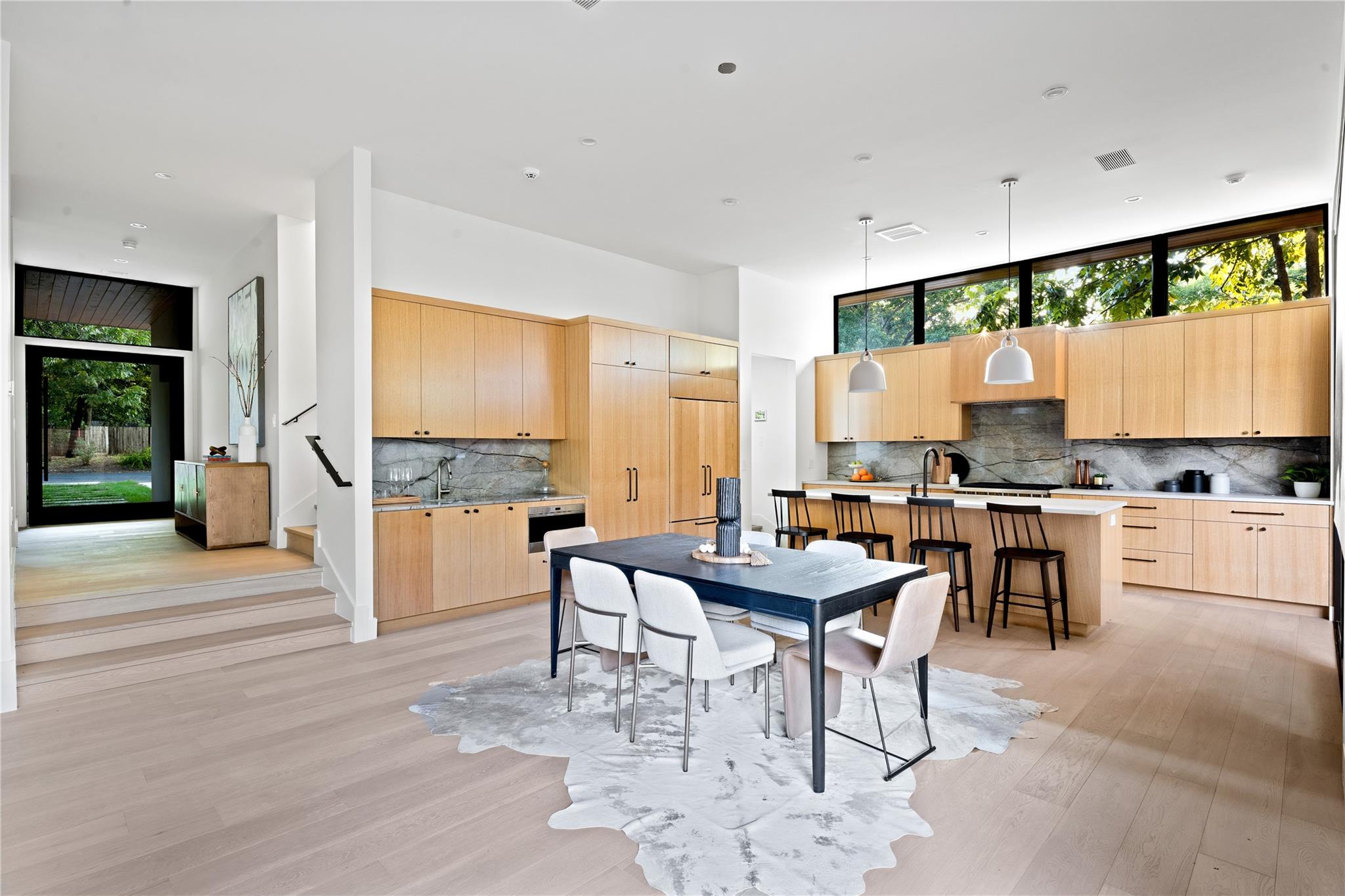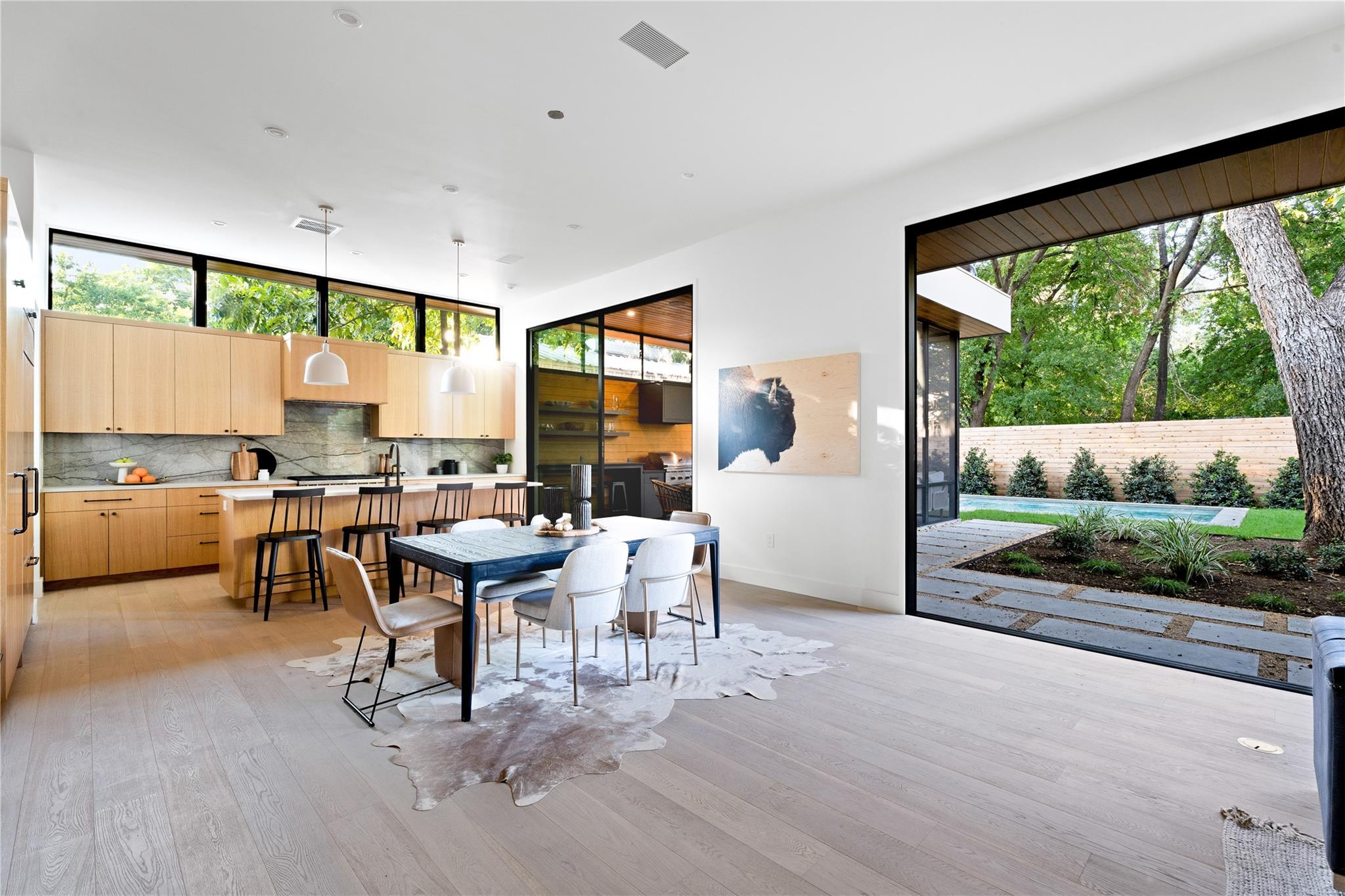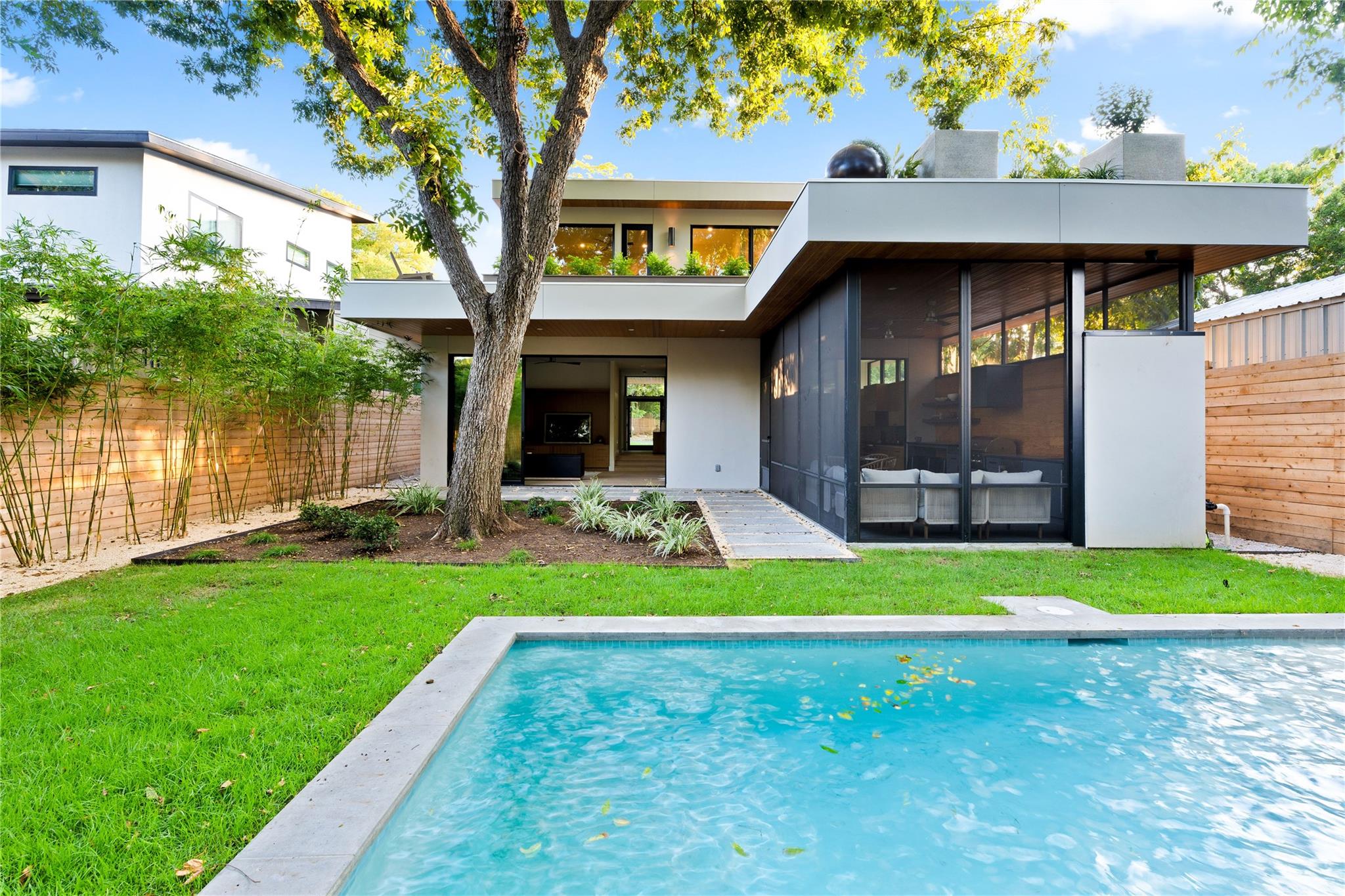 Perfectly situated in the most sought-after central neighborhood in Austin,this modern new home seamlessly combines indoor and outdoor living spaces for those seeking the ultimate active lifestyle in Zilker.Dine al fresco by the pool while keeping nature at bay in your massive backyard screened-in kitchen and bar.Enjoy your morning cappuccino and evening wine perched upstairs overlooking the pool in your very own private rooftop garden directly off of the Owner's Suite.With over 1150sf of bonus exterior living spaces,this home feels very spacious when you include the 2301sf of interior living space.Wall-to-wall Western sliders bring in an abundant natural light into the open concept kitchen,living and dining areas. A cook's dream kitchen includes Wolf and Sub-Zero panel-ready appliances, a spacious center island and a separate bar area that will be perfect for hosting your dinner parties. Also downstairs is a spacious bedroom with en-suite bath perfect for office, gym or guest space and a gorgeous powder room for your pool and visiting guest. Upstairs you have the Owner's Suite that looks out onto the private garden area accessible directly from the bedroom. This private garden more than doubles the living space and creates separate areas to enjoy. The Dexter House is literal steps to Alamo Drafthouse and Lamar Union Plaza with multiple dining and shopping options. You are also 5 mere blocks to Barton Springs and Zilker Park connecting you to Lady Bird Lake and the crown jewel of downtown Austin-the Hike and Bike Trail. You're also a very short walk to the finest dining in town including Uchi,Odd Duck,Loro and so many more. For the little ones, you're a few short blocks walk to Zilker Elementary and Little Zilker Park VERY RARE 2-car garage with EV charging completes this gorgeous modern home designed by Side Angle Side and built by Cobb Development with the utmost attention to detail and exquisite sections throughout.You must see this one in person today!