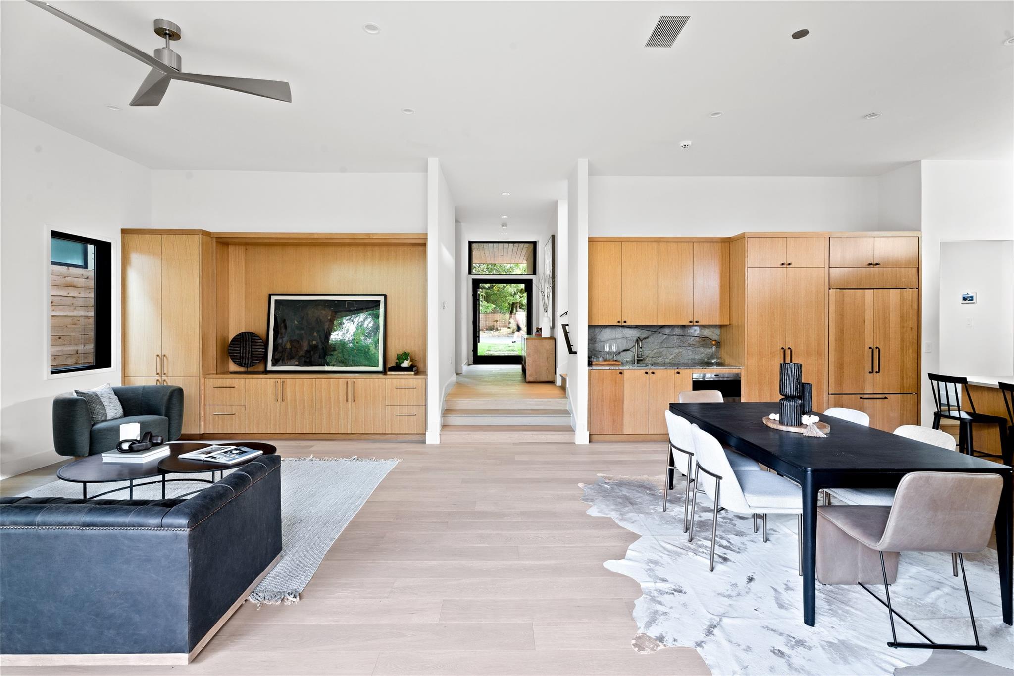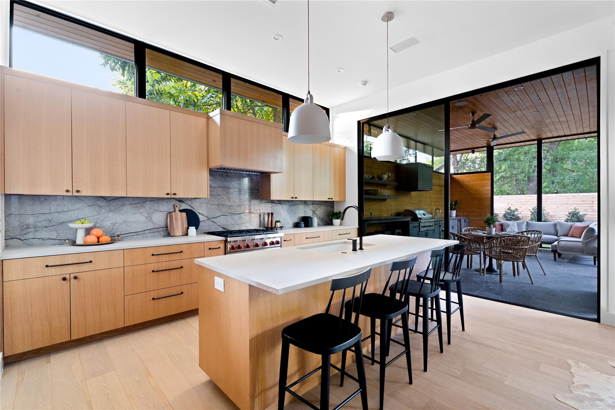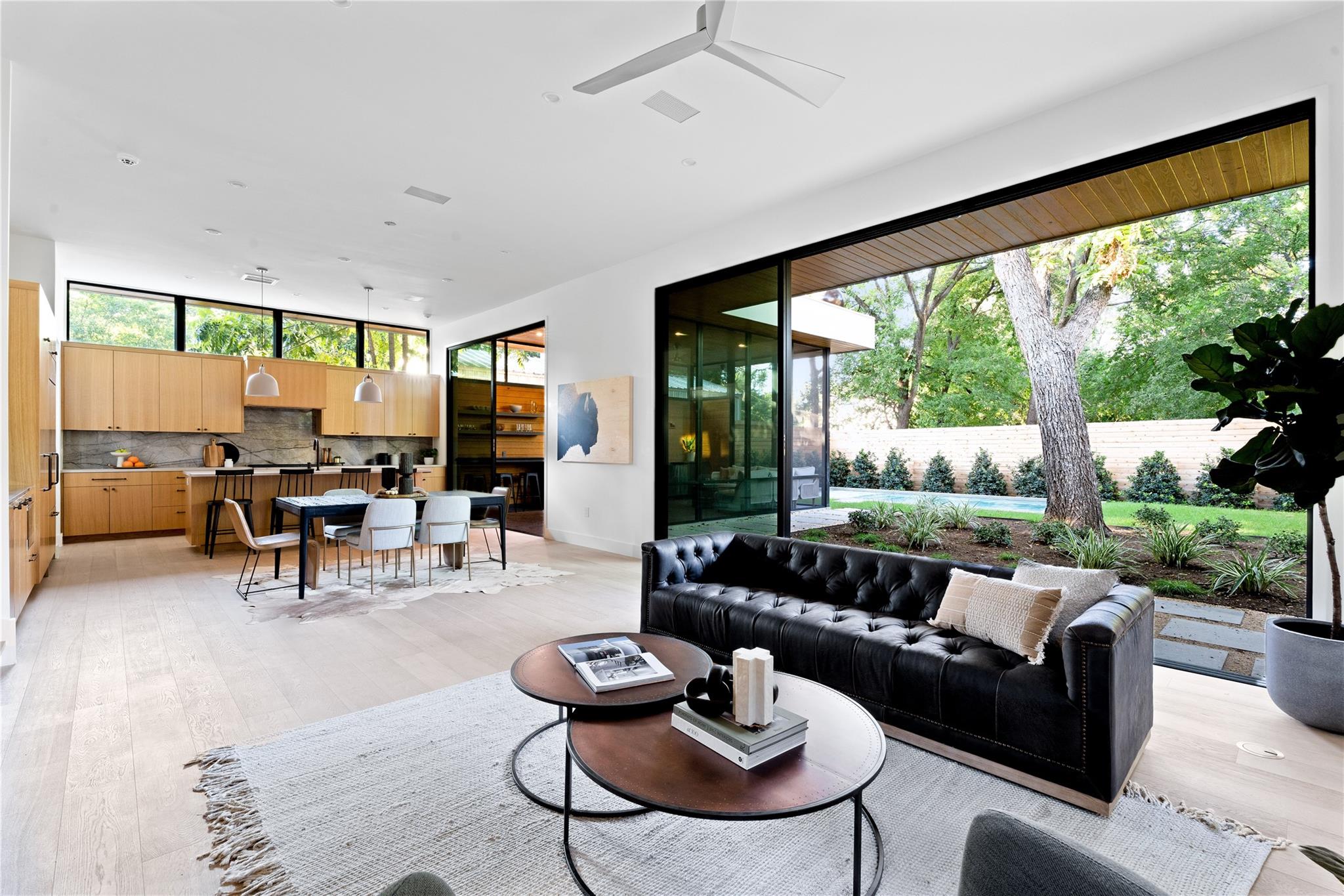 Perfectly situated in the most sought-after central neighborhood in Austin,this modern new home seamlessly combines indoor and outdoor living spaces for those seeking the ultimate active lifestyle in Zilker.Dine al fresco by the pool while keeping nature at bay in your massive backyard screened-in kitchen and bar.Enjoy your morning cappuccino and evening wine perched upstairs overlooking the pool in your very own private rooftop garden directly off of the Owner's Suite.With over 1150sf of bonus exterior living spaces,this home feels very spacious when you include the 2301sf of interior living space.Wall-to-wall Western sliders bring in an abundant natural light into the open concept kitchen,living and dining areas. A cook's dream kitchen includes Wolf and Sub-Zero panel-ready appliances, a spacious center island and a separate bar area that will be perfect for hosting your dinner parties. Also downstairs is a spacious bedroom with en-suite bath perfect for office, gym or guest space and a gorgeous powder room for your pool and visiting guest. Upstairs you have the Owner's Suite that looks out onto the private garden area accessible directly from the bedroom. This private garden more than doubles the living space and creates separate areas to enjoy. The Dexter House is literal steps to Alamo Drafthouse and Lamar Union Plaza with multiple dining and shopping options. You are also 5 mere blocks to Barton Springs and Zilker Park connecting you to Lady Bird Lake and the crown jewel of downtown Austin-the Hike and Bike Trail. You're also a very short walk to the finest dining in town including Uchi,Odd Duck,Loro and so many more. For the little ones, you're a few short blocks walk to Zilker Elementary and Little Zilker Park VERY RARE 2-car garage with EV charging completes this gorgeous modern home designed by Side Angle Side and built by Cobb Development with the utmost attention to detail and exquisite sections throughout.You must see this one in person today!