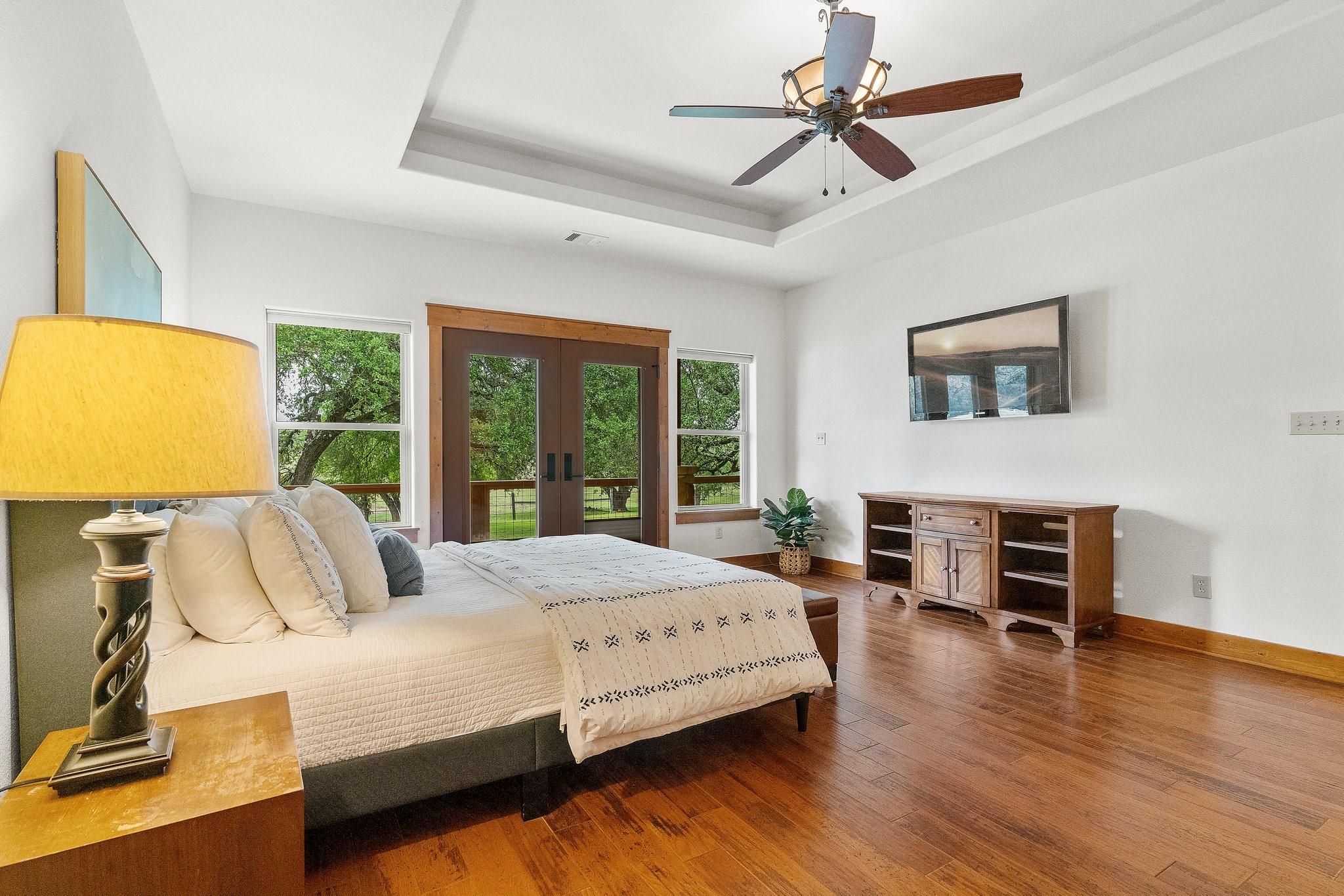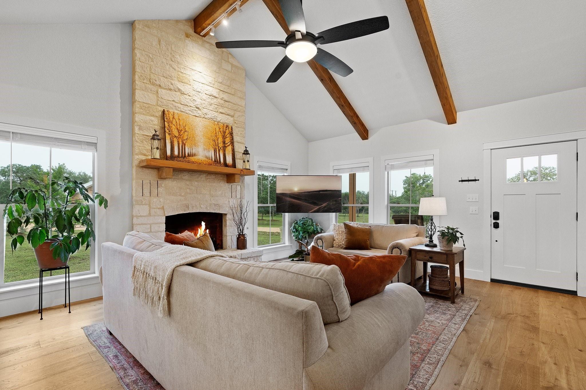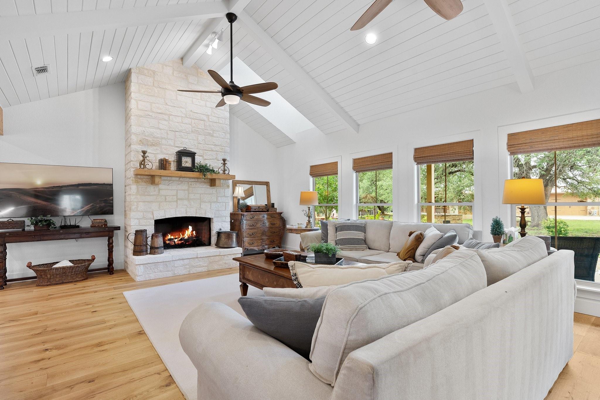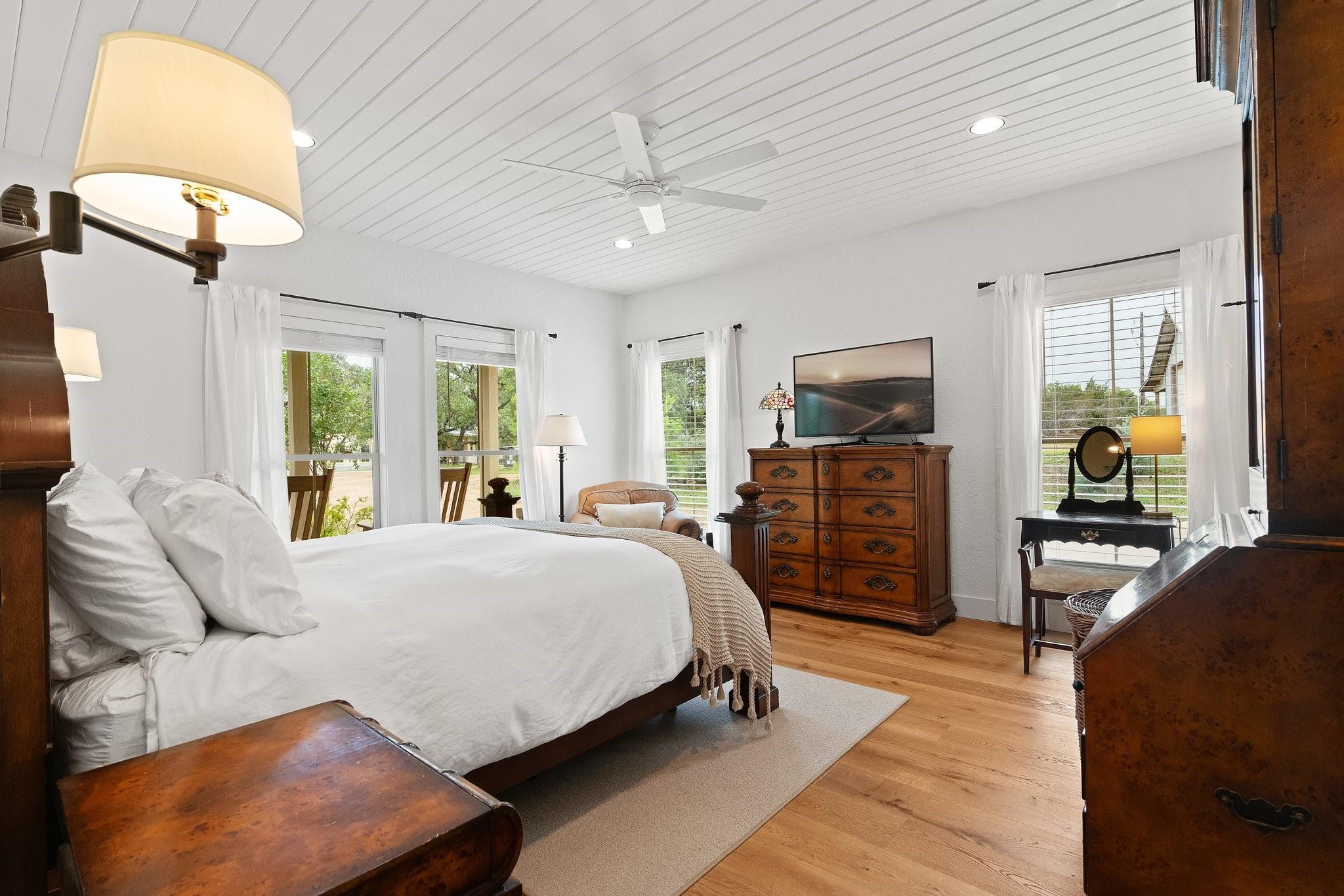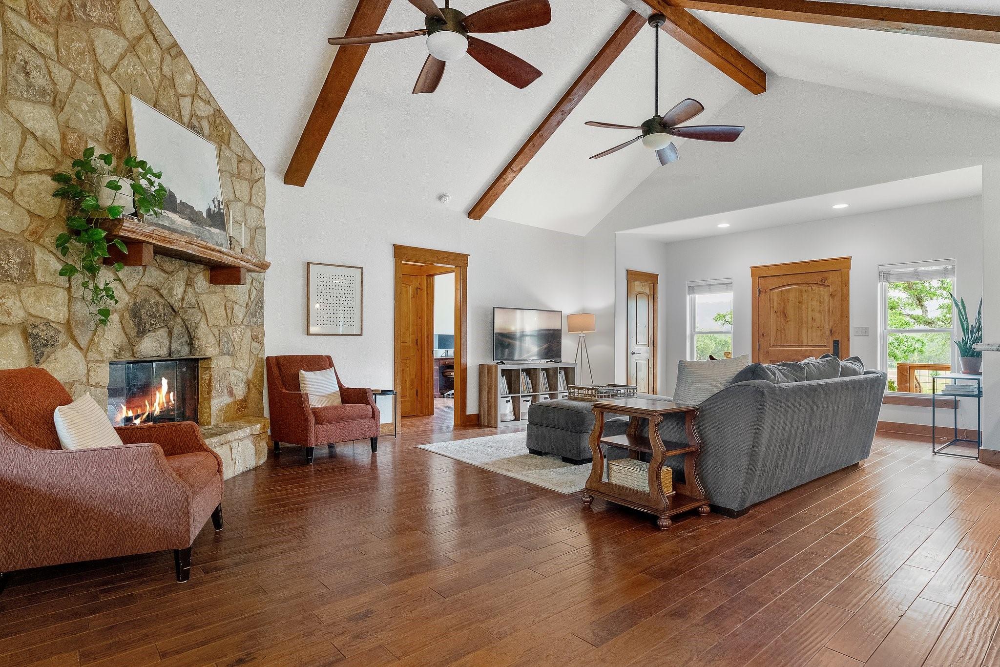 Welcome to 1451 Gatlin Creek Rd E in Driftwood, TX—a true gem in the heart of Texas Hill Country. This unrestricted 10-acre property, with an agricultural exemption, offers a unique combination of privacy, sustainability, and versatility. The estate features three custom-built homes, each with 3 bedrooms and 2 bathrooms, providing ample space for family, guests, or rental opportunities. Each home is equipped with its own power, septic system, and rainwater collection, complemented by new 72,000-gallon rainwater tanks, ensuring self-sufficiency and eco-friendly living. Outdoors, enjoy a sparkling pool for relaxation and a 2-acre wet weather pond, perfect for fishing or enjoying the tranquil setting. The property is adorned with over 50 mature heritage oak trees, creating a picturesque, park-like atmosphere. The land has been meticulously cleared of cedar, highlighting the natural beauty of the oaks. For those who love to work on projects or need extra storage, an 800 square foot workshop and a 1200 square foot barn are included. Additionally, the property is permitted to drill a well, adding another layer of self-reliance. Accessibility is a breeze with a paved road leading all the way to the property, located at the end of the road for ultimate privacy. Enjoy breathtaking Hill Country views and the serene ambiance this exceptional property provides. This estate is perfect for those seeking a private retreat, a multi-generational living arrangement, or an income-generating investment. Don’t miss the opportunity to own a piece of the Texas Hill Country paradise at 1451 Gatlin Creek Rd E.
