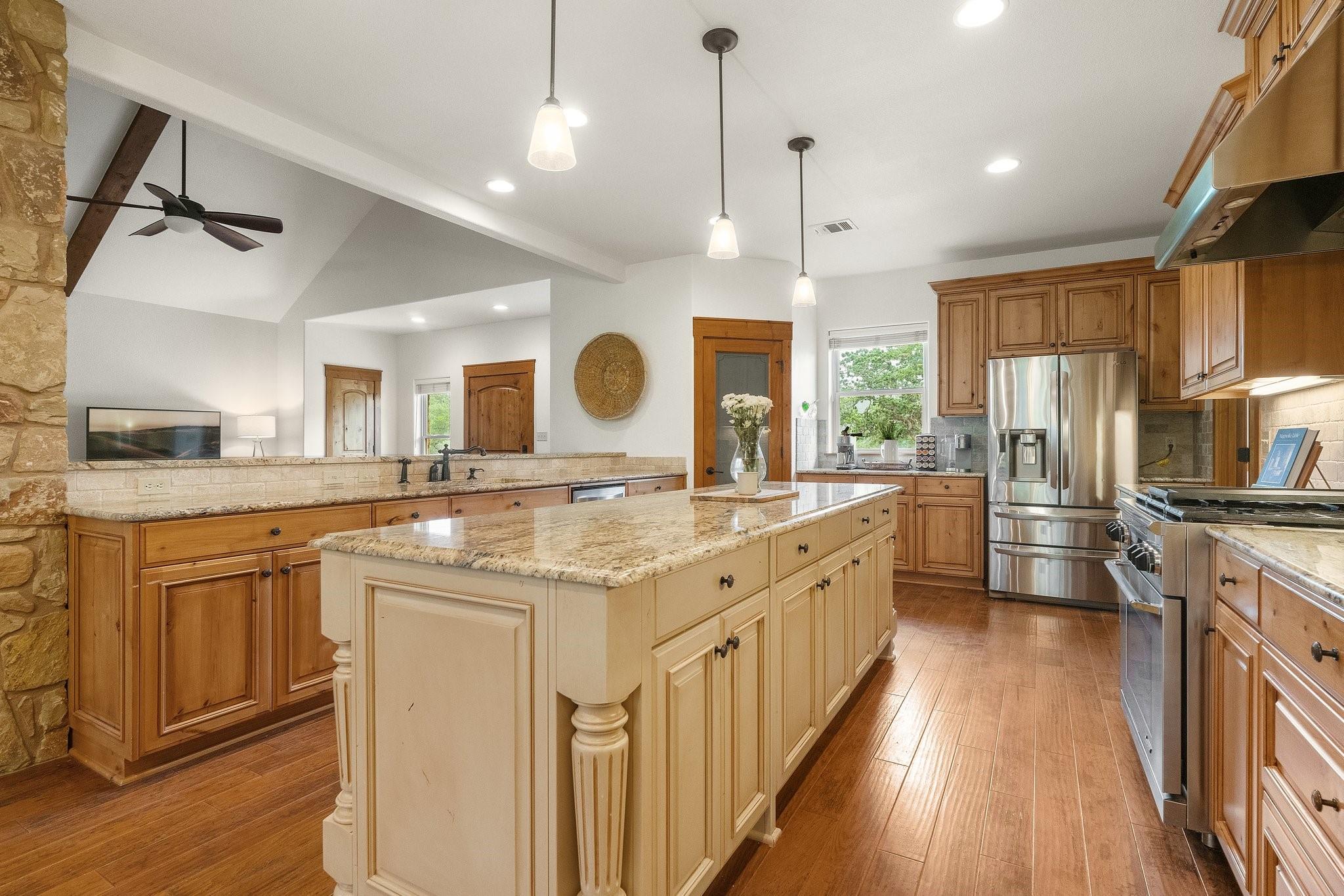 | Interior Features | Two Primary Baths, Two Primary Suties, Ceiling Fan(s), Vaulted Ceiling(s), Stone Counters, Double Vanity, In-Law Floorplan, Multiple Dining Areas, Multiple Living Areas, Pantry, Primary Bedroom on Main, Walk-In Closet(s), Washer Hookup | |