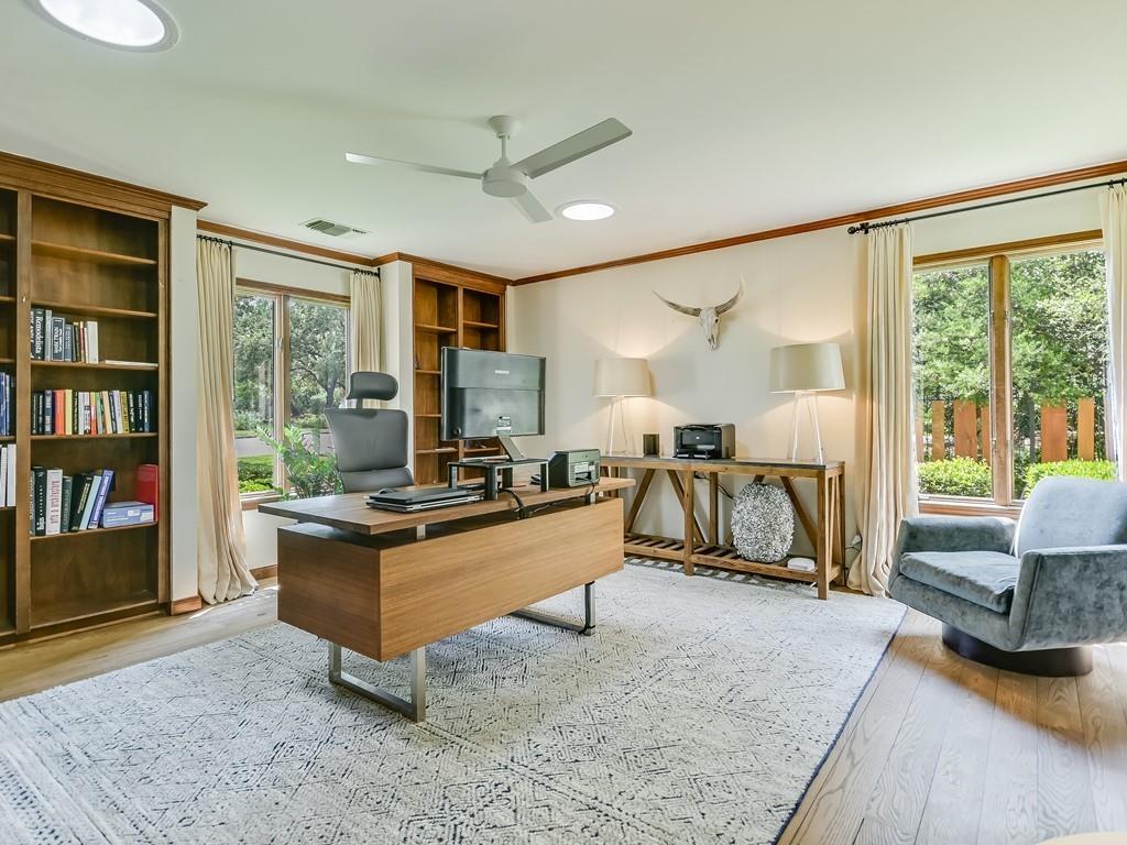 This character-filled home offers just over a half-acre private lot and stunning Hill Country views. Centrally located in Highland Park West, this home enjoys a great location close to everything, surrounded by beautiful nature. Live in as-is or put your stamp on this unique property. Distinctive style and details fill the interior, including saltillo tile floors, Talavera Mexican tile accents, and intricate millwork. The spacious 4-bed/3.5-bath floor plan offers plenty of flexible and family-friendly space with three living rooms. A lower-level portico winds around the property with stucco arches and a tongue-and-groove ceiling. The shady outdoor living room and dining area overlook a large backyard with mature oak trees, a swimming pool, and an unobstructed tree-top view. A covered second-floor balcony offers additional outdoor living space with even more expansive vistas. Minutes from Mount Bonnell, Bright Leaf Preserve, and the Colorado River. Enjoy excellent public and private schools –walkable to Highland Park Elementary– and proximity to 2222 and MoPac. Downtown Austin is fifteen minutes away.