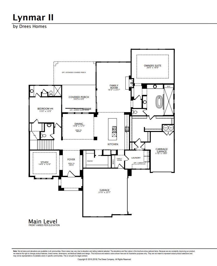 The Lynmar II is a gorgeous open and airy home that boasts amazing indoor and outdoor entertaining spaces. The two-story foyer invites you in and draws your eye to the two-story dining room that overlooks the courtyard. The gourmet kitchen includes a large pantry and huge island for entertaining. The spacious family room includes a fireplace and multipaneled sliding door to the courtyard and covered porch. Upstairs, entertain in the game and media rooms or head outside to the second story covered porch. The plan includes five bedrooms with private baths and walk-in closets.