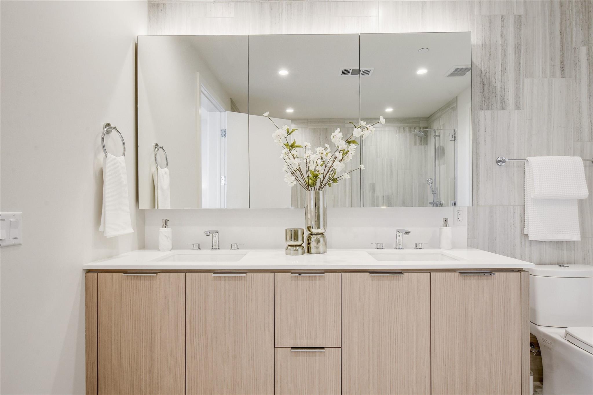 Don’t miss your chance to own at 44 East, Austin’s premier luxury tower located in the heart of the Rainy St district! Unit 2801 is one of the few highly desirable South facing 3-bedroom corner units, with stunning views of Lady Bird Lake and the city skyline. This spacious unit features 10 ft. ceilings, floor-to-ceiling windows, Bosch appliance package (built-in refrigerator and washer/dryer included), hardwood floors, quartz countertops with upgraded backsplash, and a large open living room perfect for entertaining. This unit comes with two reserved parking spaces (#252 & #253) in the gated garage. Enjoy 44 East’s beautiful common areas and amenities, including 24-hour concierge, a cenote pool, outdoor lounge with gas grills, fitness center, yoga studio, conference rooms, coffee bars, great room with TVs and caterer’s kitchen, family room, game room and two guest suites (amenities are located on the 11th floor). As a bonus, enjoy the breath-taking views from the Sky Lounge located on the 37th floor. 44 East is walkable to dining, entertainment, shopping, parks, trails, and the lake. Easy access to I-35, Mopac, and a quick 15-minute drive to Austin Bergstrom Airport.