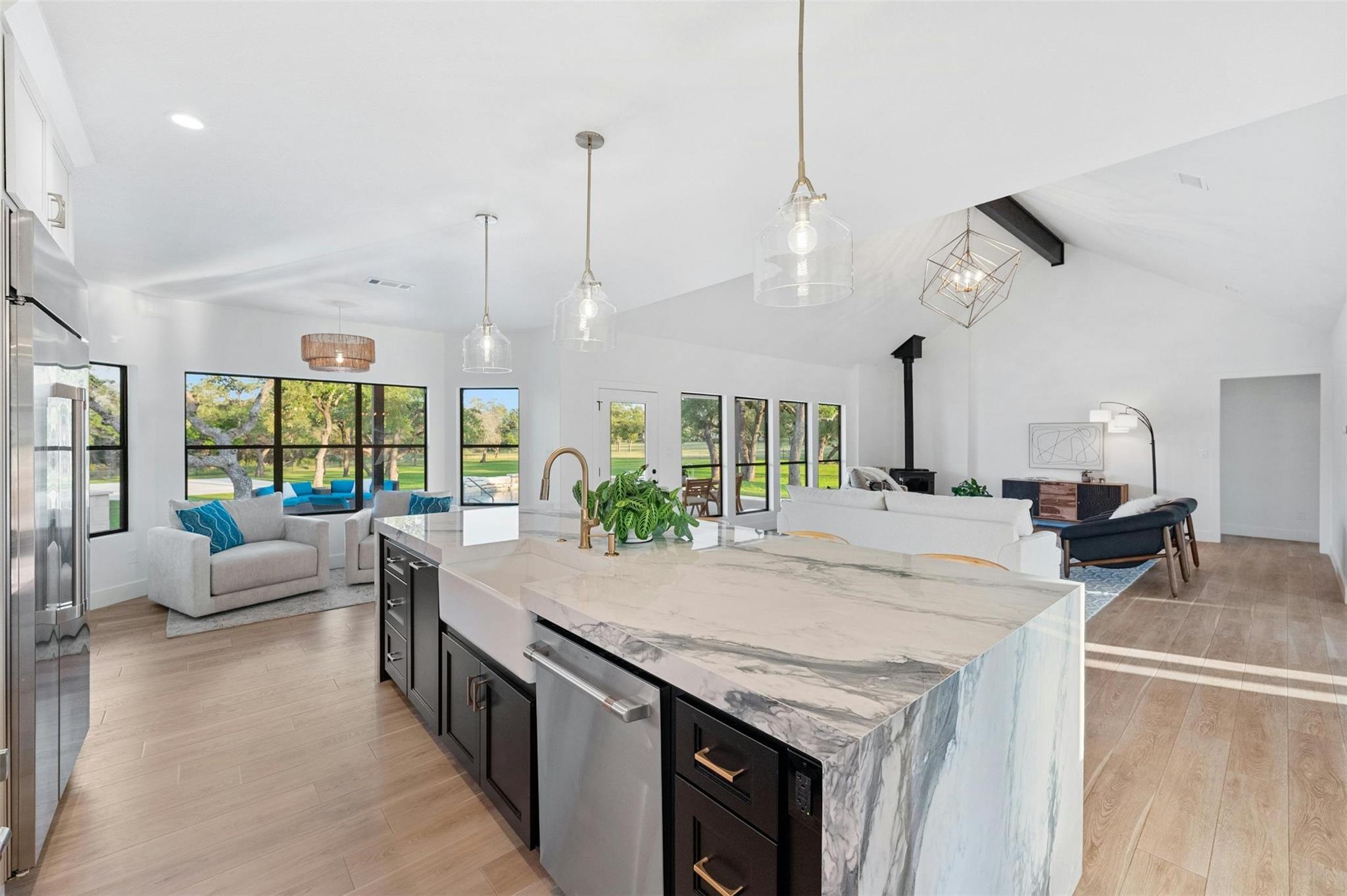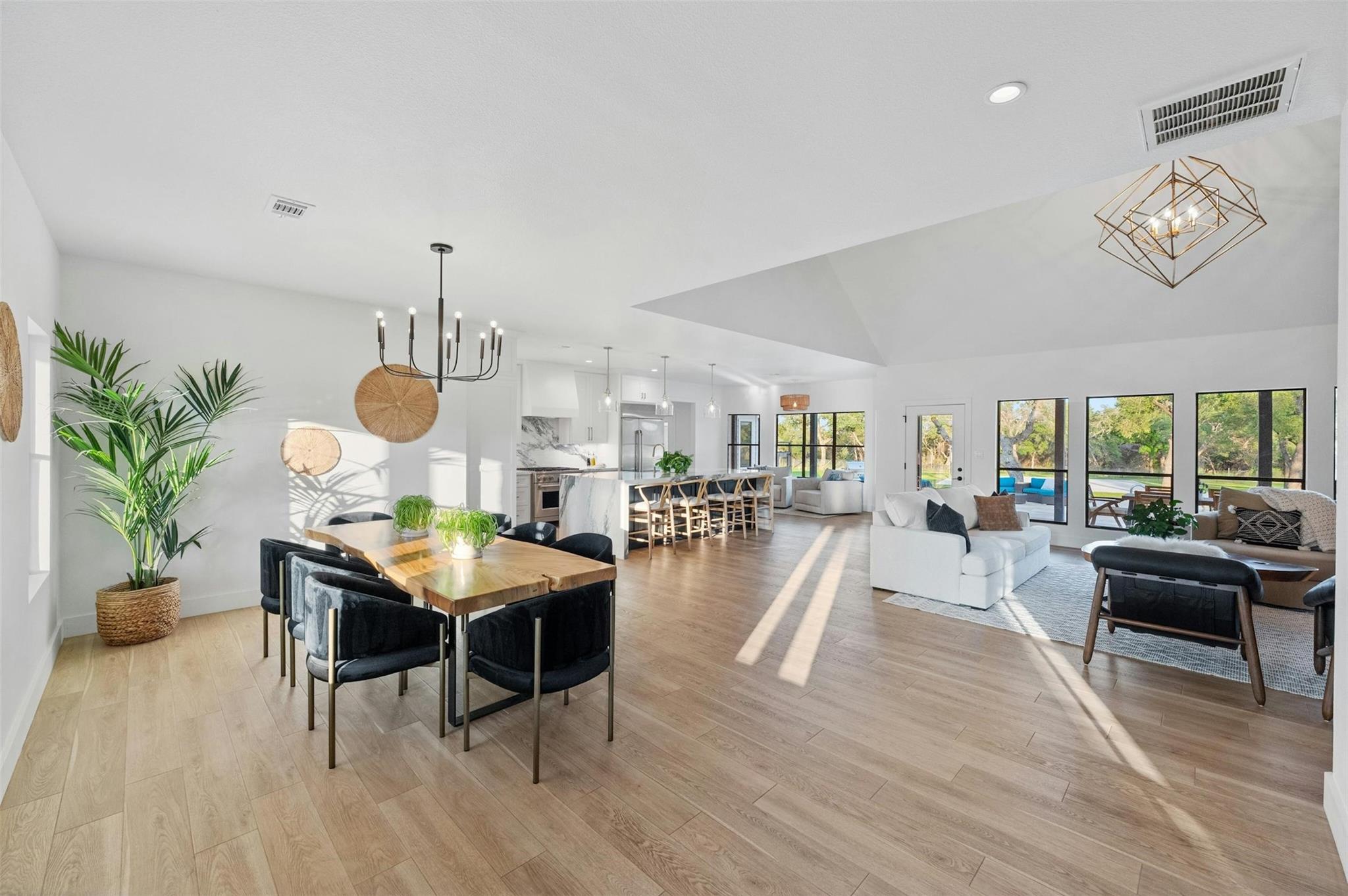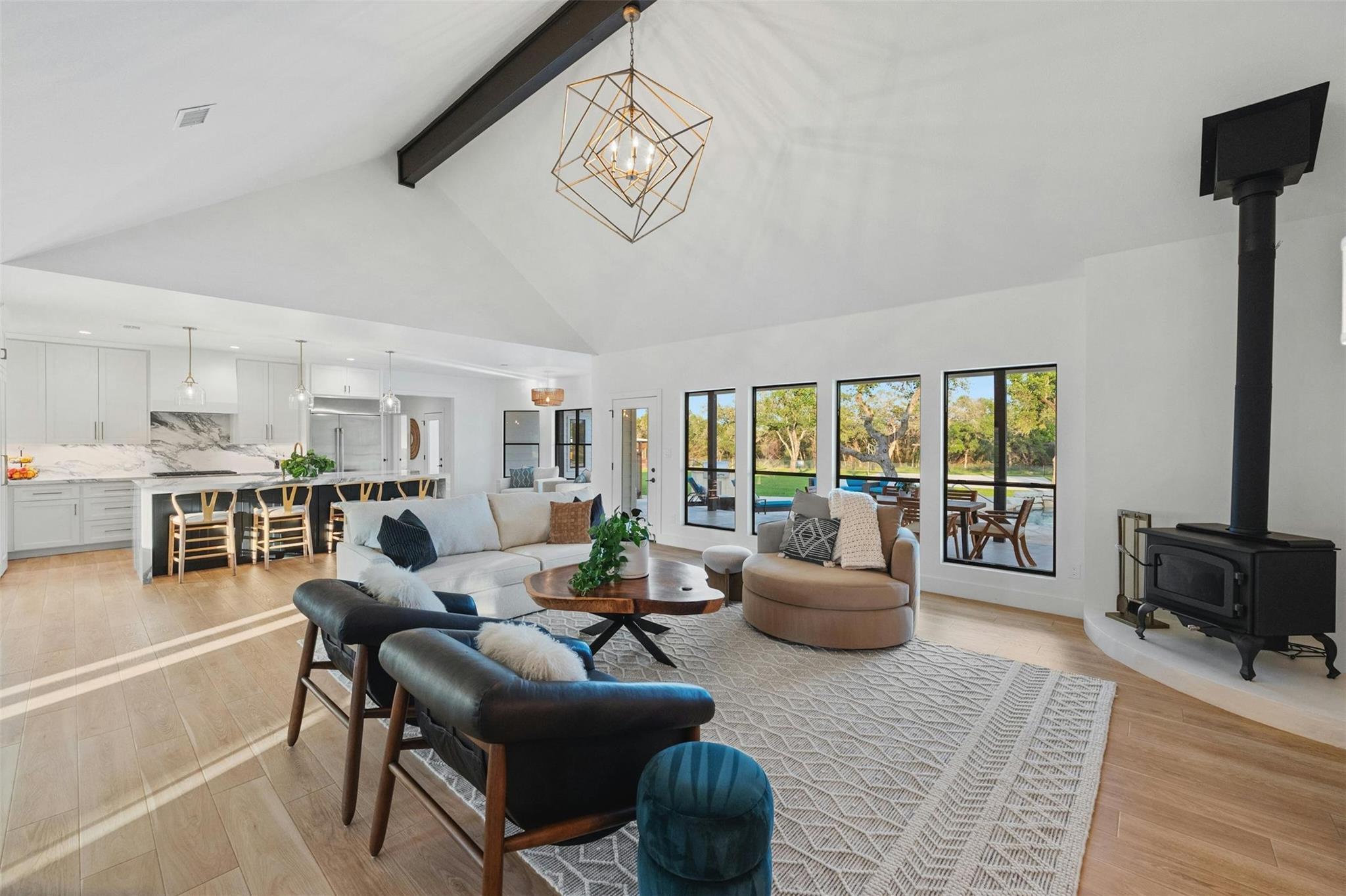 | Interior Features | Two Primary Baths, Two Primary Suties, Breakfast Bar, Ceiling Fan(s), Beamed Ceilings, High Ceilings, Vaulted Ceiling(s), Chandelier, Double Vanity, French Doors, High Speed Internet, In-Law Floorplan, Interior Steps, Kitchen Island, Multiple Dining Areas, Open Floorplan, Pantry, Recessed Lighting, Smart Thermostat, Soaking Tub, Stackable W/D Connections, Storage, Walk-In Closet(s) | |
