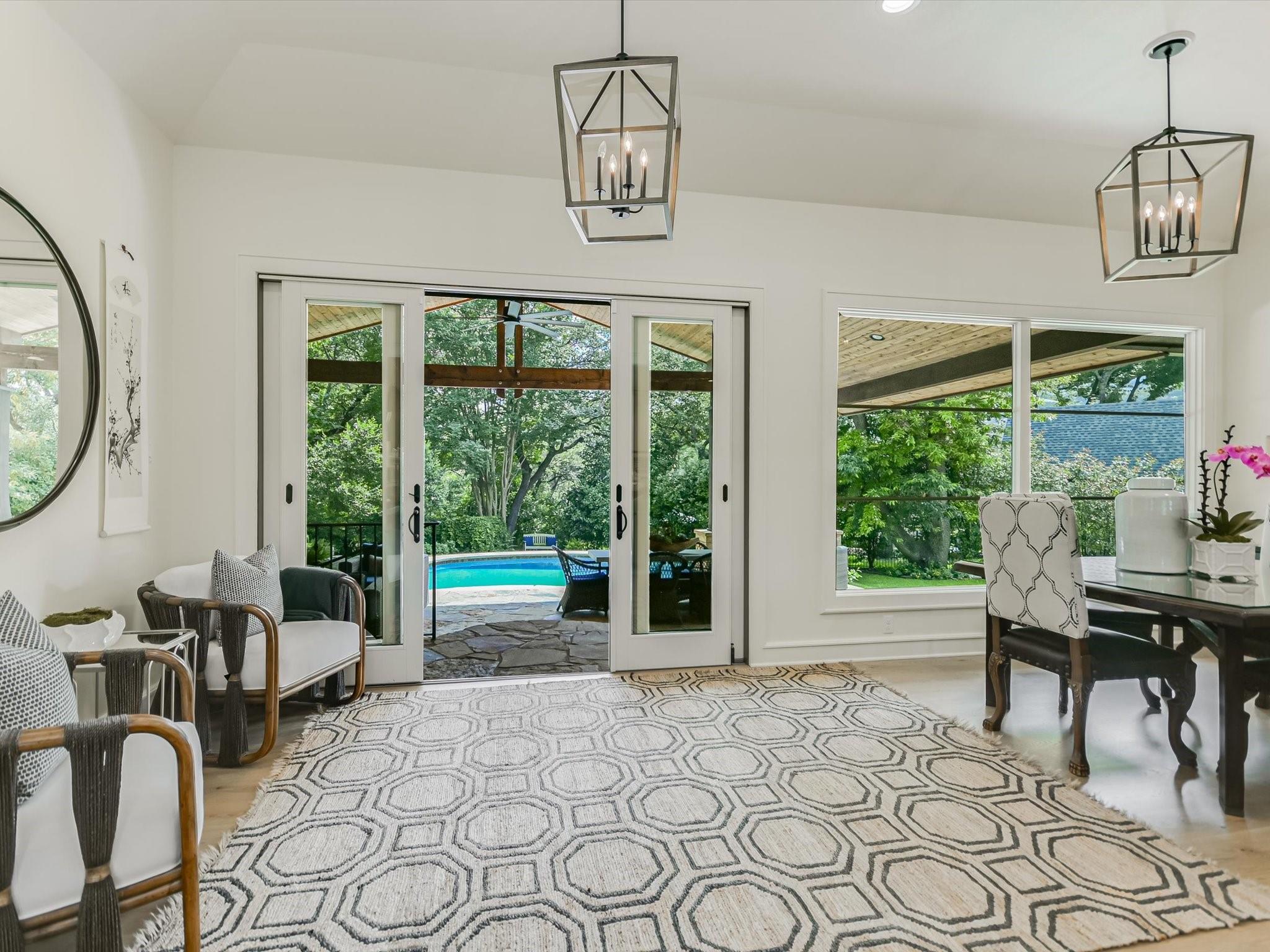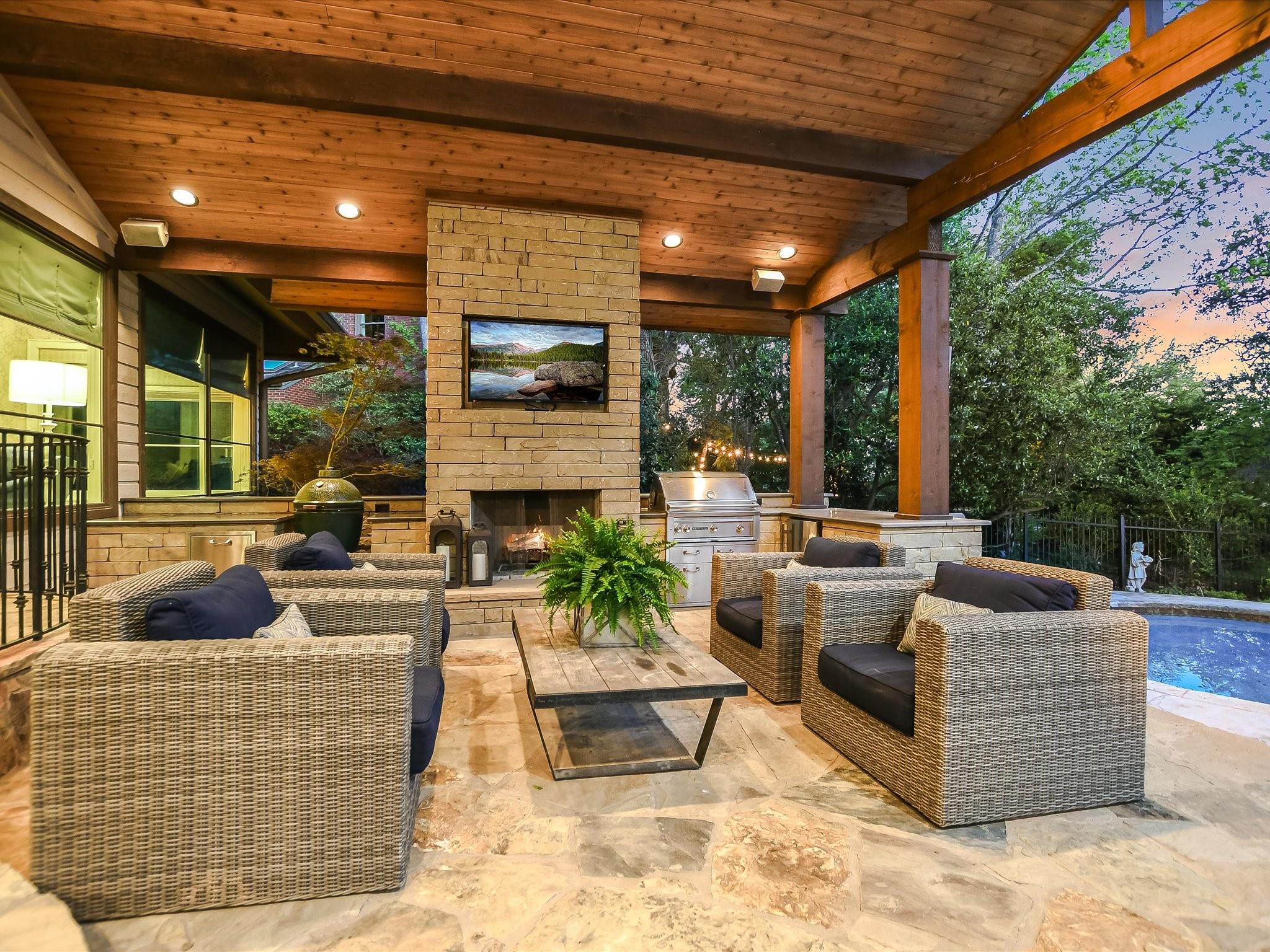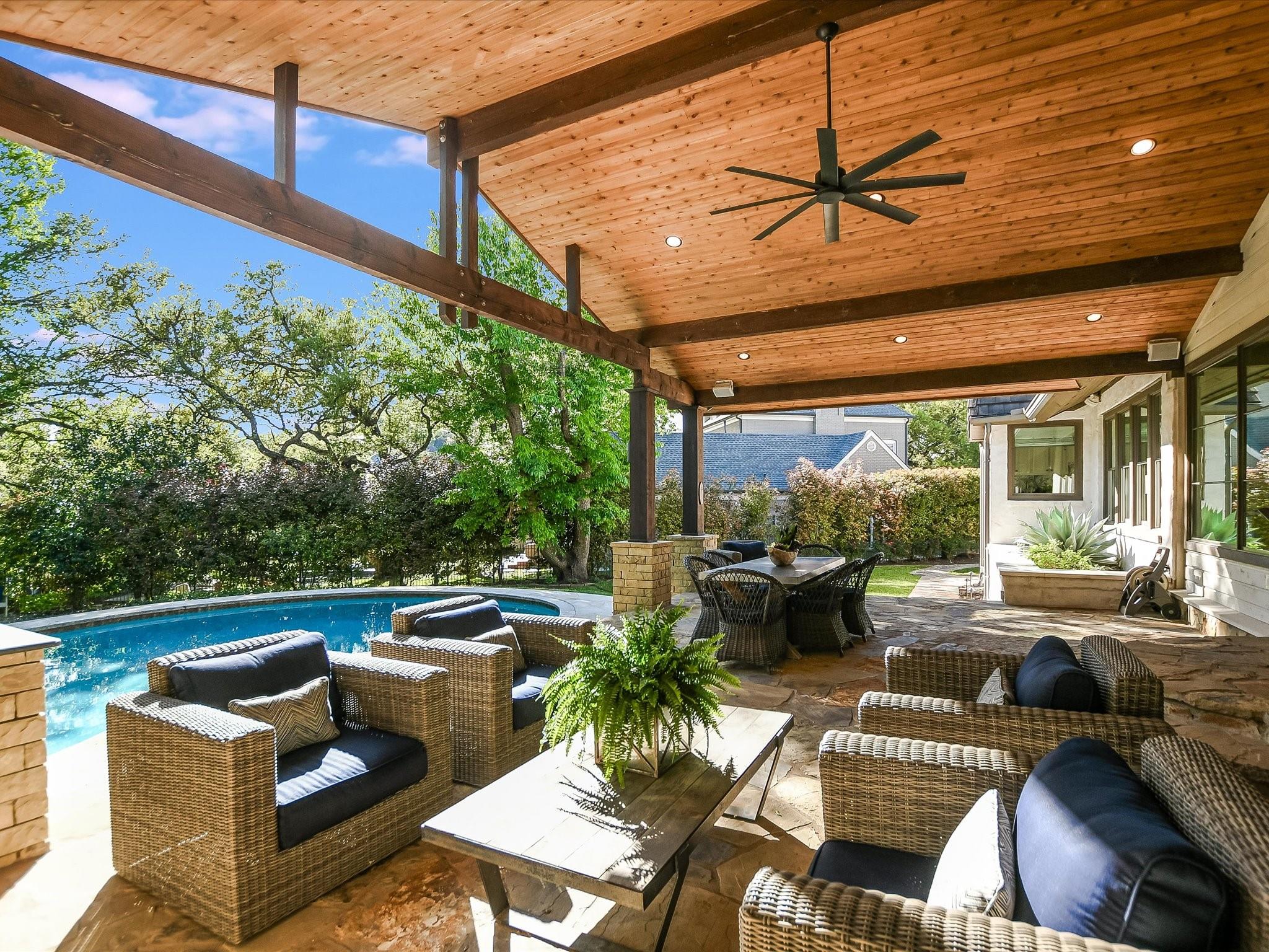Step into a world where luxury seamlessly meets a vibrant community spirit in Westlake. One of the original 5 homes in all of Westview, this one story entertainer's dream is a highly sought after masterpiece of design and comfort, highlighted by a stunning redesigned kitchen with a 9-foot quartzite island and top-tier appliances, setting the stage for unforgettable entertaining. The seamless flow and thoughtful floor plan guides you through spacious, well-lit living spaces adorned with designer lighting, custom window treatments, Schumacher wallpaper and 4 cozy fireplaces, to a backyard paradise featuring an expansive patio with a fireplace, a pool, an outdoor kitchen with green egg, a fire pit - ideal for hosting any event. The primary suite is a haven of tranquility, complete with a fireplace, seating area and a spa-like bath, ensuring privacy and relaxation. Three large secondary bedrooms provide ample space.This versatile floor plan allows for endless possibilities with ample parking for guests. Nestled on a sprawling corner lot in a close-knit neighborhood celebrated for its community events, this property offers a unique blend of privacy and suburban warmth. Embrace the lifestyle you've dreamed of in a home that's more than a residence—it's a community. All encompassed in Eanes ISD with a low tax rate all within 8 miles of downtown Austin. Experience it for yourself by scheduling a showing today!