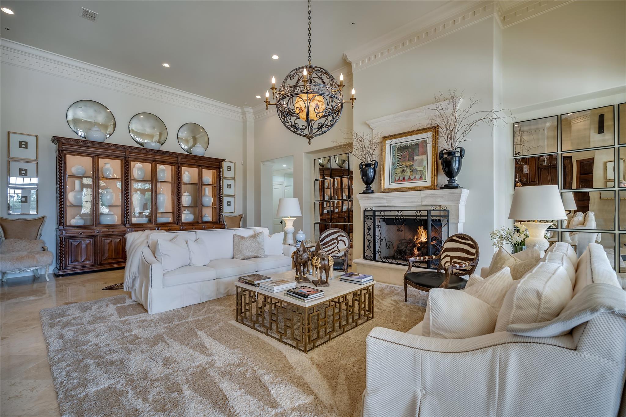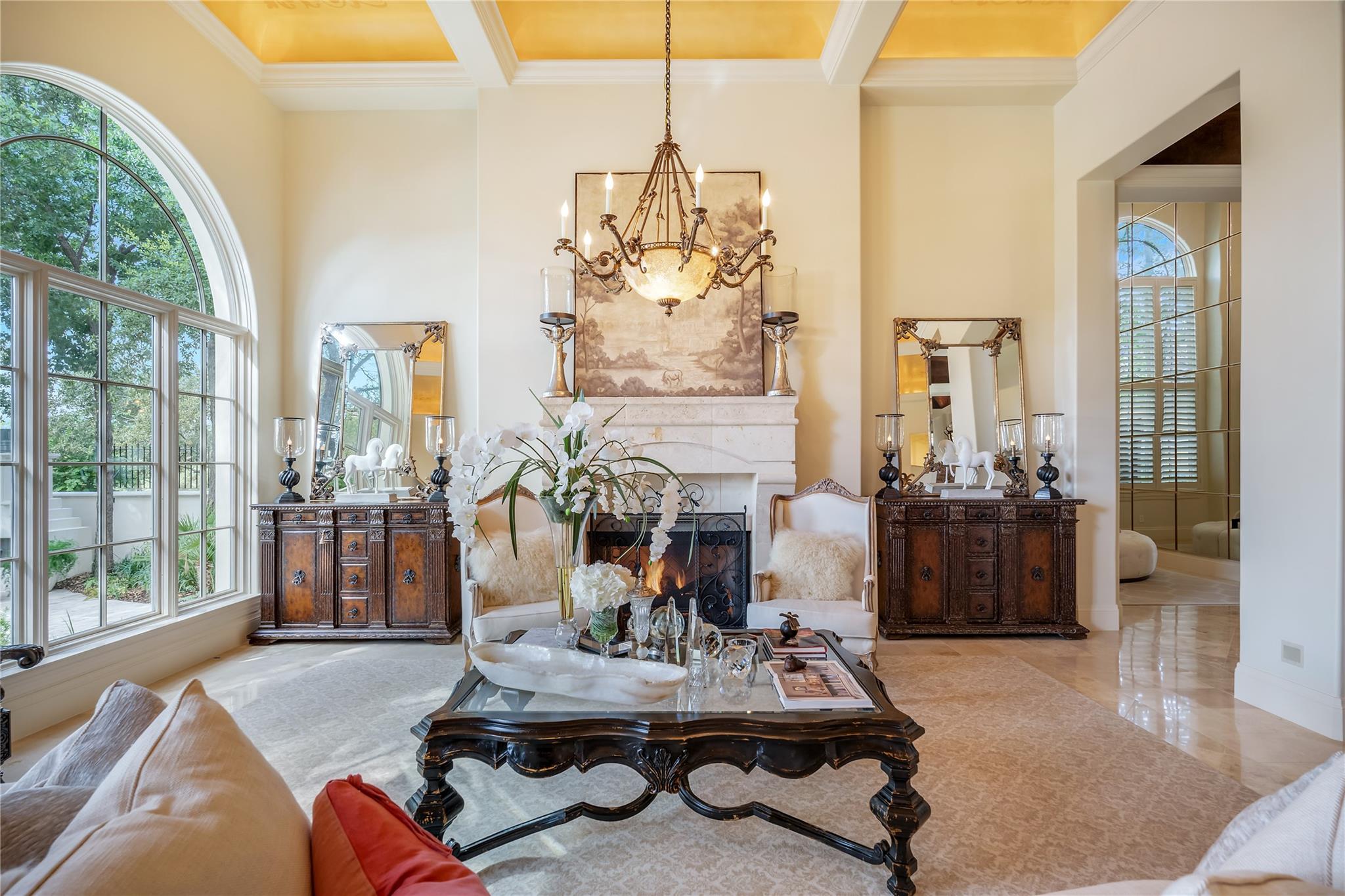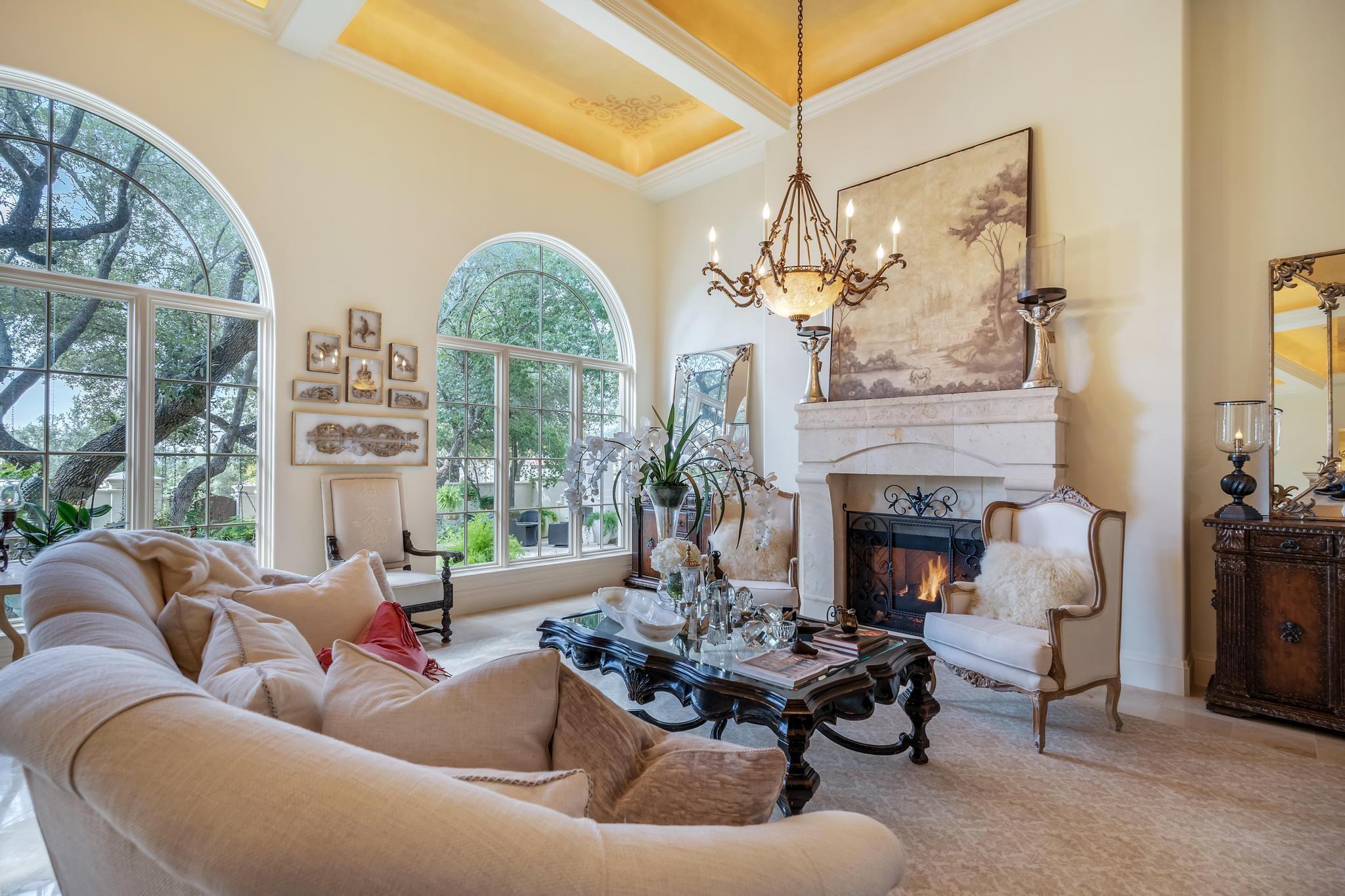 Only once in a lifetime does luxury living like this come along-private courtyard entry sets the tone with spacious patios, fireplace, elevated pool, spa and outdoor dining/ entertaining area. Step inside to soak in Santa Barbara inspired style with light bathed interiors, travertine and wood flooring, 26ft mirrored entry and gallery with groin ceiling showcasing formal living and dining that opens to the outdoor patios. Wonderful gourmet kitchen has a custom pot rack, commercial style range, built-in refrigerator and flows into casual dining and living with fireplace. Secluded primary suite with 5-star hotel worthy bath, custom closet, cedar storage plus exercise or large dressing/lounge area overlooking the back covered patios with rock wall privacy. Sleeping area with fireplace and sitting area has private outside access. Spacious ensuite study is a revelation offering the option of a 4th bedroom while retaining a study or additional living area. Two additional private ensuite guest suites give this home a resort feel. Over half acre lot offers ultimate privacy in one of the most prestigious neighborhoods in the city of San Antonio. .
