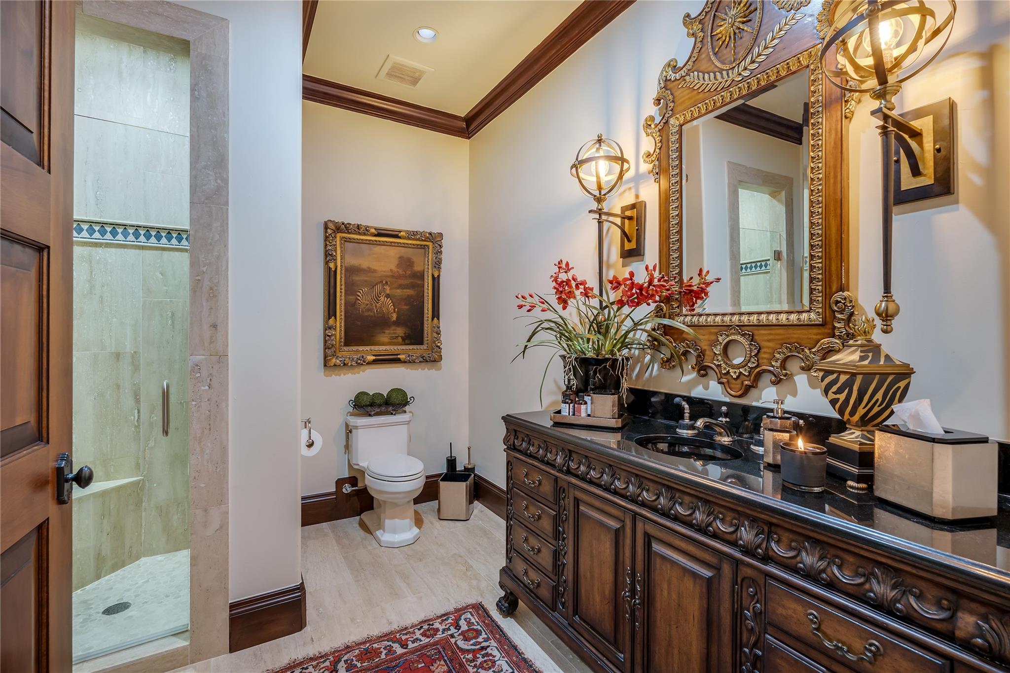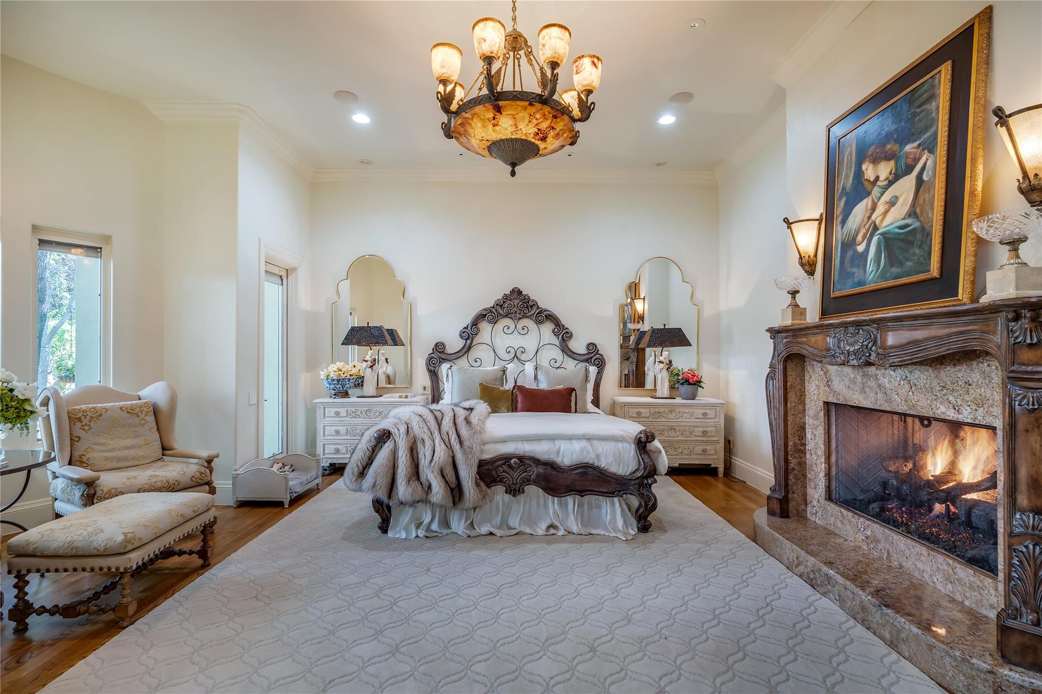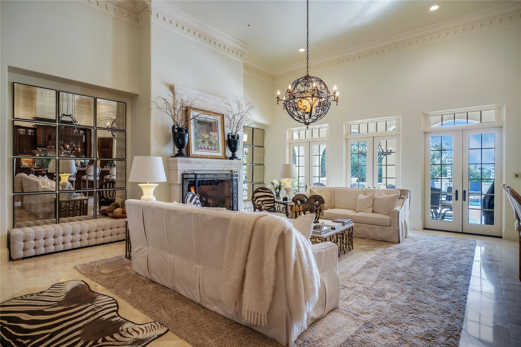 Only once in a lifetime does luxury living like this come along-private courtyard entry sets the tone with spacious patios, fireplace, elevated pool, spa and outdoor dining/ entertaining area. Step inside to soak in Santa Barbara inspired style with light bathed interiors, travertine and wood flooring, 26ft mirrored entry and gallery with groin ceiling showcasing formal living and dining that opens to the outdoor patios. Wonderful gourmet kitchen has a custom pot rack, commercial style range, built-in refrigerator and flows into casual dining and living with fireplace. Secluded primary suite with 5-star hotel worthy bath, custom closet, cedar storage plus exercise or large dressing/lounge area overlooking the back covered patios with rock wall privacy. Sleeping area with fireplace and sitting area has private outside access. Spacious ensuite study is a revelation offering the option of a 4th bedroom while retaining a study or additional living area. Two additional private ensuite guest suites give this home a resort feel. Over half acre lot offers ultimate privacy in one of the most prestigious neighborhoods in the city of San Antonio. .