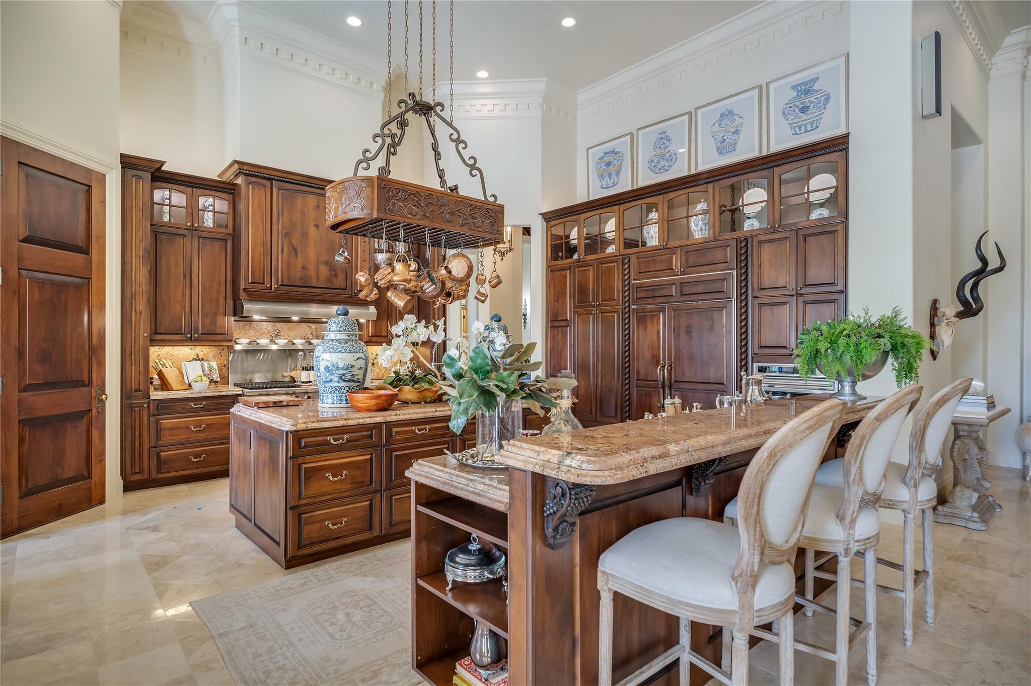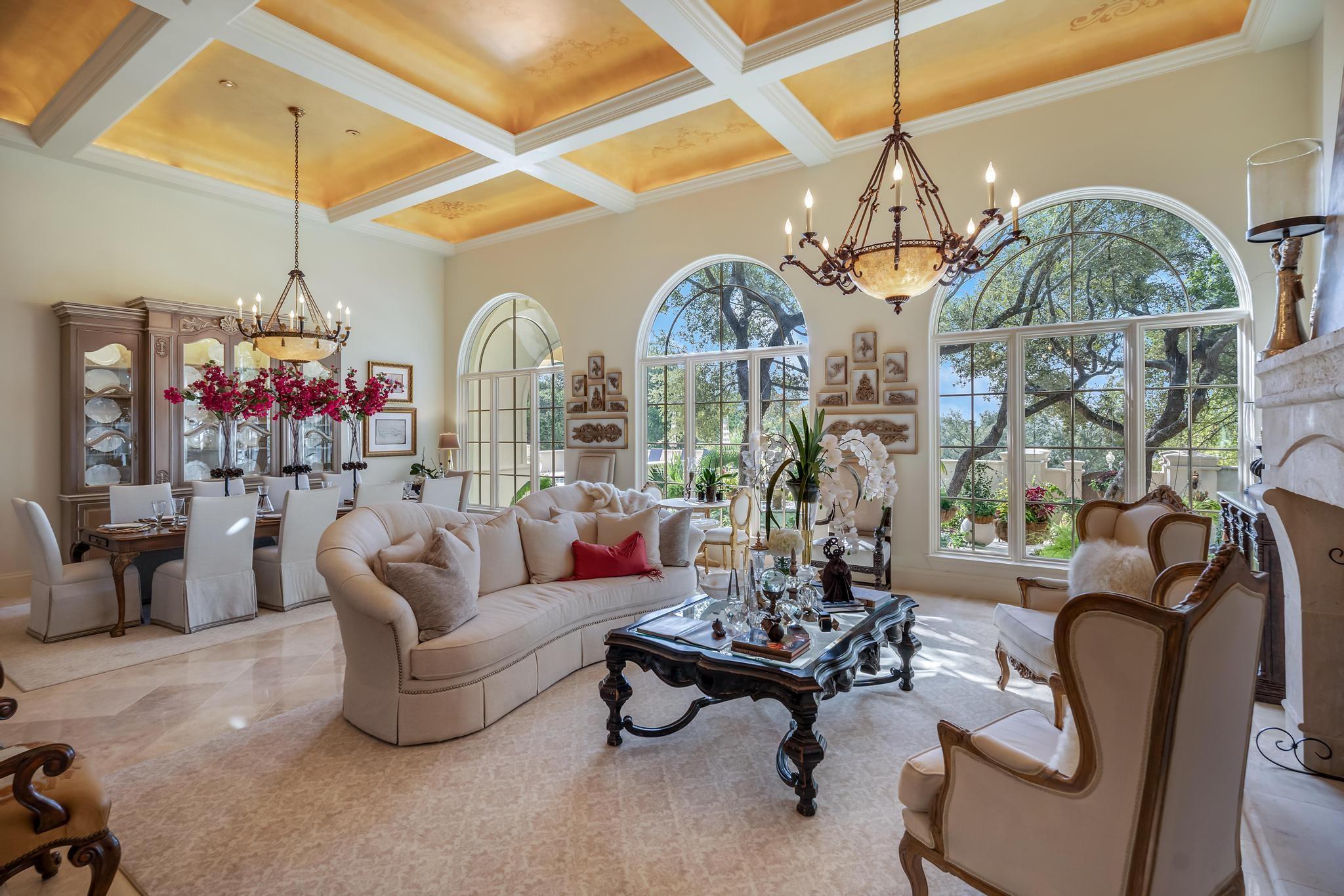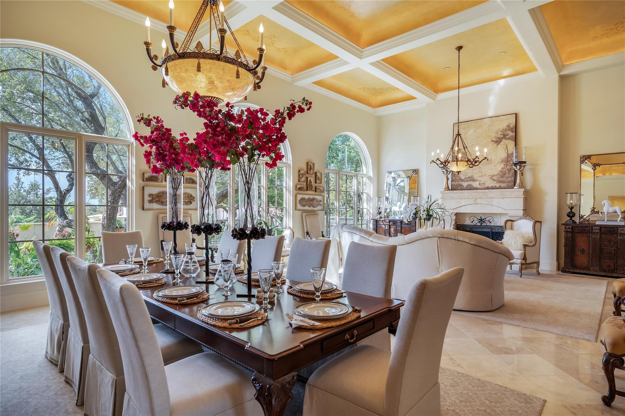 | Interior Features | Breakfast Bar, Built-in Features, Cedar Closet(s), Ceiling Fan(s), Beamed Ceilings, Coffered Ceiling(s), High Ceilings, Vaulted Ceiling(s), Chandelier, Granite Counters, Crown Molding, Double Vanity, High Speed Internet, Kitchen Island, Multiple Dining Areas, Multiple Living Areas, No Interior Steps, Open Floorplan, Pantry, Primary Bedroom on Main, Soaking Tub, Walk-In Closet(s), Wired for Sound | |