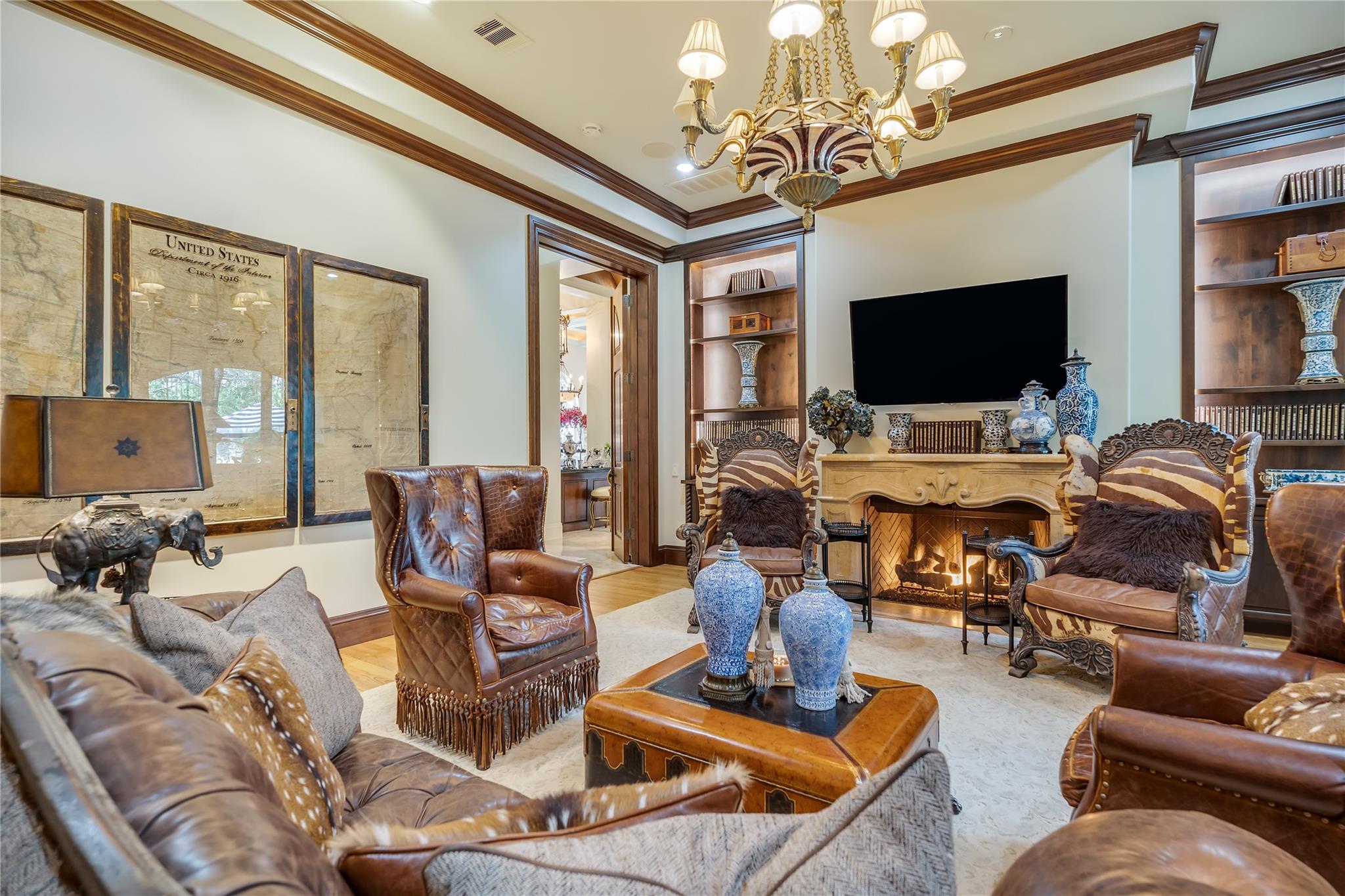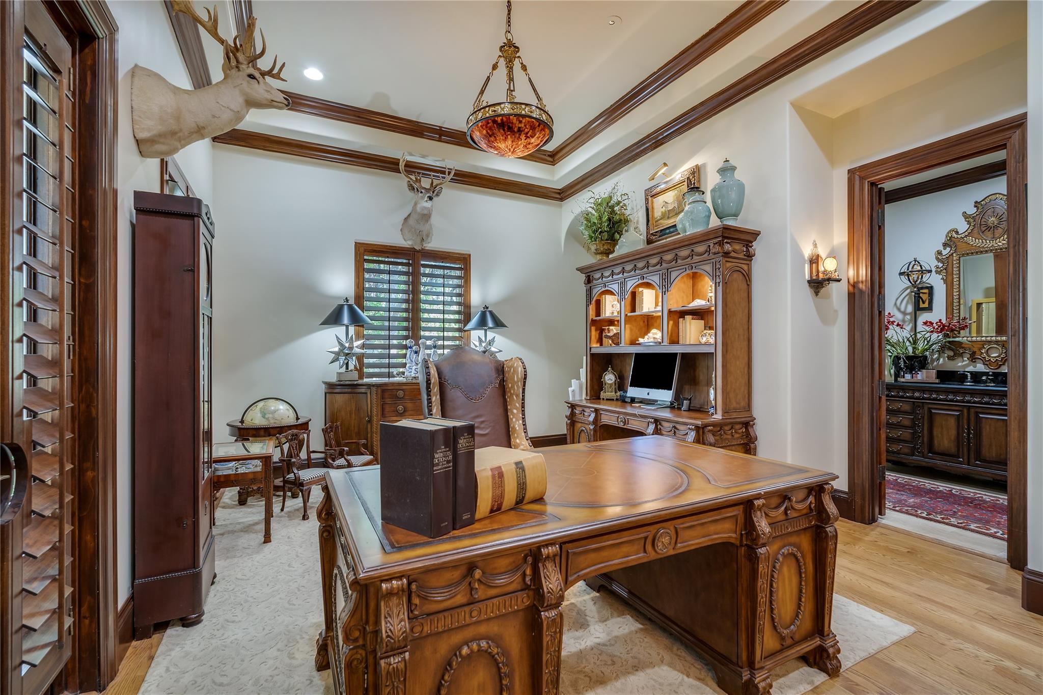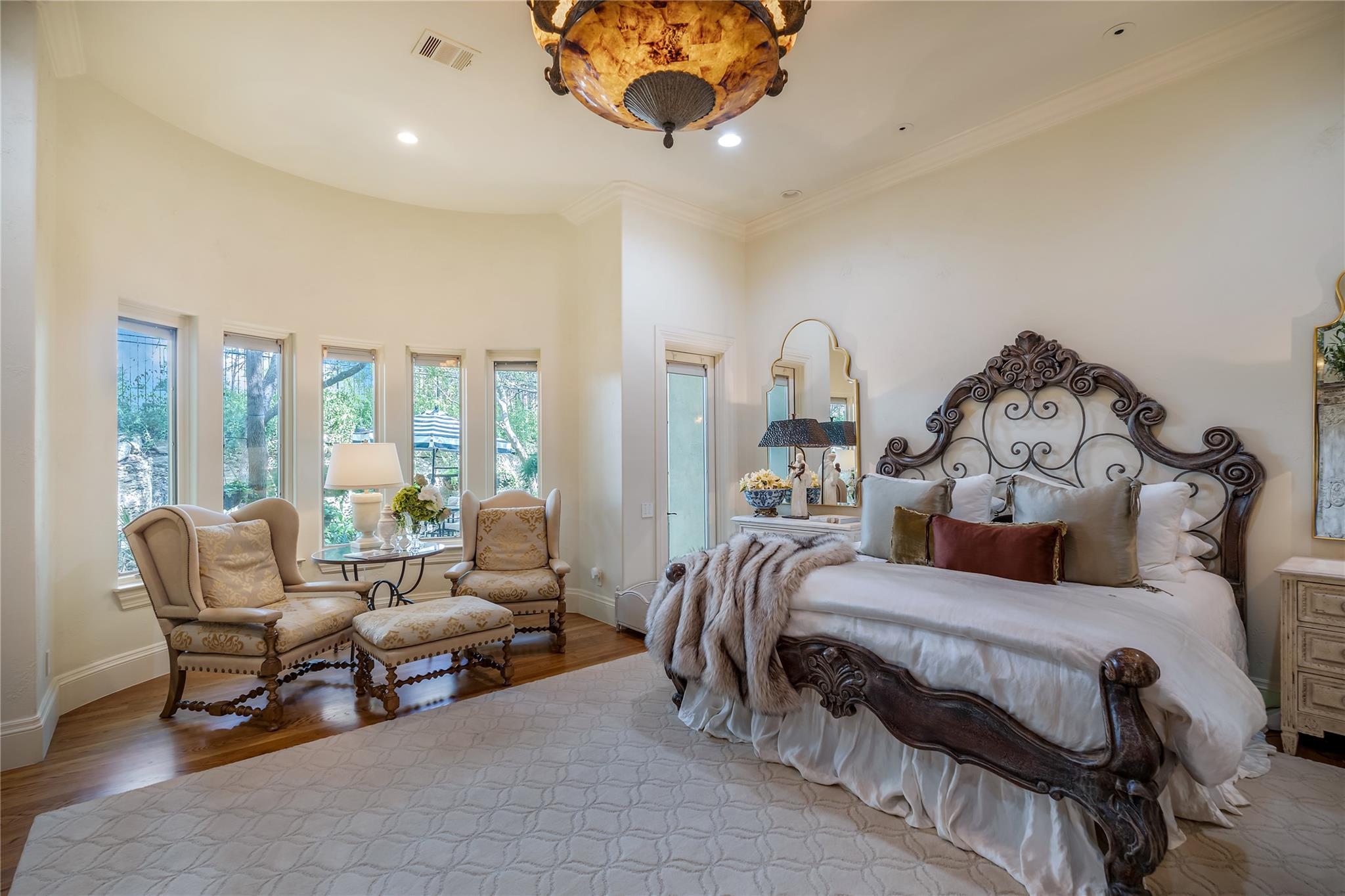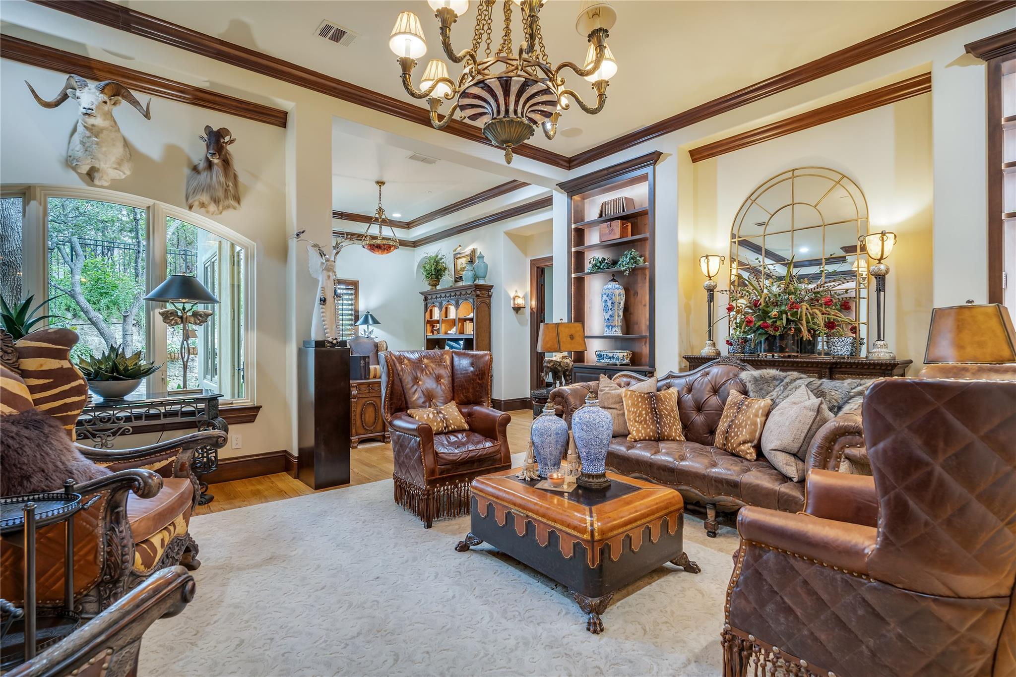| Interior Features | Breakfast Bar, Built-in Features, Cedar Closet(s), Ceiling Fan(s), Beamed Ceilings, Coffered Ceiling(s), High Ceilings, Vaulted Ceiling(s), Chandelier, Granite Counters, Crown Molding, Double Vanity, High Speed Internet, Kitchen Island, Multiple Dining Areas, Multiple Living Areas, No Interior Steps, Open Floorplan, Pantry, Primary Bedroom on Main, Soaking Tub, Walk-In Closet(s), Wired for Sound | |