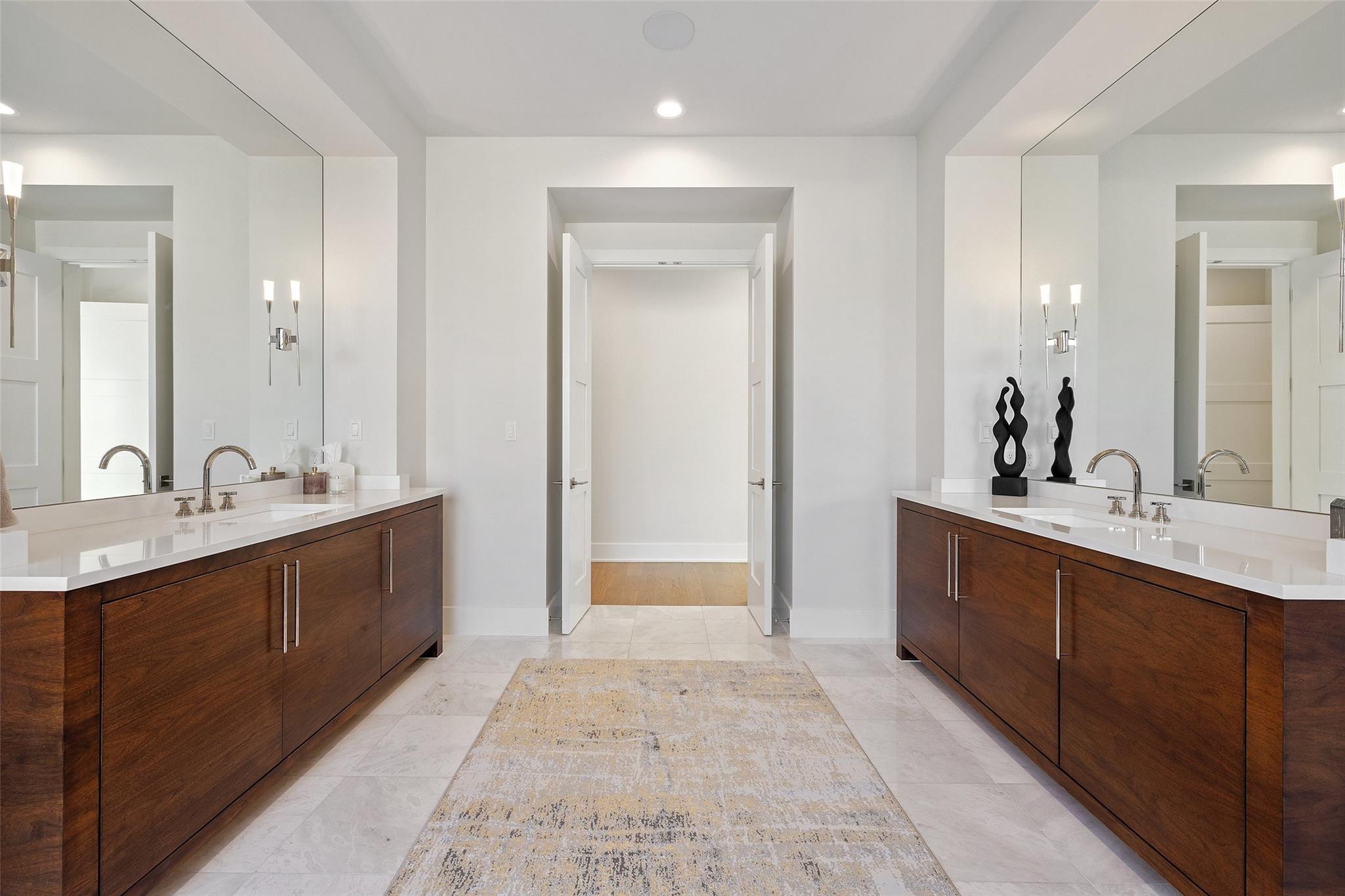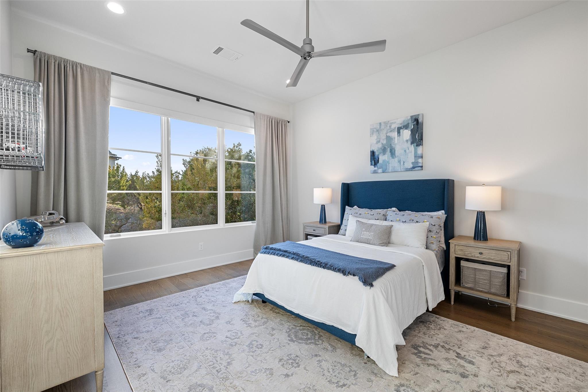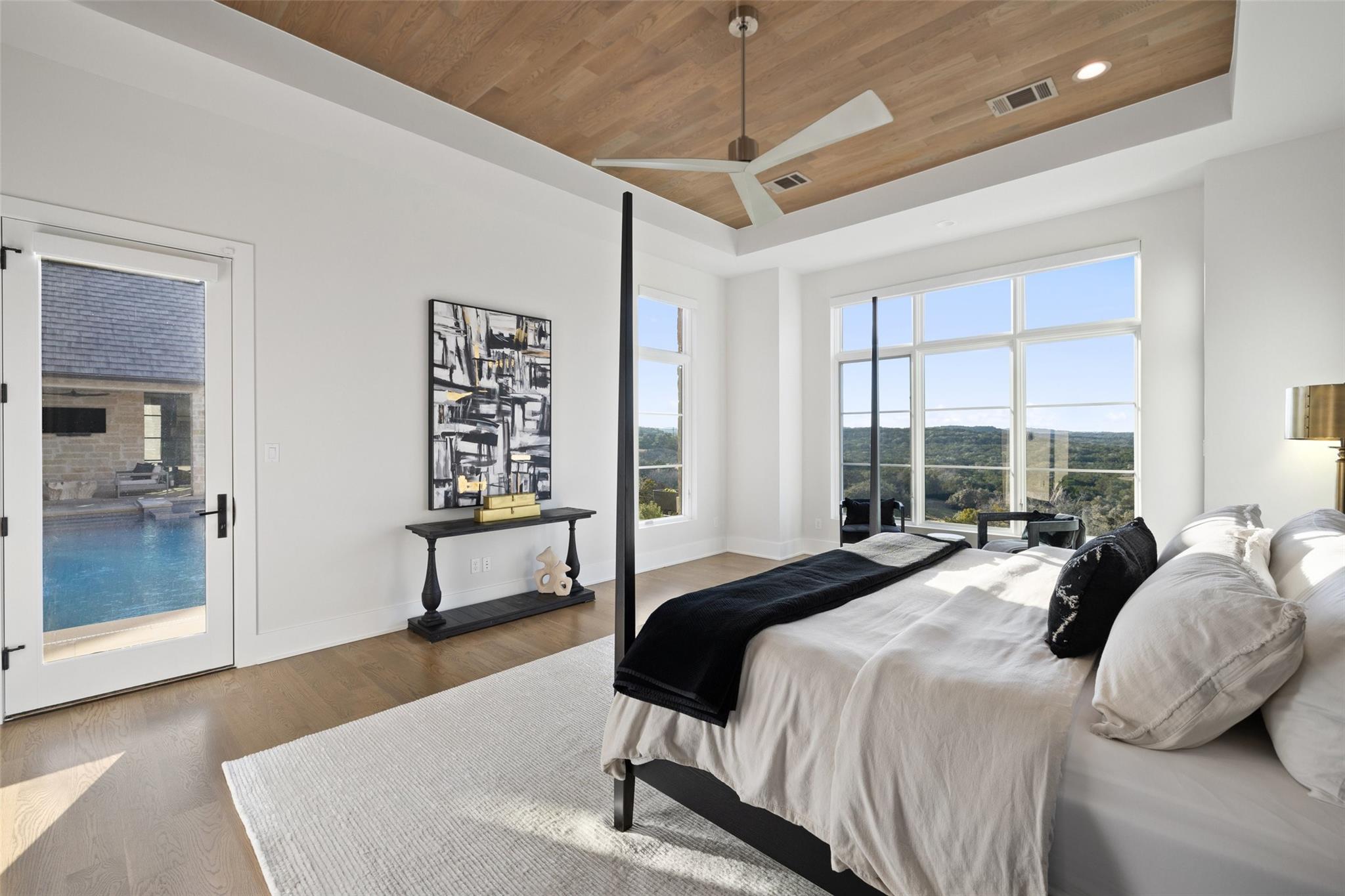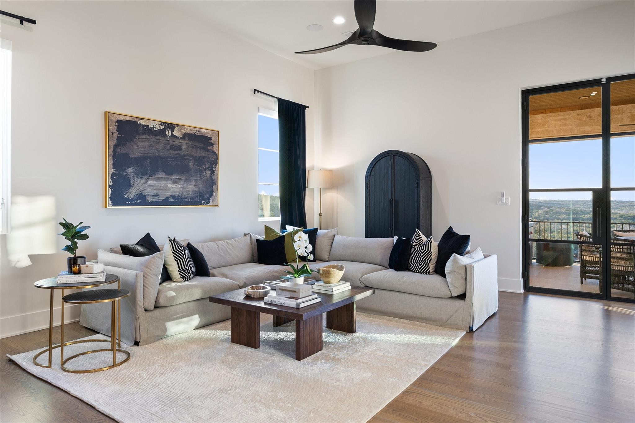 Beautiful showplace home in the highly sought after and acclaimed gated neighborhood of Amarra. Comprising 2.7 lush acres, this property is one of the largest in the neighborhood and overlooks the 16th hole of the Barton Creek Fazio Canyons Golf Course. The siting of the home on the lot creates exceptional privacy, as the entrance is set below a landscaped bluff shielding the home from passers-by. The view out through the back wall of windows is of verdant unobstructed rolling hills and green belt views; neighbors are almost invisible to either side. Originally the model for luxury home builder Heyl Homes, this estate features high-end custom finishes, including grain-matched walnut cabinetry, hand-finished hardwood floors, elevated stonework and the single-story home features soaring ceilings in the great room, with walls of windows bracketing the space and filling it with warm light and green views during the day and spectacular sunsets at sundown. Wood trusses and native Texas limestone bring organic elements to the room. The sleek kitchen is outfitted with gourmet subzero appliances and enjoys a view out over the landscape as well. A second living area opens to the summer kitchen and pool, allowing an unimpeded flow from indoors out. Set privately behind a separate hallway, the primary suite opens to the pool and terrace from the opposite side of the outdoor living space and overlooking the spectacular Hill Country views. A marble-clad bath with soaking tub and two walk-in closets makes getting ready in the morning a joy. This wing also features a massive, dedicated office plus en-suite bedroom that offers flexibility as a guest room, second office space or even a workout room. Two additional en-suite bedrooms lie on the opposite wing, allowing some quiet and privacy for all family members. Additional luxuries include a three-car, epoxy-floored garage, large laundry room, ample storage and in-home cocktail bar for entertaining family and friends.