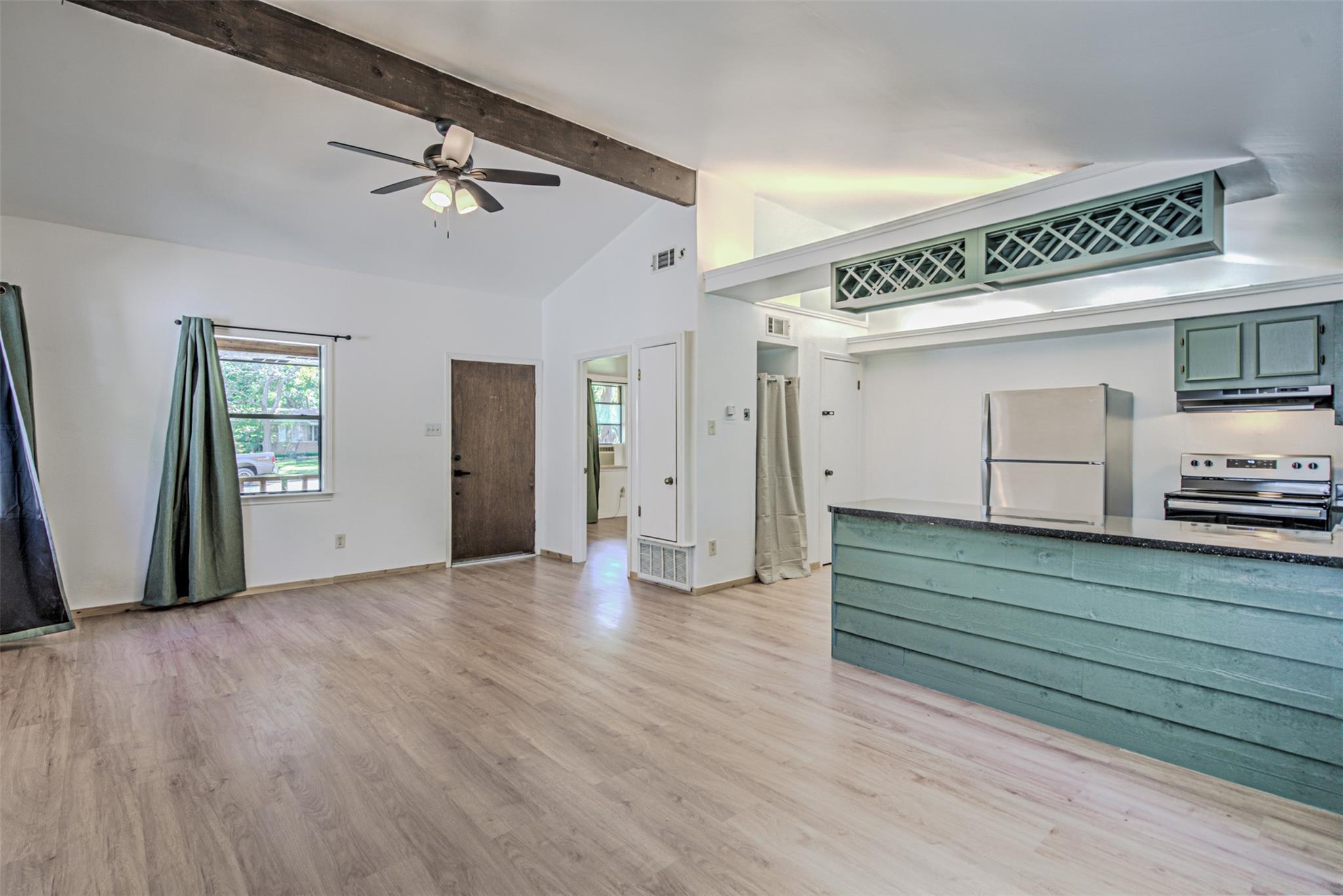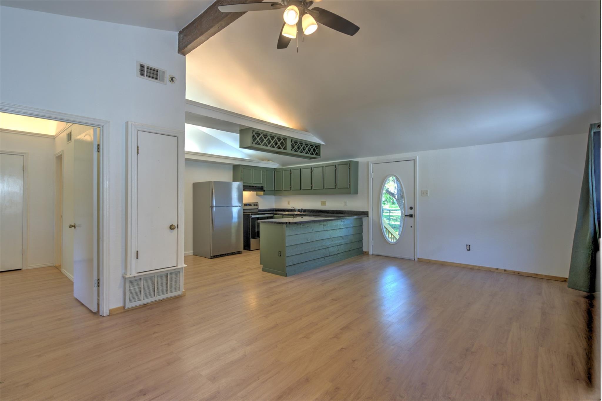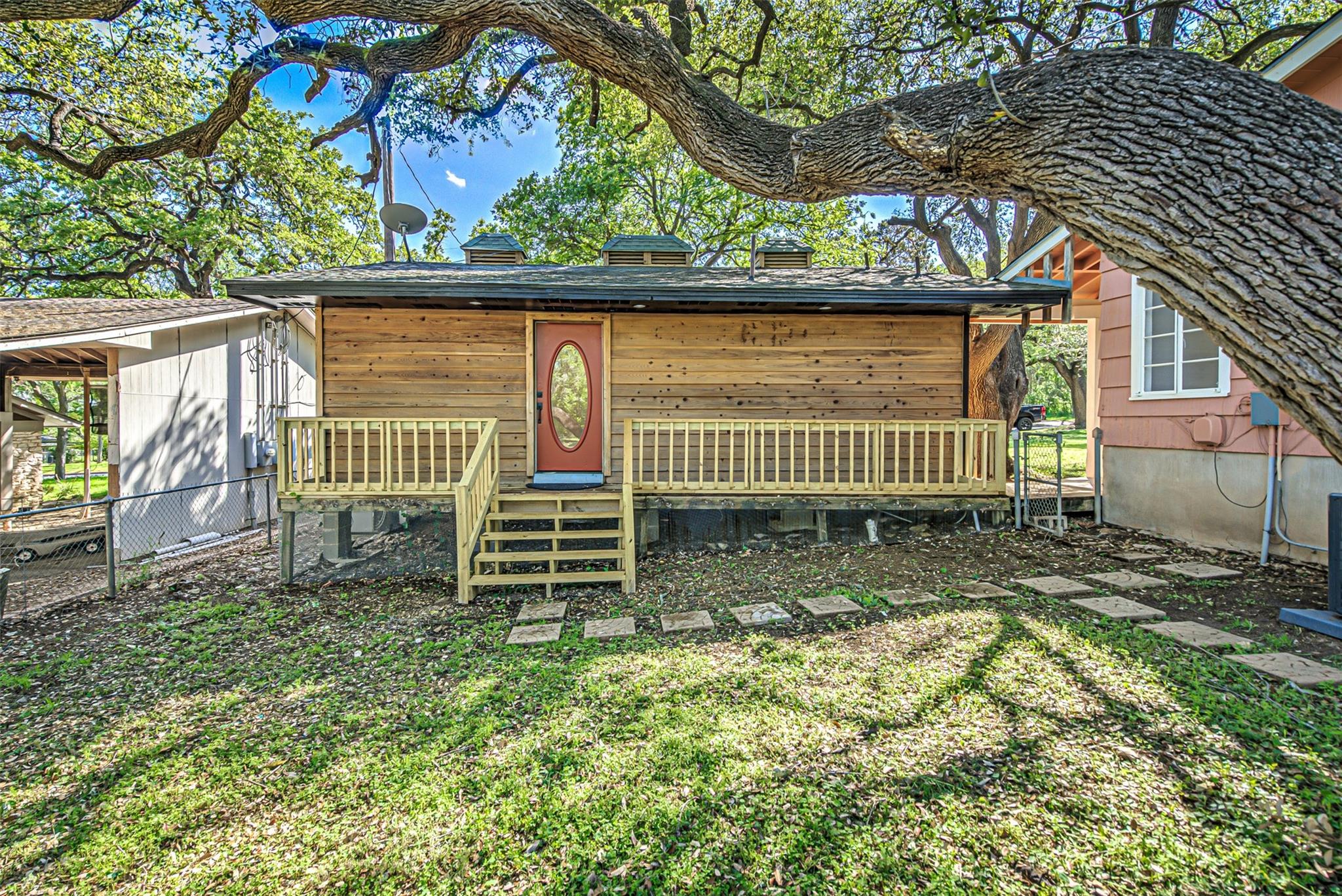 Welcome to 1918 Berkeley Ave - A modernized cabin located in the desirable 78745 zip code, this home is situated in a mature and charming tree-lined neighborhood. Tenants will enjoy a quick 15-minute commute to Downtown or the airport, plus easy access to grocery, restaurants, and other conveniences. Enjoy the community feel of a shared lot, plus the benefits of privacy and great value for a detached home. One acre lot is shared amongst 5 homes - Cabin is the right most home on the property. Inside, an open layout invites you in with a modernized kitchen. The private bedroom is spacious and includes an en suite bathroom + washer and dryer hookup. The back yard includes a fenced space and deck. Welcome home! Additional notes: Additional Flat fee for shared services. Tenant to do all due diligence on square footage and home features. Landscaping virtually edited.