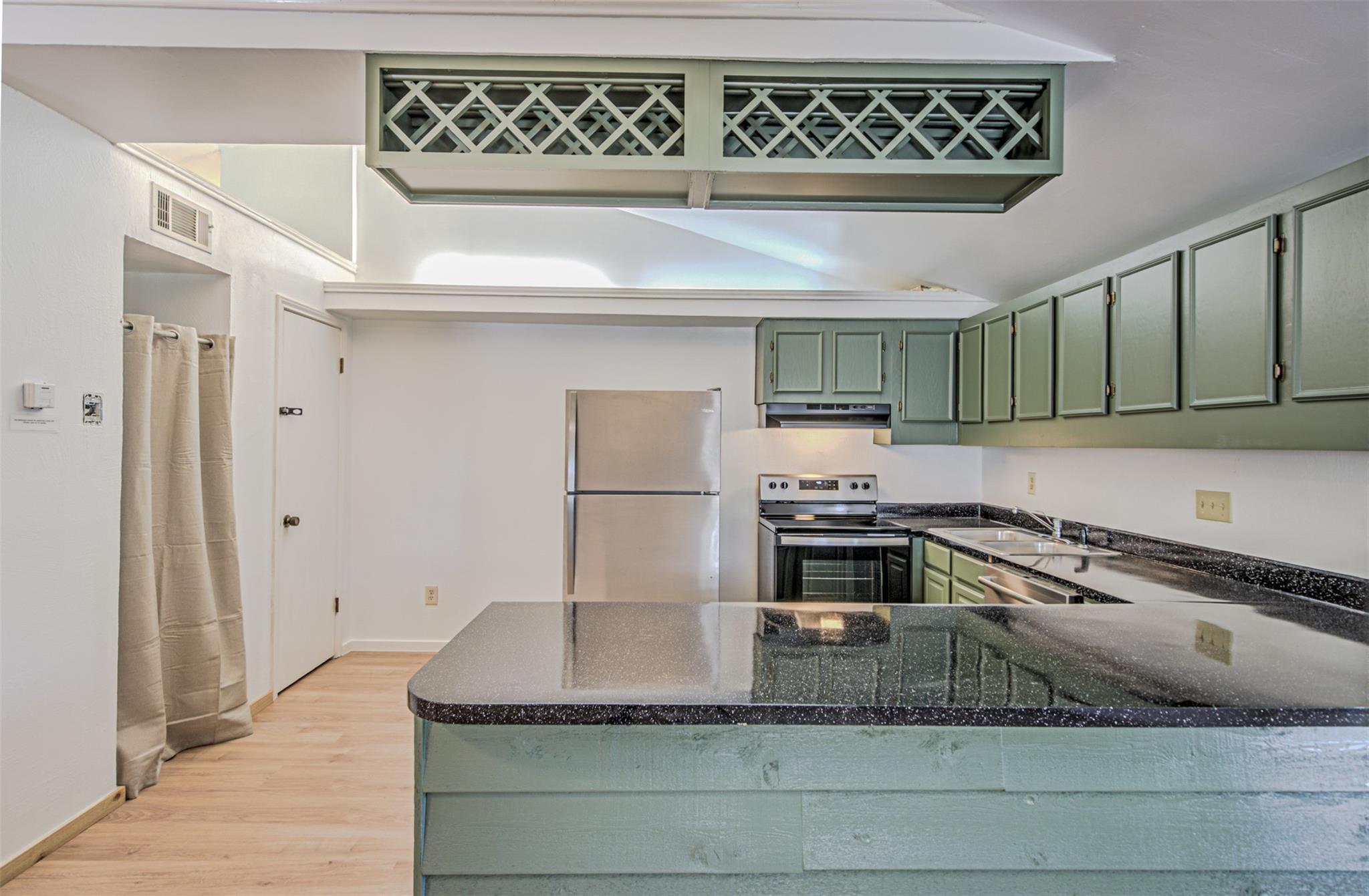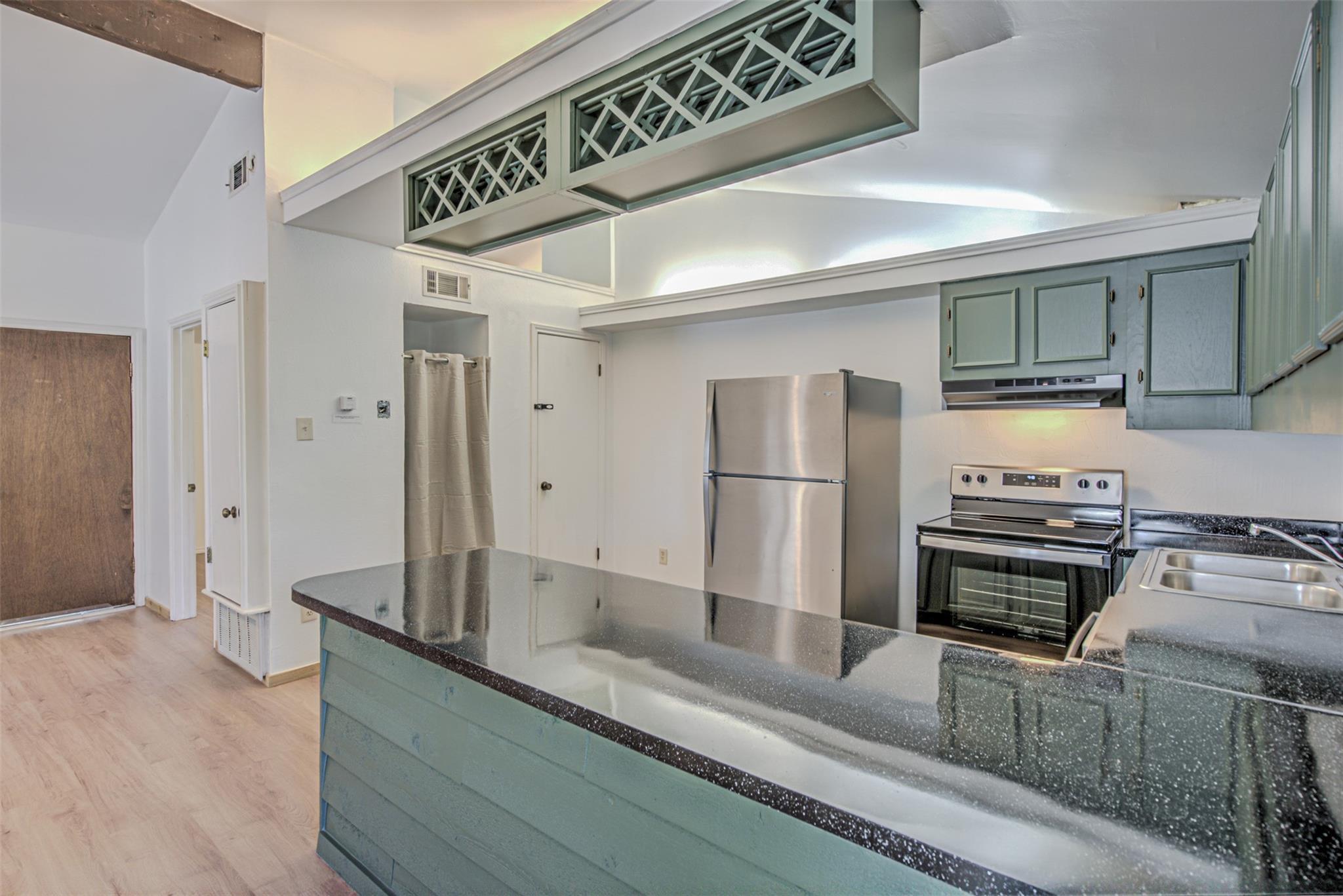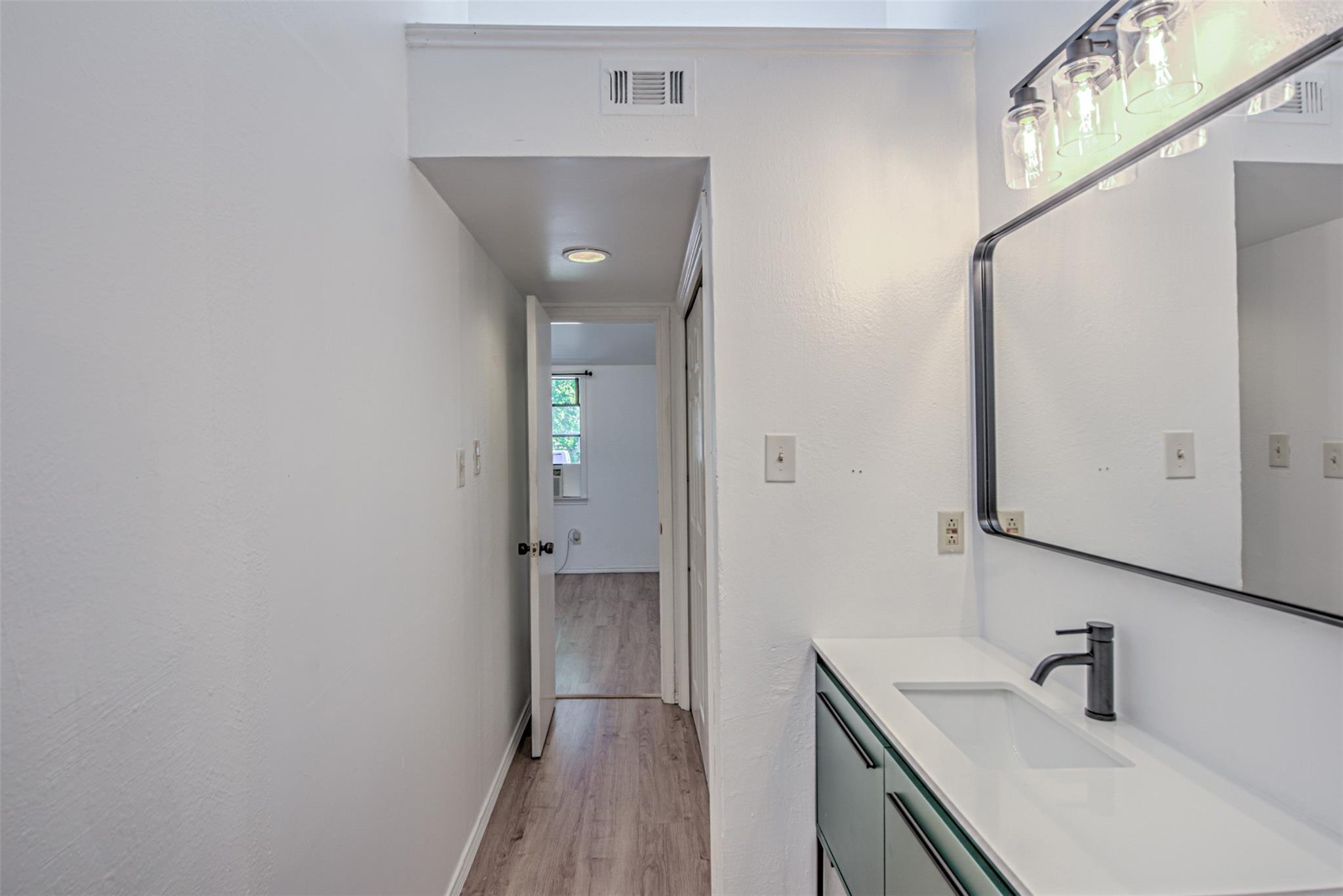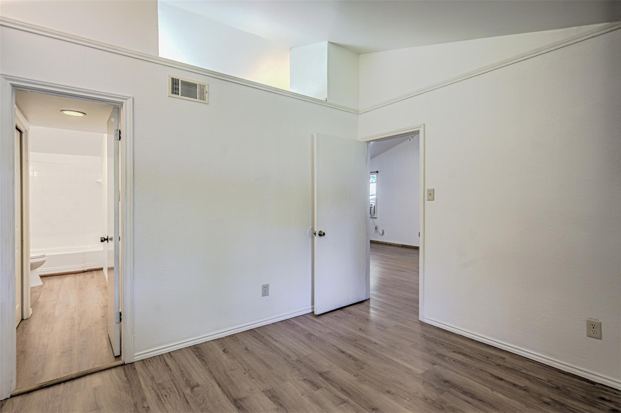 Welcome to 1918 Berkeley Ave - A modernized cabin located in the desirable 78745 zip code, this home is situated in a mature and charming tree-lined neighborhood. Tenants will enjoy a quick 15-minute commute to Downtown or the airport, plus easy access to grocery, restaurants, and other conveniences. Enjoy the community feel of a shared lot, plus the benefits of privacy and great value for a detached home. One acre lot is shared amongst 5 homes - Cabin is the right most home on the property. Inside, an open layout invites you in with a modernized kitchen. The private bedroom is spacious and includes an en suite bathroom + washer and dryer hookup. The back yard includes a fenced space and deck. Welcome home! Additional notes: Additional Flat fee for shared services. Tenant to do all due diligence on square footage and home features. Landscaping virtually edited.
