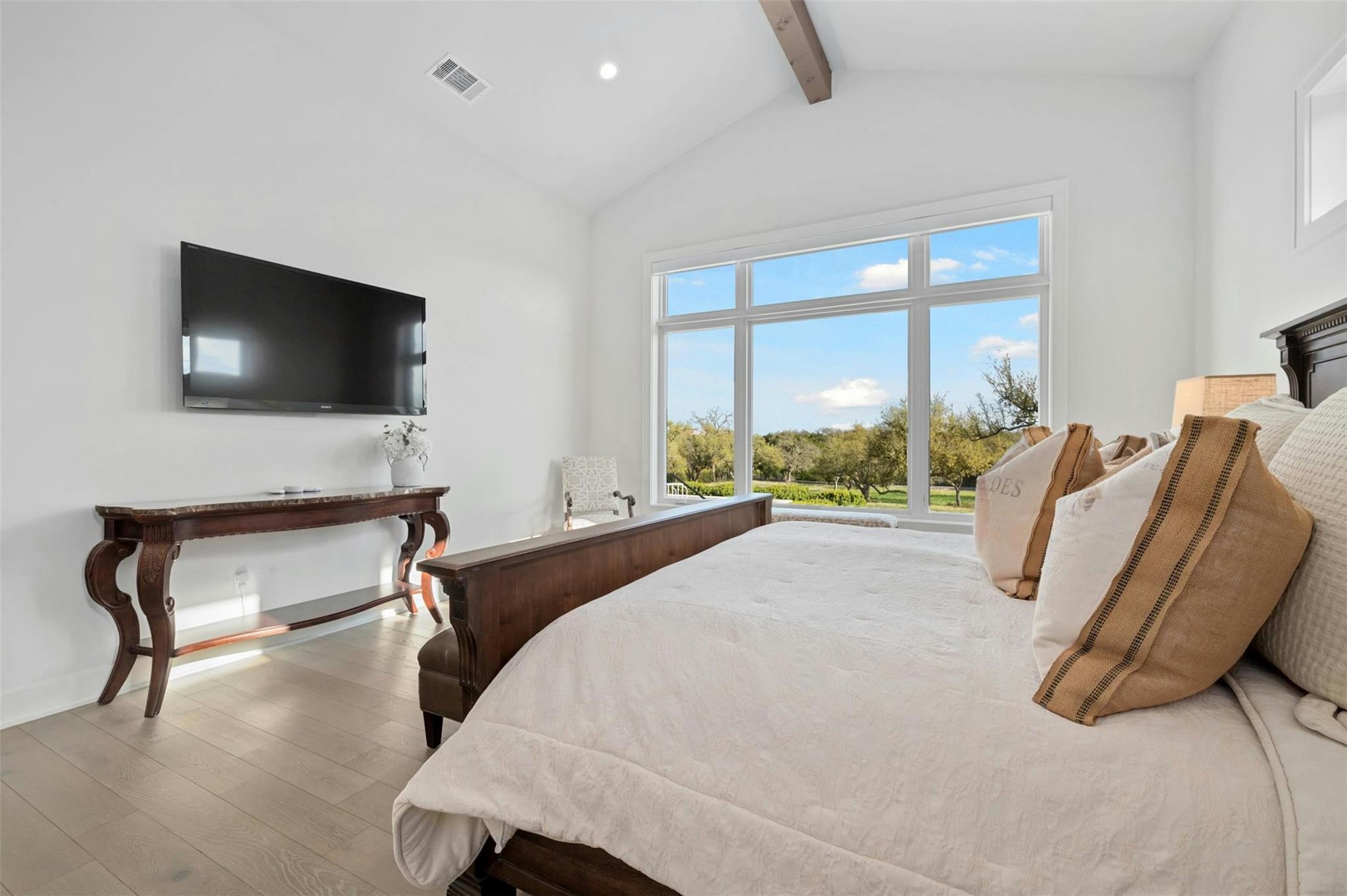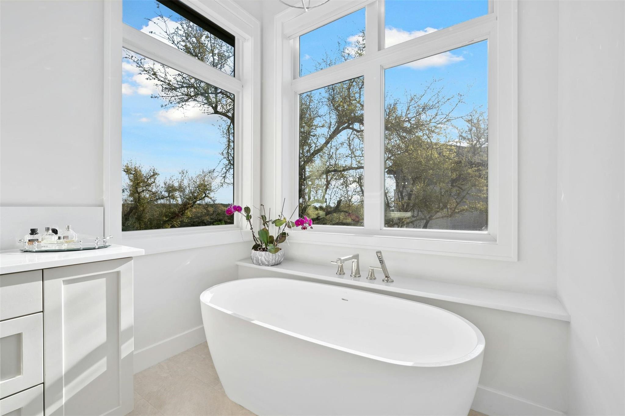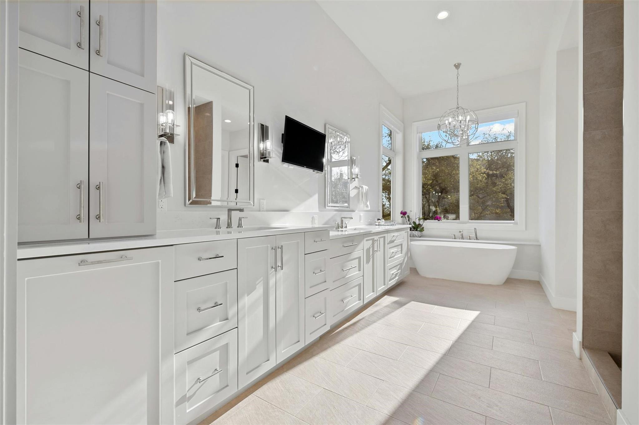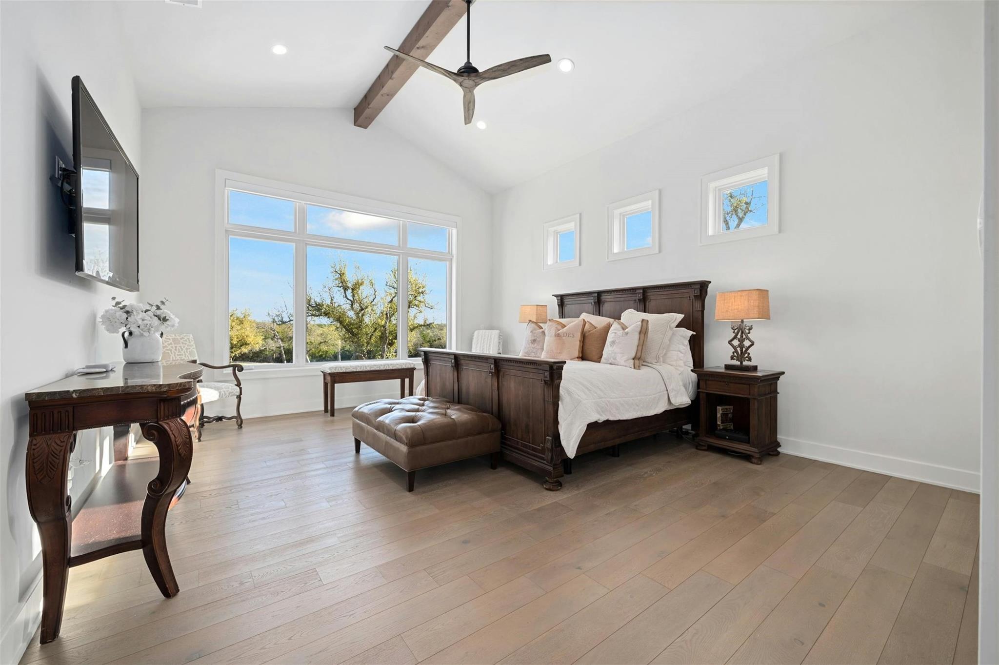 Located in the prestigious gated community of Belvedere, this single story 4-bedroom home has beautiful hill country views and is located on a quiet cul-de-sac. Built by award winning Arbogast homes and designed by Kai Geske, this gated property sits on 2.5 acres with many live oaks. The open concept living area is spacious and bright with large windows that allow for natural light. The high ceilings are complemented with large wood beams. The chef's kitchen includes an oversized island, professional grade Thermador stainless steel appliances, gas cooking and a built in Miele coffee machine. The spacious primary suite offers beautiful views, a spacious walk-in shower, and soaking tub. The outdoor kitchen is perfect for entertaining with a covered patio, outdoor living area, fireplace and pool. The four-car garage includes an airconditioned bay with an interior safe room, full stair access to the attic and automatic lift to load heavy items. Belvedere is an award winning community which includes a lazy river, kids splash pad, community sport court, natural trails, fishing pond and 80 acres of nature preserve. Belvedere is under 20 miles from Downtown Austin and just minutes from Bee Cave, Lakeway, and Dripping Springs