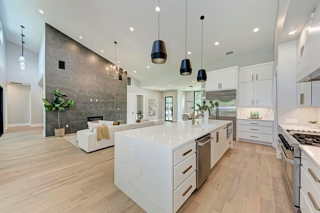 This stunning new construction is a testament to modern design and luxurious living. Spanning an impressive 3012 square feet, this single-family home offers a spacious and comfortable retreat for you and your loved ones. With 4 bedrooms and 4.5 baths, multiple living and dining areas, every family member and guest will find their own haven within this exquisite residence. Our single-story, open-concept floor plan seamlessly blends contemporary aesthetics with practical functionality. The living area is bathed in natural light and boasts 17’ ceilings. The sleek fireplace serves as the focal point, creating an inviting atmosphere for gatherings or quiet evenings at home. The gourmet kitchen is a culinary enthusiast's dream, top-of-the-line stainless steel appliances, ample storage space, and a center island that doubles as a breakfast bar. Quartz countertops and custom cabinetry complete the modern look, while a spacious pantry ensures all your culinary needs are met. The master suite is an oasis of tranquility, offering a serene escape from the hustle and bustle of everyday life. Relax and unwind in the spacious bedroom. The en-suite bathroom is a spa-like retreat, with a soaking tub, separate shower, and dual vanity sinks. A walk-in closet provides ample space for your wardrobe and accessories. The remaining bedrooms are generously sized and thoughtfully designed, each with its own en-suite bath for added convenience and privacy. These rooms offer versatile options for a home office, gym, or guest quarters to suit your unique needs. Outside, the backyard is a private sanctuary, perfect for outdoor entertaining or quiet relaxation. Whether you envision hosting al fresco dinner parties or enjoying a morning coffee on the patio, this space will quickly become your favorite spot. Owner-Agent Please use TAB Contact for offers, located in Documents