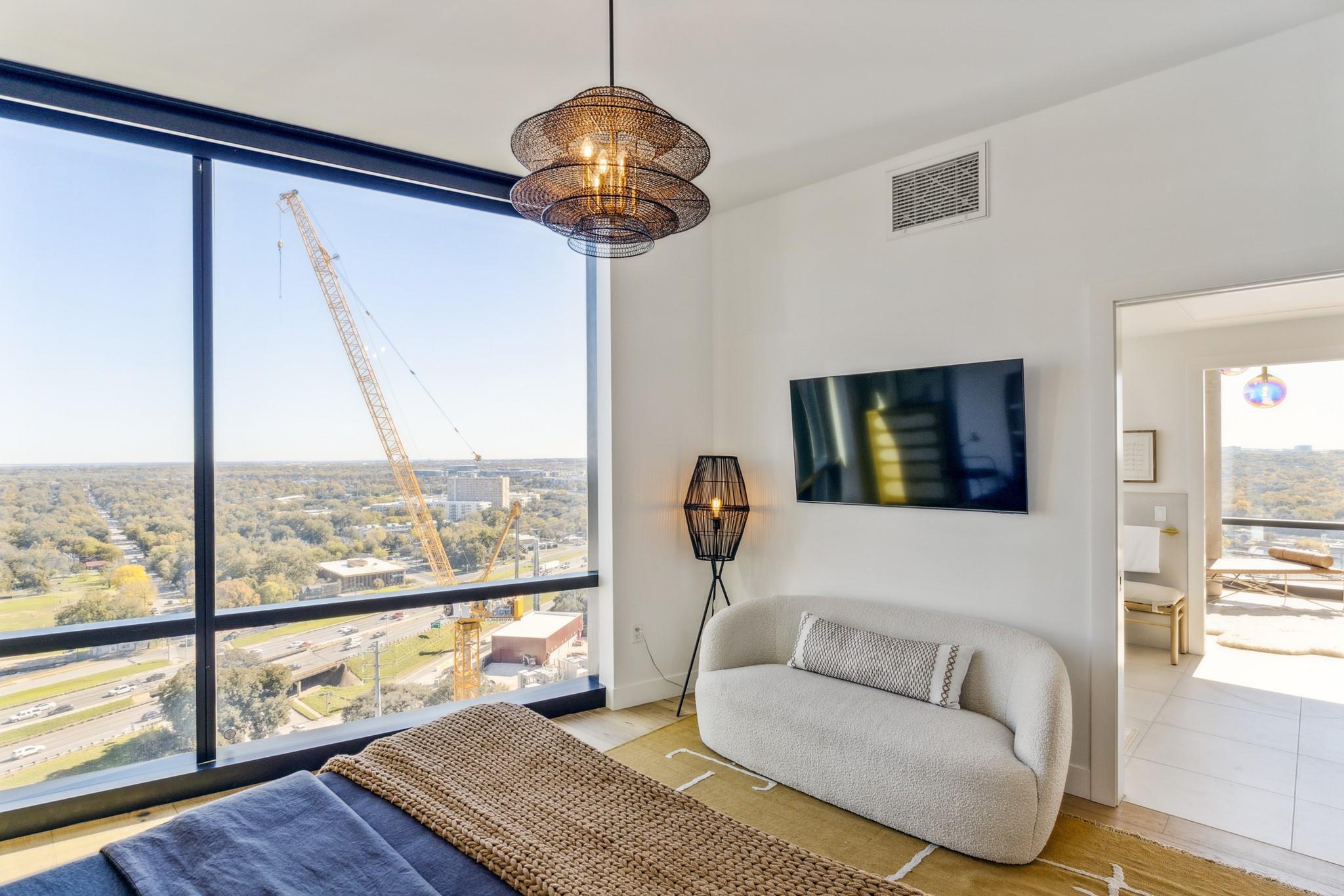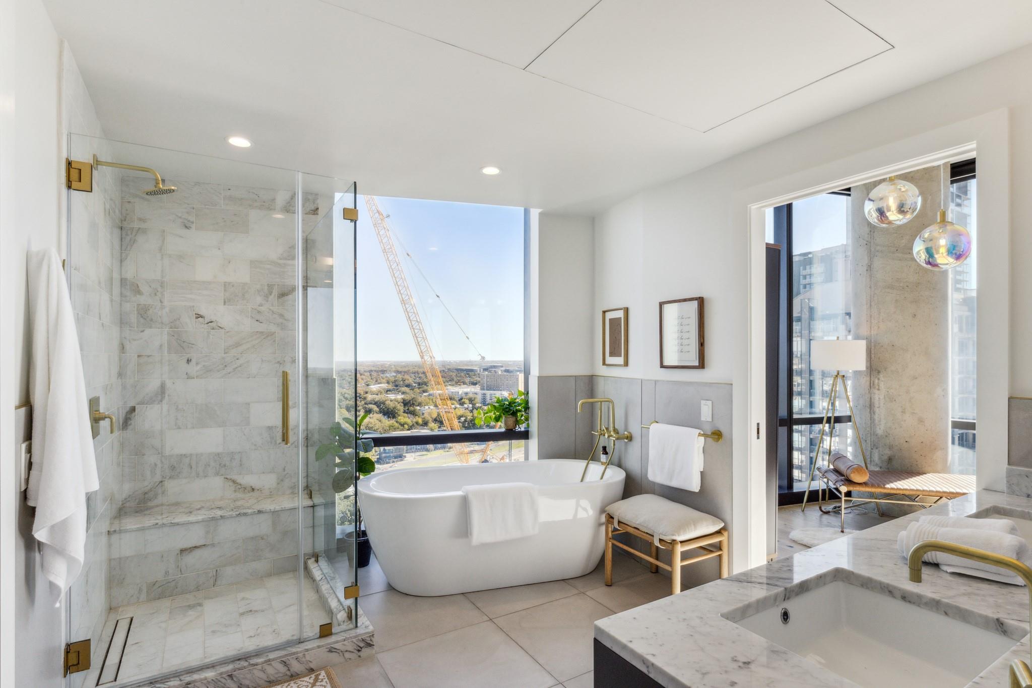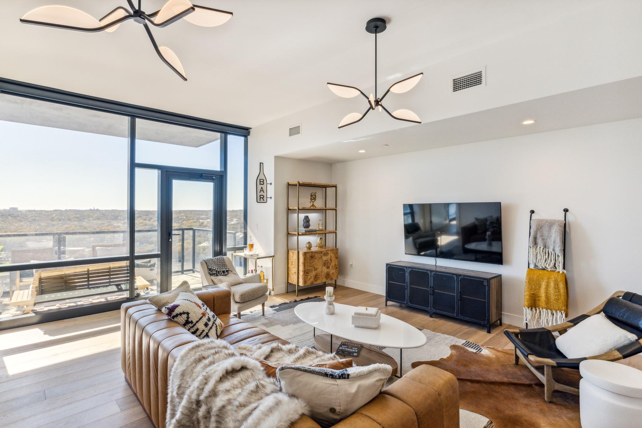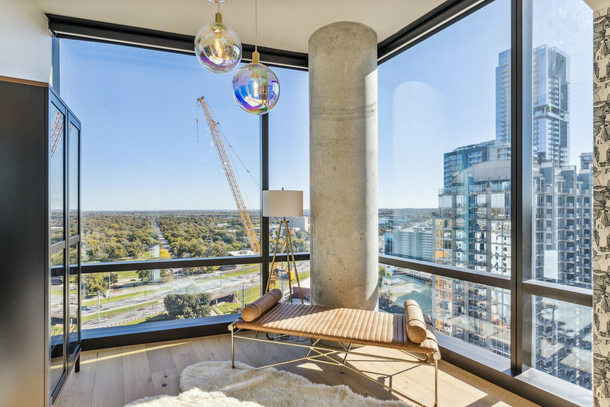 Owner finance available 5.99% for 3-5 years or 2/1 buydown depending on donw payment etc. with full price offer.Experience the epitome of luxury living in this stunning 3-bedroom, 2-bath condo at 70 Rainey (third bedroom could be office with a Murphy bed). Enjoy breathtaking South-facing water views, as well as panoramic vistas of the hill country and downtown skyline. The expansive open-concept living and kitchen area is perfect for entertaining family and friends. Floor-to-ceiling glass windows bathe the unit in natural light, highlighting the exquisite interior finishes. Revel in the elegance of 7.5-inch wide-plank European oak floors, marble bathrooms, custom light fixtures, and top-of-the-line Miele appliances. The condo is tastefully furnished with designer pieces, motorized window shades, custom built-in cabinetry, and bespoke closets. This residence includes two reserved parking spaces and access to over 31,000 square feet of indoor and outdoor resort-style amenities. Enjoy the newly added cold plunge pool, 24-hour concierge service, fitness studio with Peloton bikes, pool, cabanas, and media room. Situated just steps from Lady Bird Lake and the Hike & Bike Trail, 70 Rainey offers a serene environment with unparalleled views of Downtown Austin.