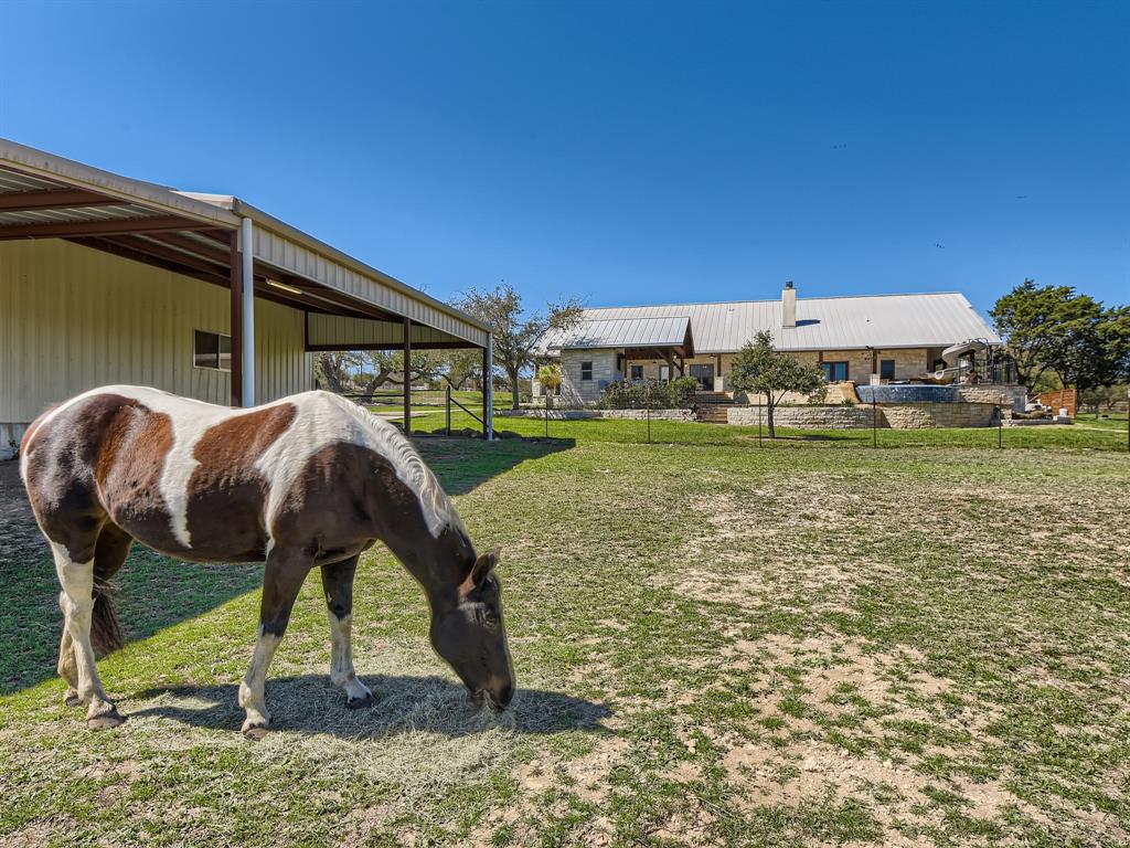 Welcome to a true Texas Gentleman’s Ranch that is a lifestyle property like no other. Enter the 11 acres through a grand, gated, rock entry where you're immediately met by huge oak trees, well-manicured grounds, lush grass and pastures. A paved drive leads you to a nicely appointed custom, Tx Ranch Style home with an inviting, covered, wrap around porch featuring limestone and rough-cut cedar columns. This Ranch Style home features 4 BD/ 3.5 BA, wood flooring, soaring 18 ft beamed ceilings and plenty of natural light with beautiful hill country views from every window. Chefs’ kitchen features double ovens, gas stove and high-end stainless-steel appliances. Dining and living room feature designer chandeliers that perfectly fit the space and highlight the 18 ft ceilings. The centerpiece of the living room is a grand limestone fireplace. Glass doors open to an outdoor entertainers paradise! The expansive outdoor living area is truly one if a kind, featuring a negative edge, resort style pool, (with heating capability), hot tub, and rock waterfall with a deck mounted slide. Relax around the large stone fire pit, custom built outdoor kitchen, bar, tv and flagstone sundeck. Enjoy the breeze while overlooking the Tx hill country views, even an authentic Tx windmill. Property also includes a 4,000 sq ft indoor baseball facility/ sports court! Additionally there is a 2,200 sq ft metal building/ garage space with roll up doors/ windows and passage doors. Property is well suited for horses, including a 1,600 sq ft shelter, stall, riding arena and tack room. There is also a 30K gal rainwater collection, Generac generator, well water storage tanks, irrigation system, and landscape lighting. Only 25 min to Austin, 10 min to Bee Cave, and right in the mix of hill country favorites like wineries, breweries, swimming holes and the Pedernales River. This is a special, unique, “lifestyle†property offering endless possibilities. This is the kind of place you never want to leave…