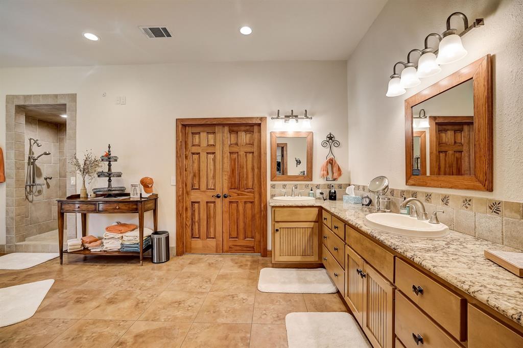 | Interior Features | Ceiling Fan(s), Cathedral Ceiling(s), High Ceilings, Granite Counters, Double Vanity, French Doors, In-Law Floorplan, Kitchen Island, Natural Woodwork, Open Floorplan, Pantry, Primary Bedroom on Main, Recessed Lighting, Smart Home, Smart Thermostat, Soaking Tub, Walk-In Closet(s) | |