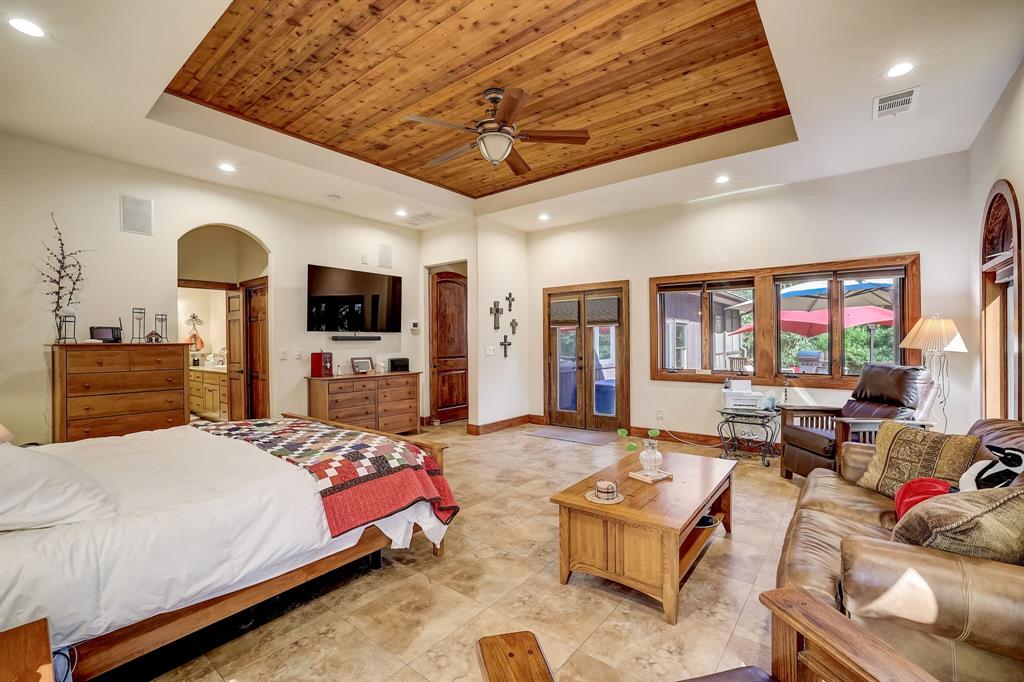 Welcome to your dream home! This stunning property boasts a plethora of modern amenities and stylish upgrades. Enjoy the convenience of a tankless water heater, smart switches that control lighting, thermostat, and fans, ensuring comfort at your fingertips. This custom built house is filled with top-notch features, including Marvin windows, Delongie range in the kitchen, and an NXR on the porch, making everyday living a breeze. You'll love the spacious dual kitchen sinks, granite countertops throughout, and custom cabinets that elevate the elegance of the space. This is a kitchen ready to romance anyone who loves to cook and entertain! Step onto the beautifully tiled floors and gaze up at the soaring stained wood tray ceilings, adding warmth and character to each room. The master suite beckons with its indulgent soaking tub, offering the perfect oasis for relaxation. Rest assured, this home is built to last with its 50-year roof and comes with the bonus of an Ag exemption. The outdoor delights include a picturesque 2-acre pond stocked with bass, perfect for fishing enthusiasts. The irrigation system ensures the lush landscape is well-maintained with ease. Lastly, don't miss the guest quarters and shop, providing versatile spaces for guests or hobbies. Don't let this gem slip away - schedule a viewing today and make this extraordinary property yours!