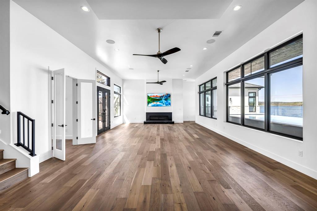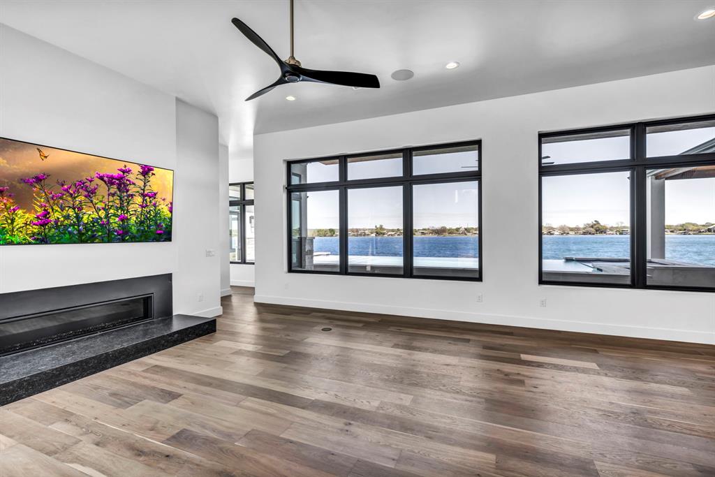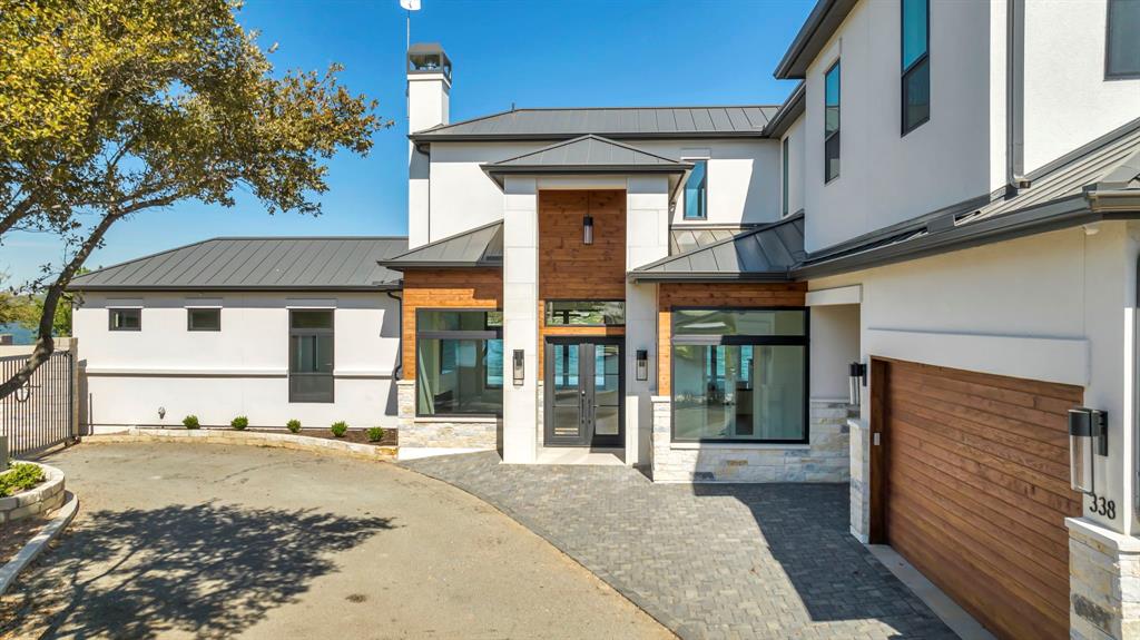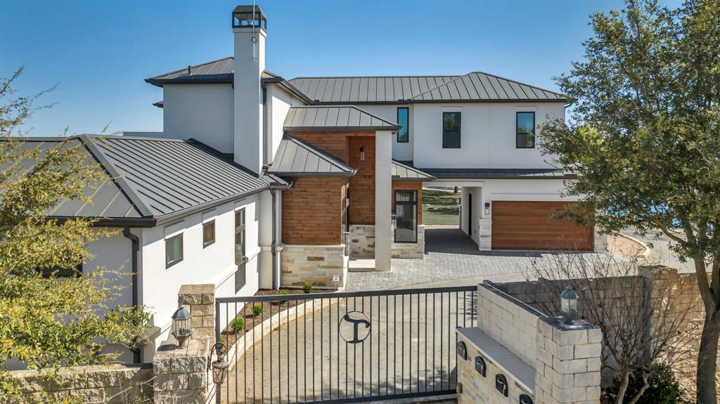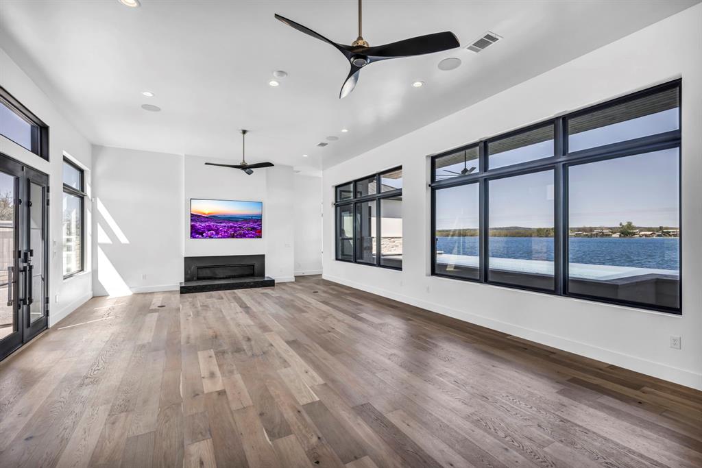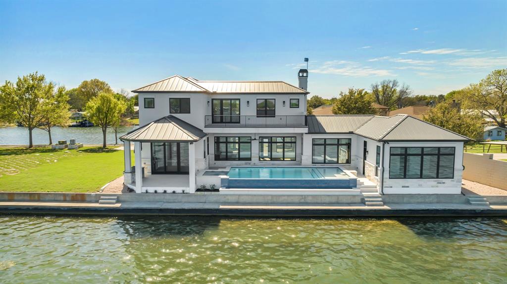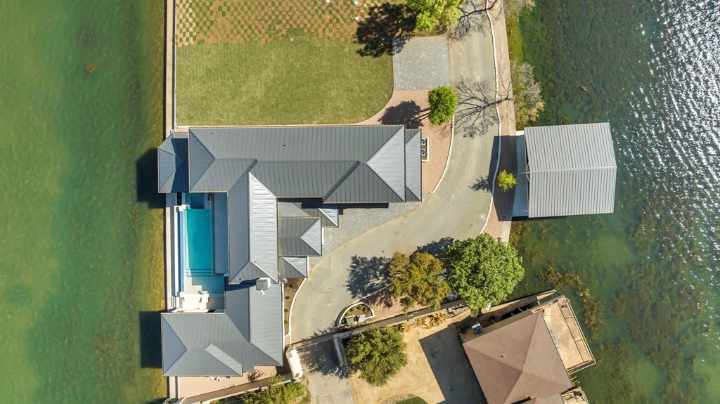 WATERFRONT ON BOTH SIDES! Undeniably one of the most luxurious, over engineered waterfront estates sits on a gated peninsula in Sunrise Beach with impeccable detailing all designed to frame the massive views of Lake LBJ. This Texas contemporary house built in 2023 and construction to stand the test of time, features sleek clean lines with beautiful views of the disappearing edge pool overlooking a stunning180 degrees of lake views. Imagine paddleboarding, fishing, floating on your waterfront cove in the back of the property while in front is the 108.5’ of main lake access. As close to your own island as you can get! The open concept living space features wall to wall windows upon arrival, gourmet kitchen equipped with all high end Thermador appliances which transcends to the outdoor entertaining area having ceiling heaters for the cool winters and built-in Webber grill for those outdoor masterpiece steaks. The heated pool and spa allow for year round use while soaking up the full lake view. Complete with whole house wood flooring, this 5 bedroom and 5.5 bath, lets everyone have ensuite spas for their comfort. Your primary bedroom soaks up views of the lake while your bathroom features 2 water closets, free standing soaking tub and a seamless glass shower that puts any day spa to shame! A separate apartment with mini-kitchen adds to the versatility of this unique estate as well as a dedicated study and 2 living areas. The balcony overlooking Lake LBJ is a sweet spot with luxury living in mind. This home has 3 air conditioners, 2 tankless continuous flow hot water heaters, water softener, surround sound music system, alarm system, energy efficient touches, 2 car epoxy floor garage, and more. Now, let’s talk about the cove side – a covered boat dock comes with electric lift for 1 boat and lifts for 2 personal water crafts along with space for easy dining or relaxed visiting in the shade. The gated estate on this peninsula is truly one of a kind on Lake LBJ.