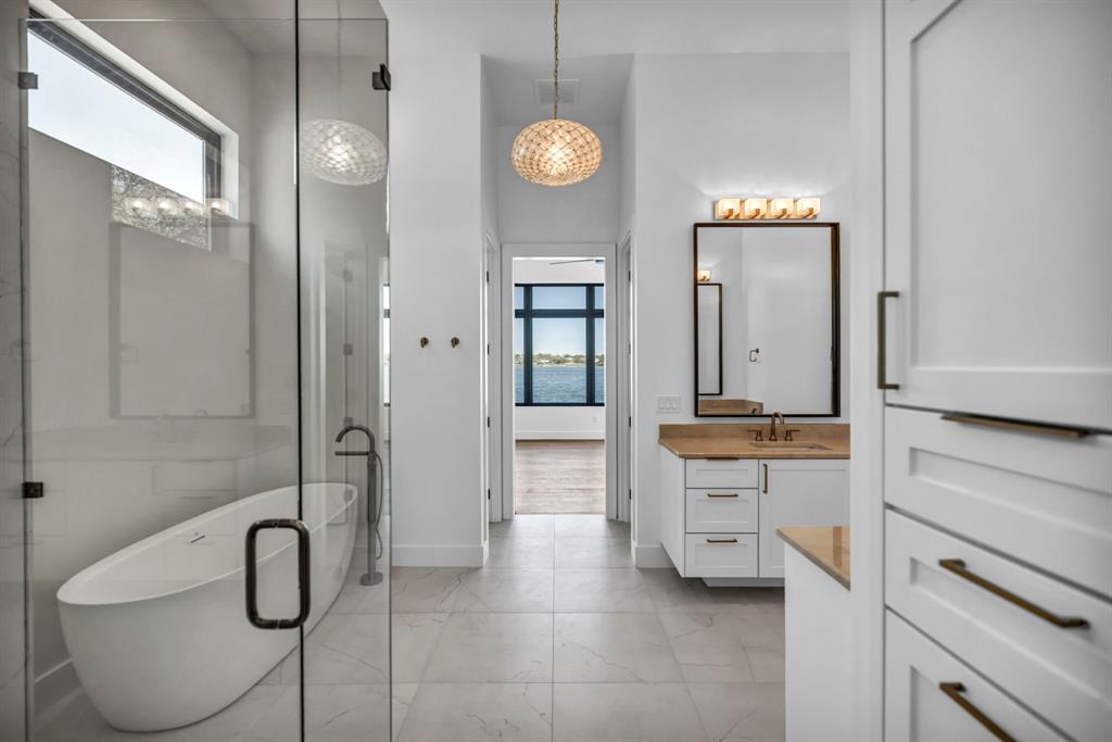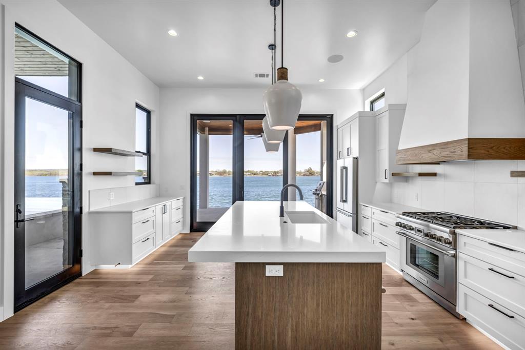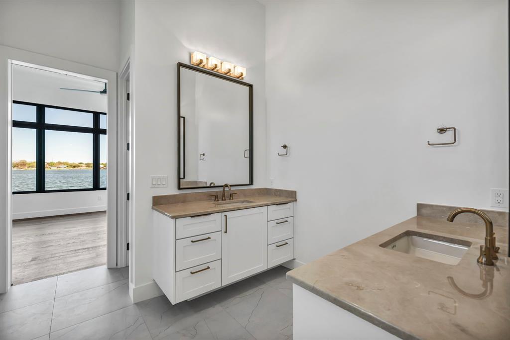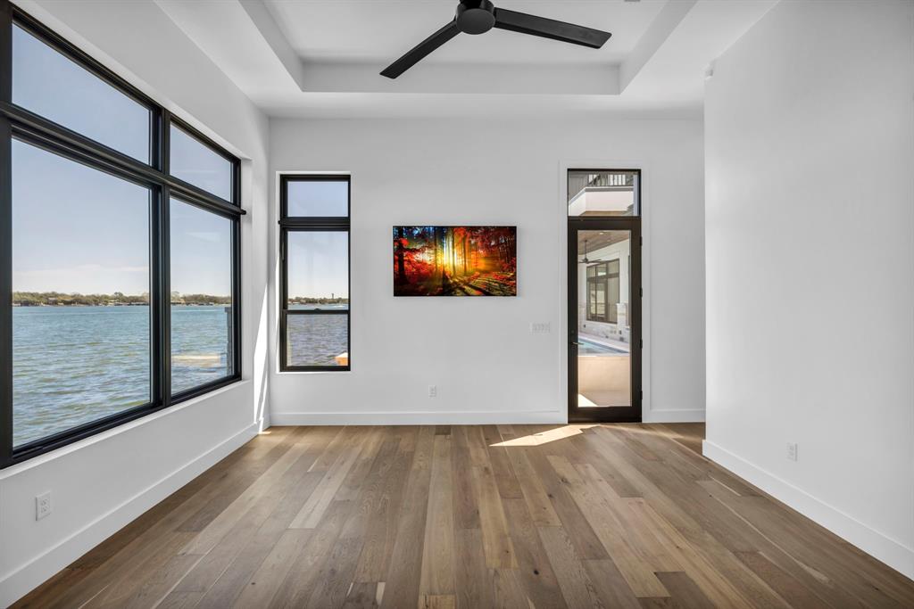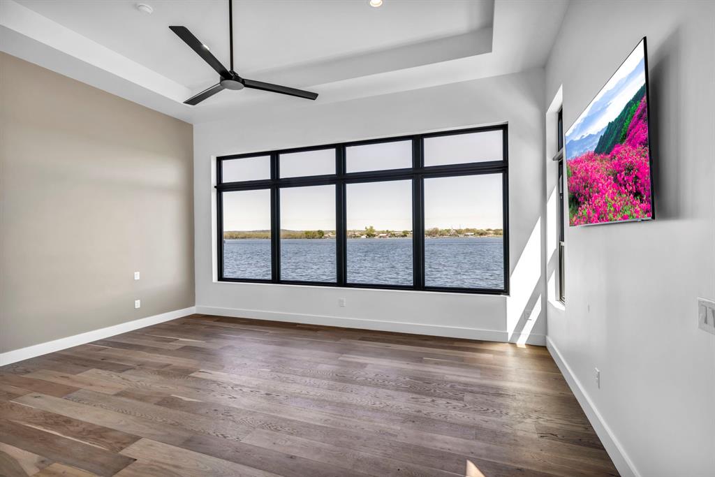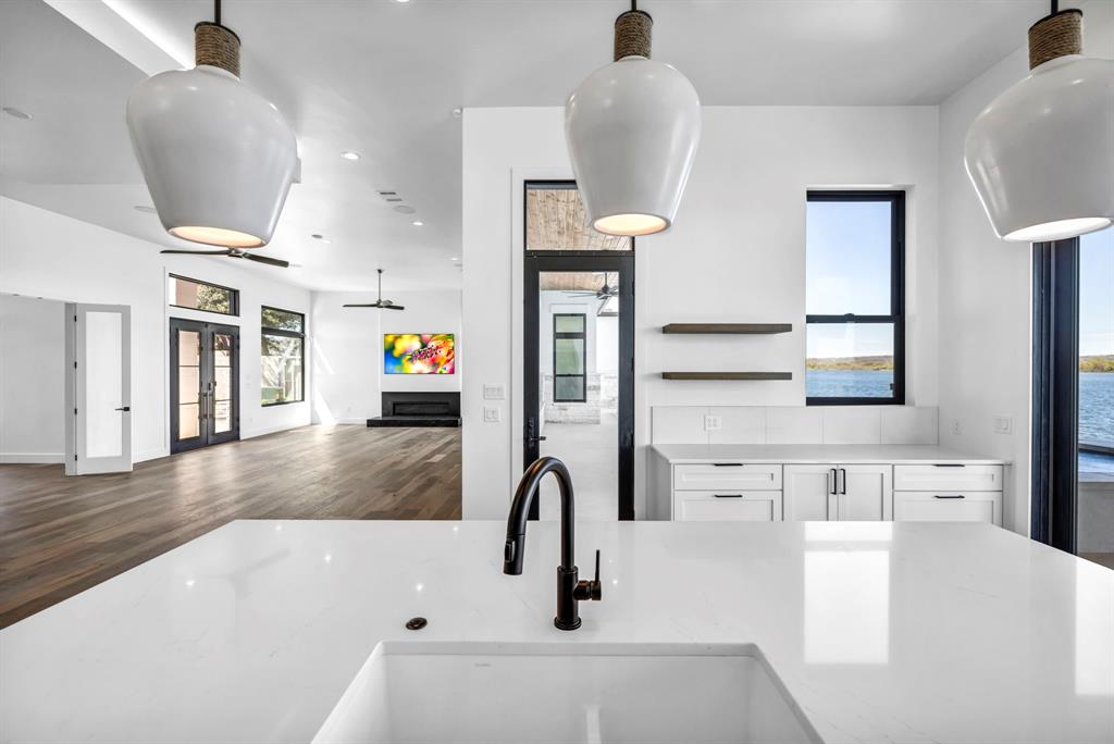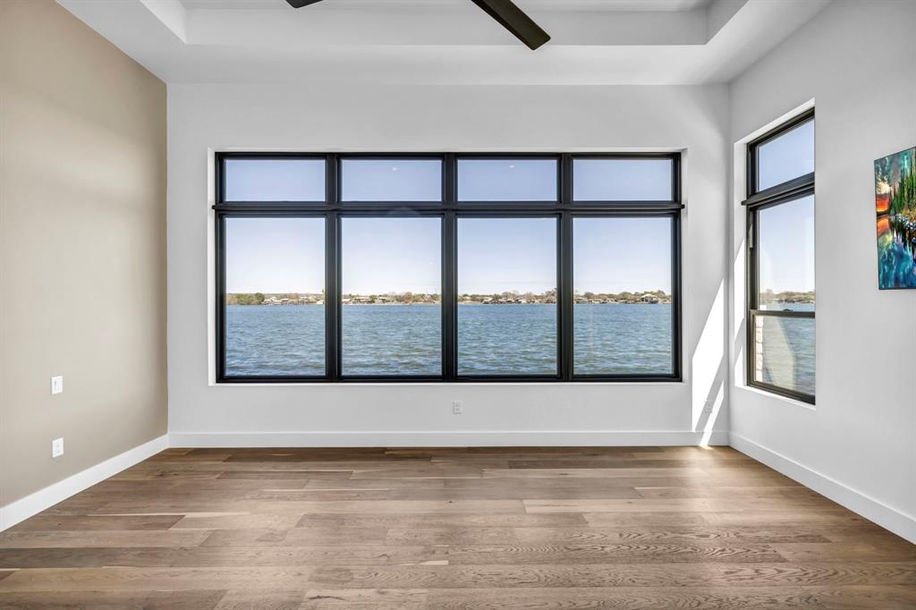 WATERFRONT ON BOTH SIDES! Undeniably one of the most luxurious, over engineered waterfront estates sits on a gated peninsula in Sunrise Beach with impeccable detailing all designed to frame the massive views of Lake LBJ. This Texas contemporary house built in 2023 and construction to stand the test of time, features sleek clean lines with beautiful views of the disappearing edge pool overlooking a stunning180 degrees of lake views. Imagine paddleboarding, fishing, floating on your waterfront cove in the back of the property while in front is the 108.5’ of main lake access. As close to your own island as you can get! The open concept living space features wall to wall windows upon arrival, gourmet kitchen equipped with all high end Thermador appliances which transcends to the outdoor entertaining area having ceiling heaters for the cool winters and built-in Webber grill for those outdoor masterpiece steaks. The heated pool and spa allow for year round use while soaking up the full lake view. Complete with whole house wood flooring, this 5 bedroom and 5.5 bath, lets everyone have ensuite spas for their comfort. Your primary bedroom soaks up views of the lake while your bathroom features 2 water closets, free standing soaking tub and a seamless glass shower that puts any day spa to shame! A separate apartment with mini-kitchen adds to the versatility of this unique estate as well as a dedicated study and 2 living areas. The balcony overlooking Lake LBJ is a sweet spot with luxury living in mind. This home has 3 air conditioners, 2 tankless continuous flow hot water heaters, water softener, surround sound music system, alarm system, energy efficient touches, 2 car epoxy floor garage, and more. Now, let’s talk about the cove side – a covered boat dock comes with electric lift for 1 boat and lifts for 2 personal water crafts along with space for easy dining or relaxed visiting in the shade. The gated estate on this peninsula is truly one of a kind on Lake LBJ.