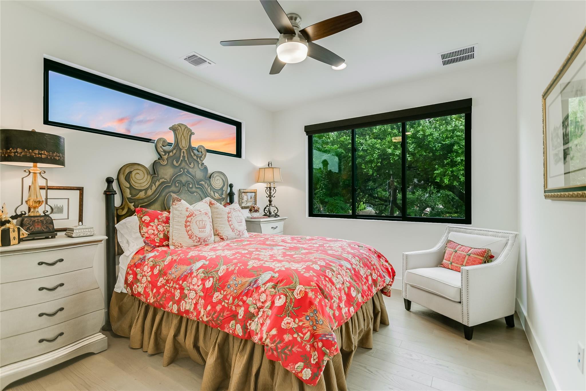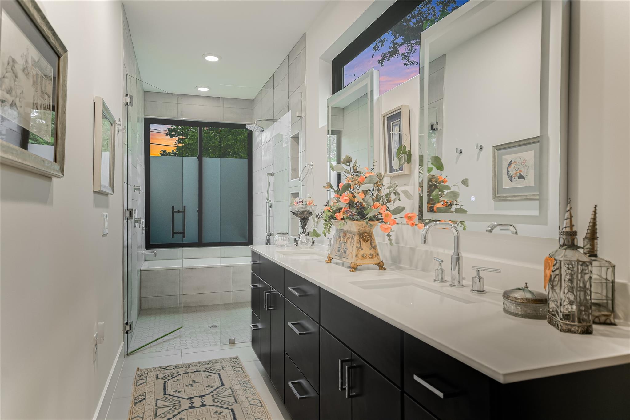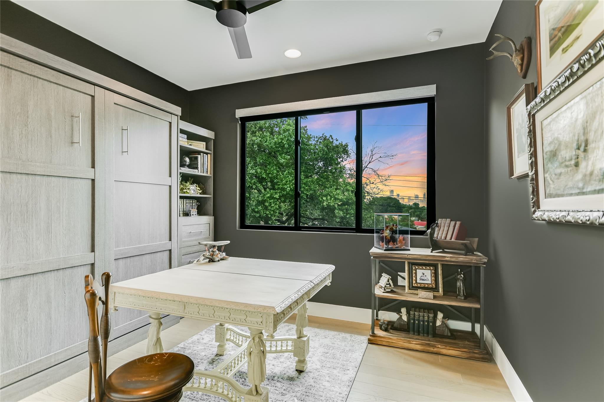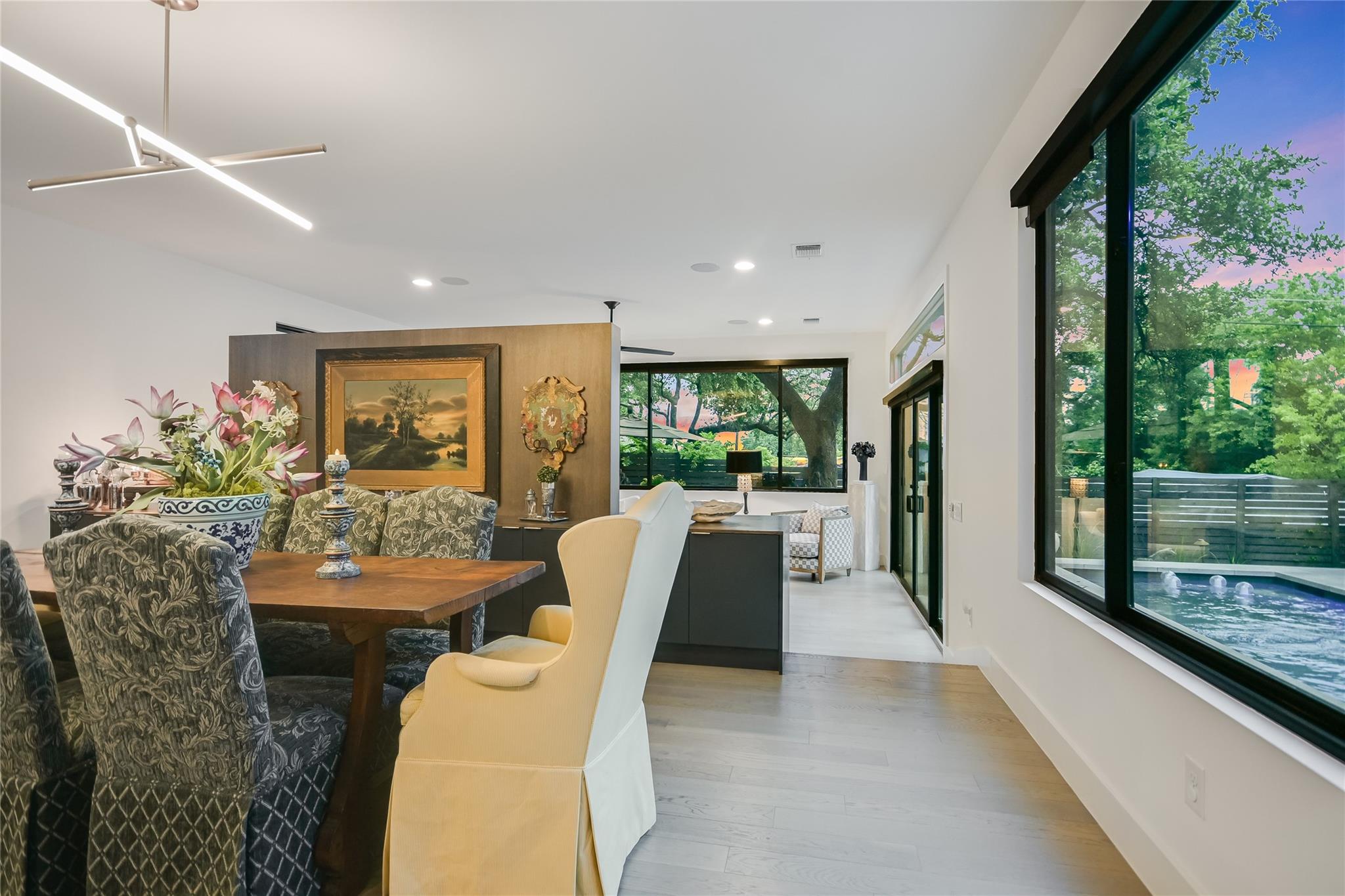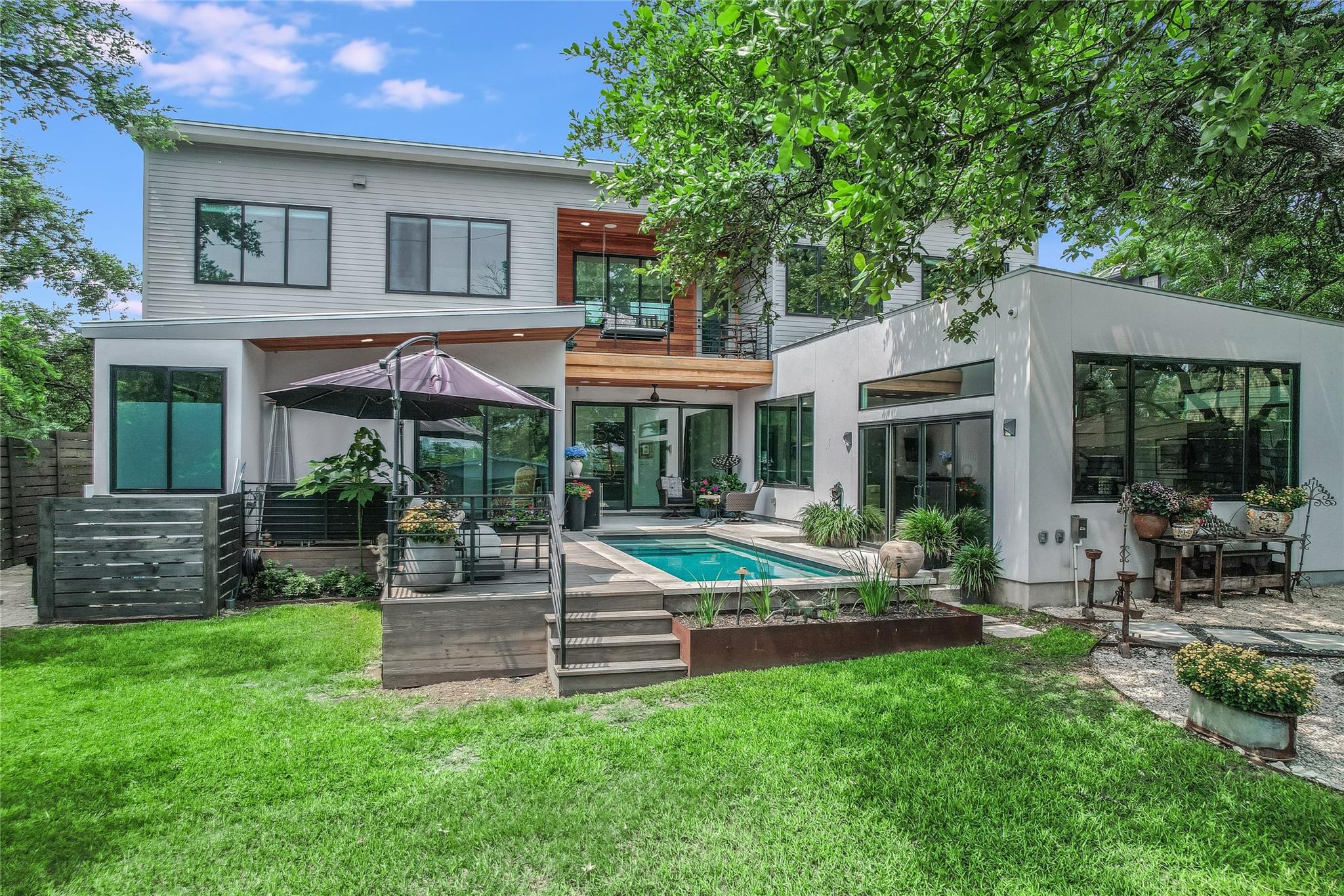 This stunning modern home in the 78704 zip code offers a perfect blend of luxury and functionality. Meticulously designed to enhance indoor and outdoor living, it features a beautiful pool, covered patio with extended outdoor living area and fire pit and a fully equipped outdoor kitchen, ideal for entertaining and relaxation. Fully fenced and private with wow City of Austin Views. Inside, the home boasts 4 spacious bedrooms and 3.5 elegantly appointed bathrooms. The main bedroom has a beautiful patio that overlooks the pool, and one of the bedrooms features a Murphy bed, adding flexibility to the living space. The chef's kitchen is complete with high-end appliances, custom cabinetry, and a large island that serves as a focal point for gatherings. The sunken living room provides a cozy yet sophisticated space, while an additional living area upstairs offers versatile space for a media room, playroom, or second lounge. The home also includes a mudroom for added convenience. The side-entry 2-car garage is convenient and features custom storage solutions to keep everything organized. One of the most remarkable aspects of this home is the breathtaking views of downtown Austin, visible from every room. Whether enjoying a morning coffee on the balcony or hosting a dinner party, the city skyline provides a stunning backdrop that enhances the home's appeal. Experience the perfect combination of modern elegance and practical design in this exceptional 78704 residence.