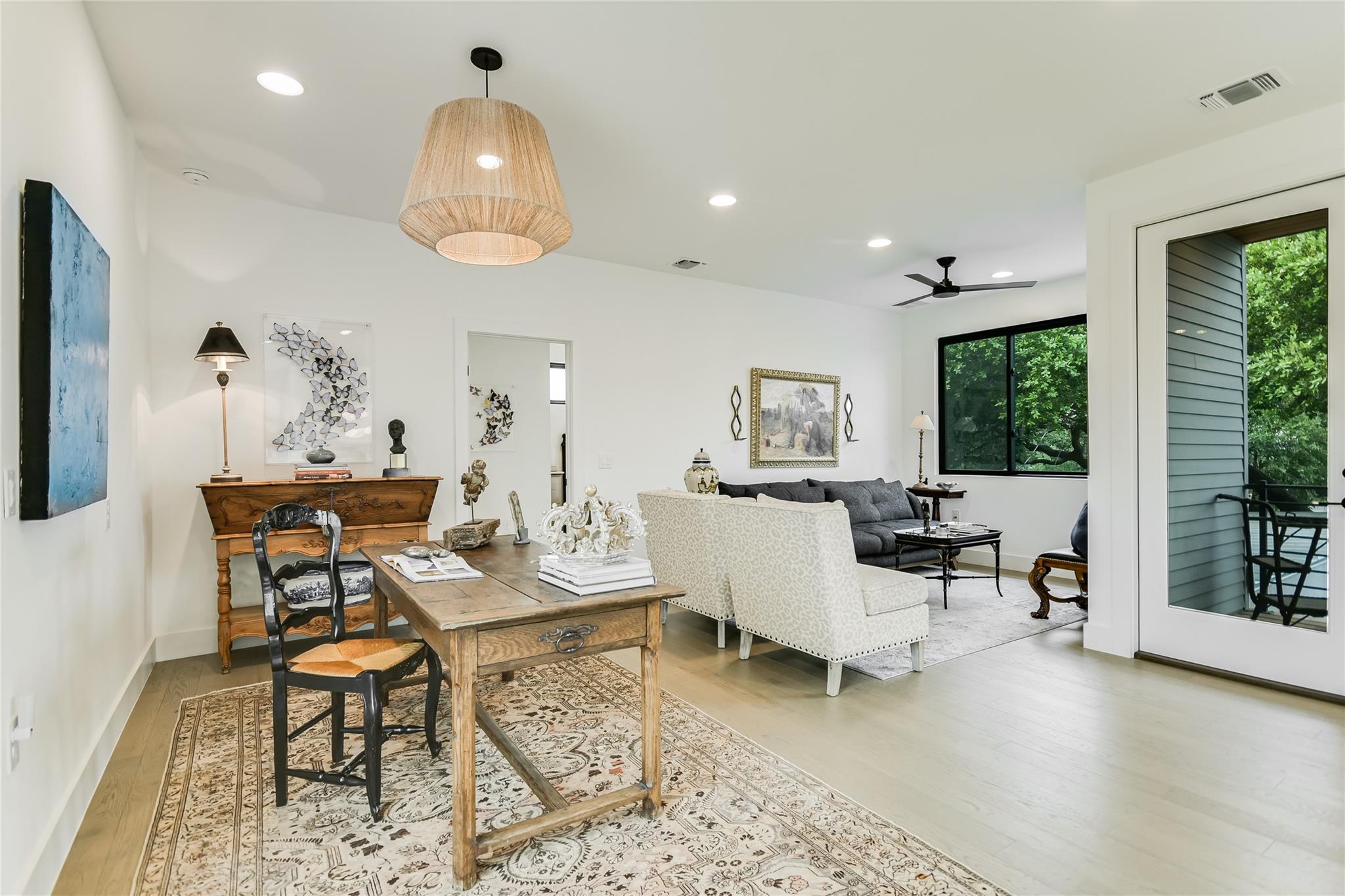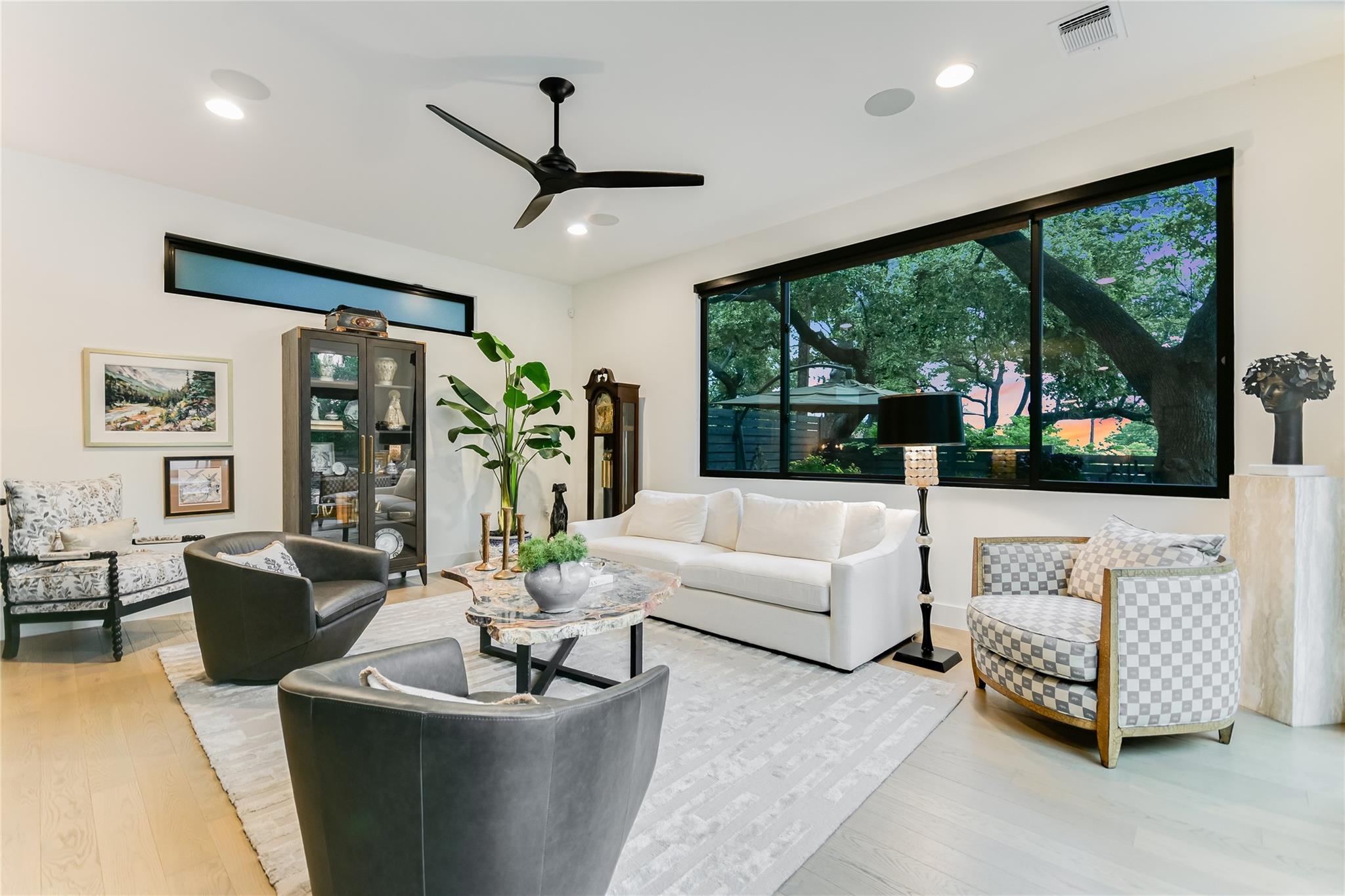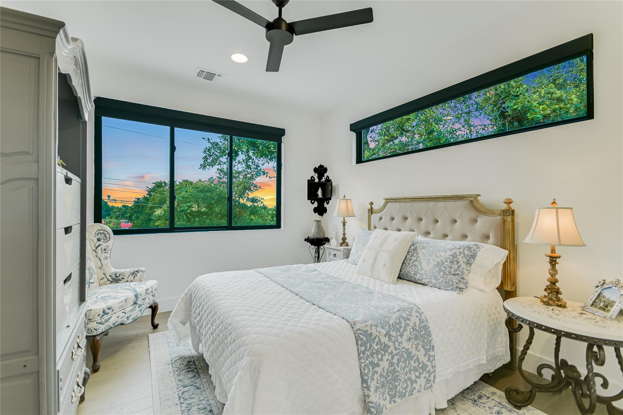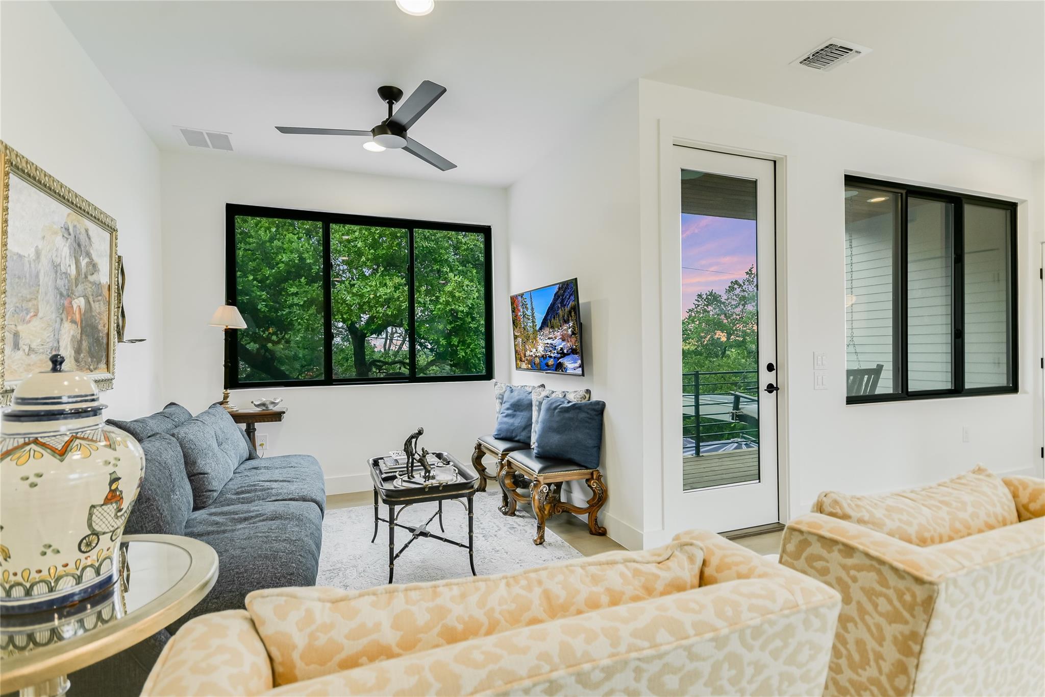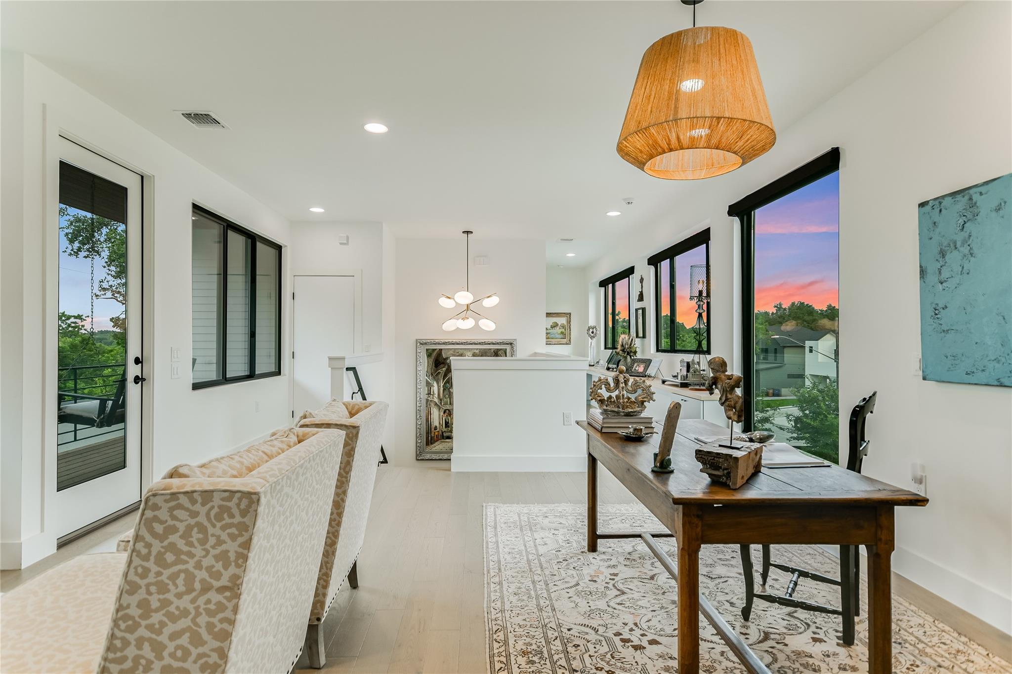 This stunning modern home in the 78704 zip code offers a perfect blend of luxury and functionality. Meticulously designed to enhance indoor and outdoor living, it features a beautiful pool, covered patio with extended outdoor living area and fire pit and a fully equipped outdoor kitchen, ideal for entertaining and relaxation. Fully fenced and private with wow City of Austin Views. Inside, the home boasts 4 spacious bedrooms and 3.5 elegantly appointed bathrooms. The main bedroom has a beautiful patio that overlooks the pool, and one of the bedrooms features a Murphy bed, adding flexibility to the living space. The chef's kitchen is complete with high-end appliances, custom cabinetry, and a large island that serves as a focal point for gatherings. The sunken living room provides a cozy yet sophisticated space, while an additional living area upstairs offers versatile space for a media room, playroom, or second lounge. The home also includes a mudroom for added convenience. The side-entry 2-car garage is convenient and features custom storage solutions to keep everything organized. One of the most remarkable aspects of this home is the breathtaking views of downtown Austin, visible from every room. Whether enjoying a morning coffee on the balcony or hosting a dinner party, the city skyline provides a stunning backdrop that enhances the home's appeal. Experience the perfect combination of modern elegance and practical design in this exceptional 78704 residence.