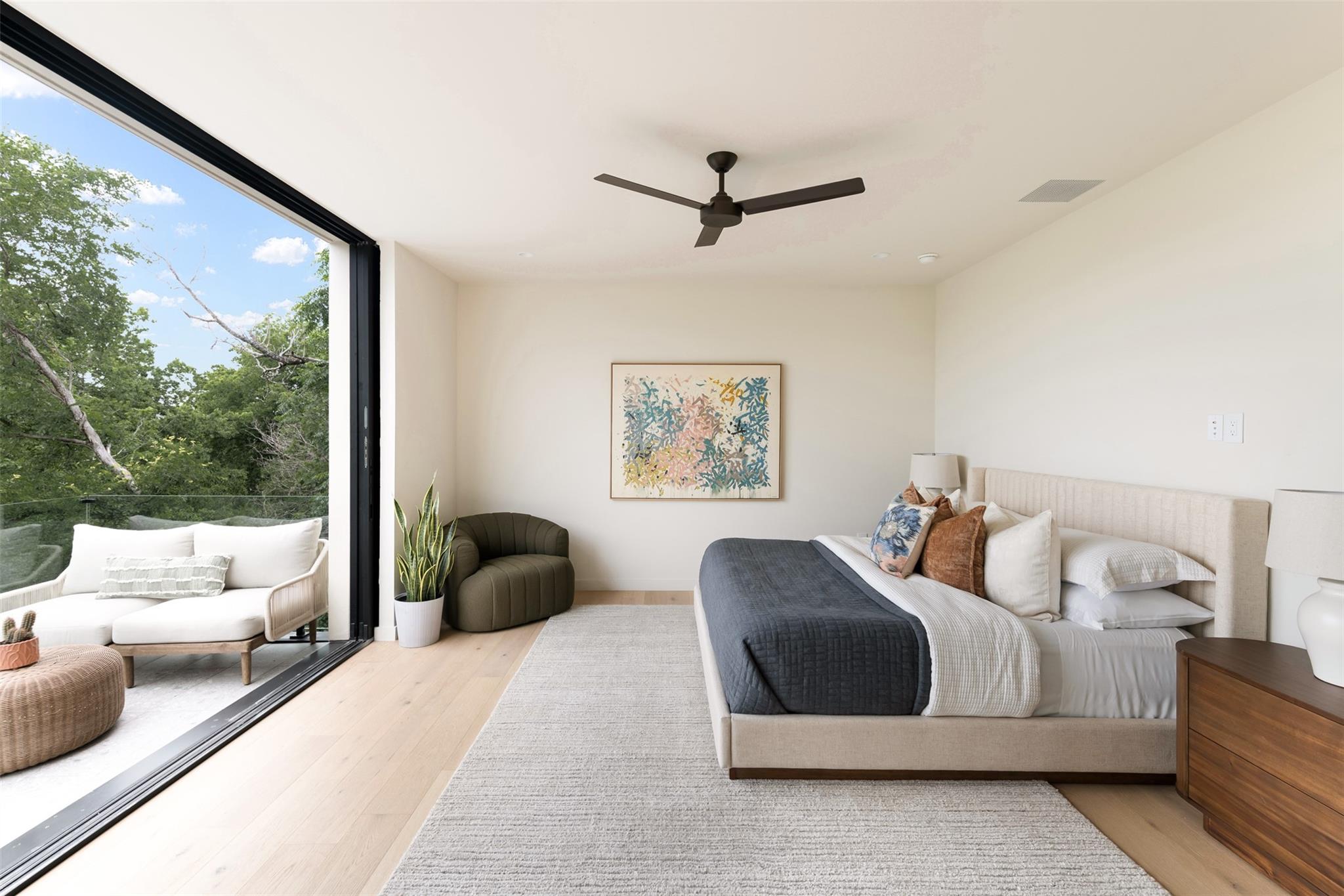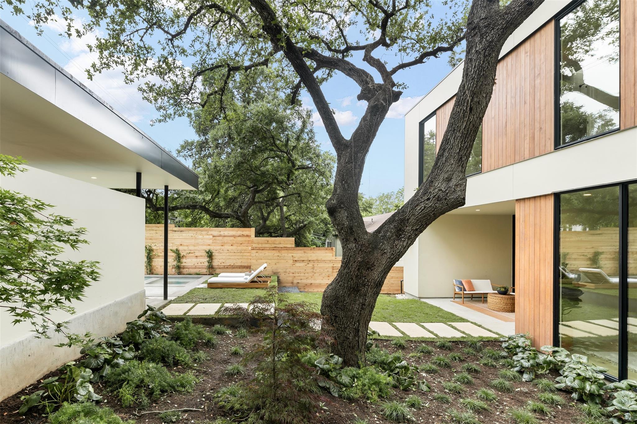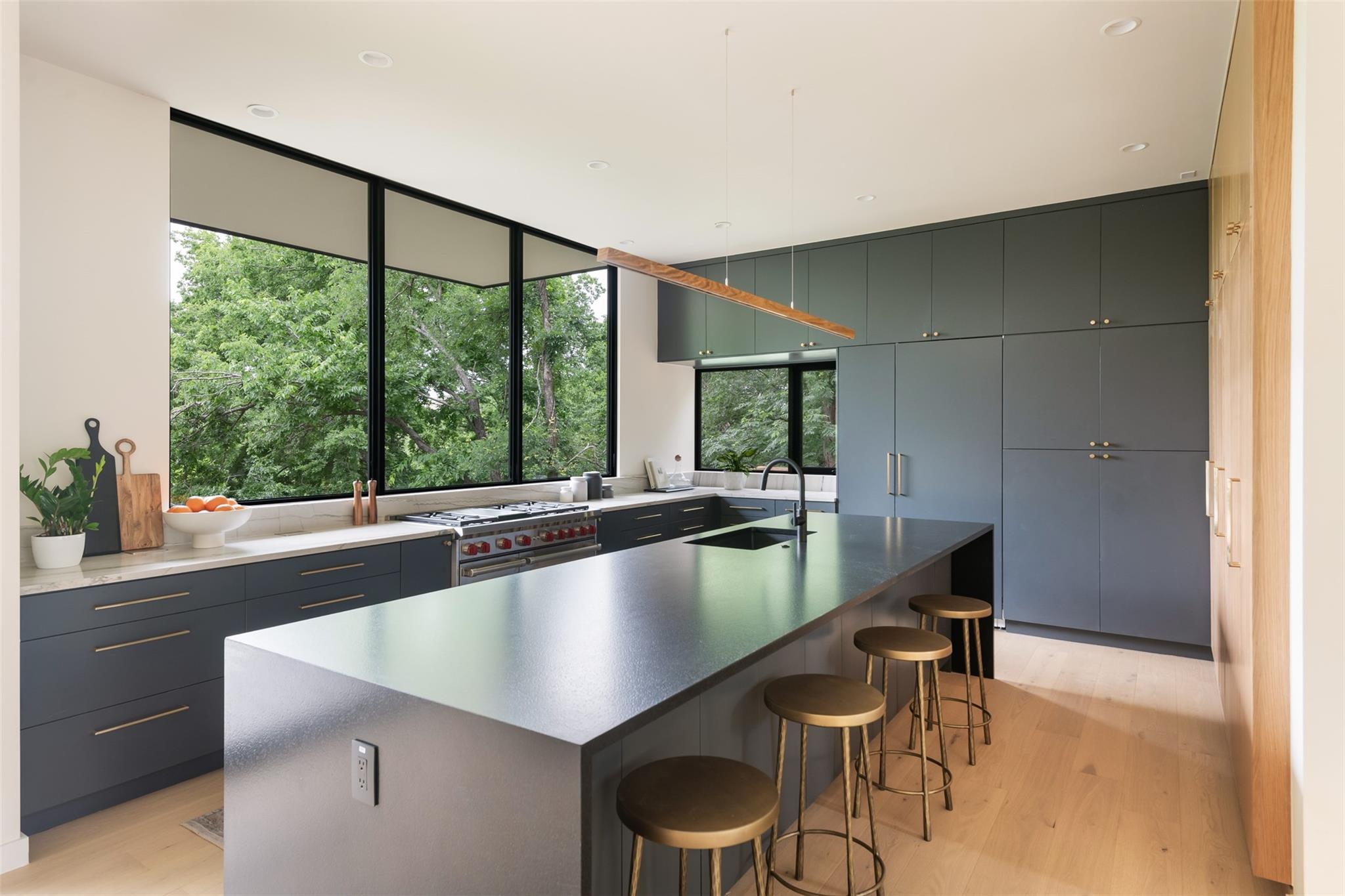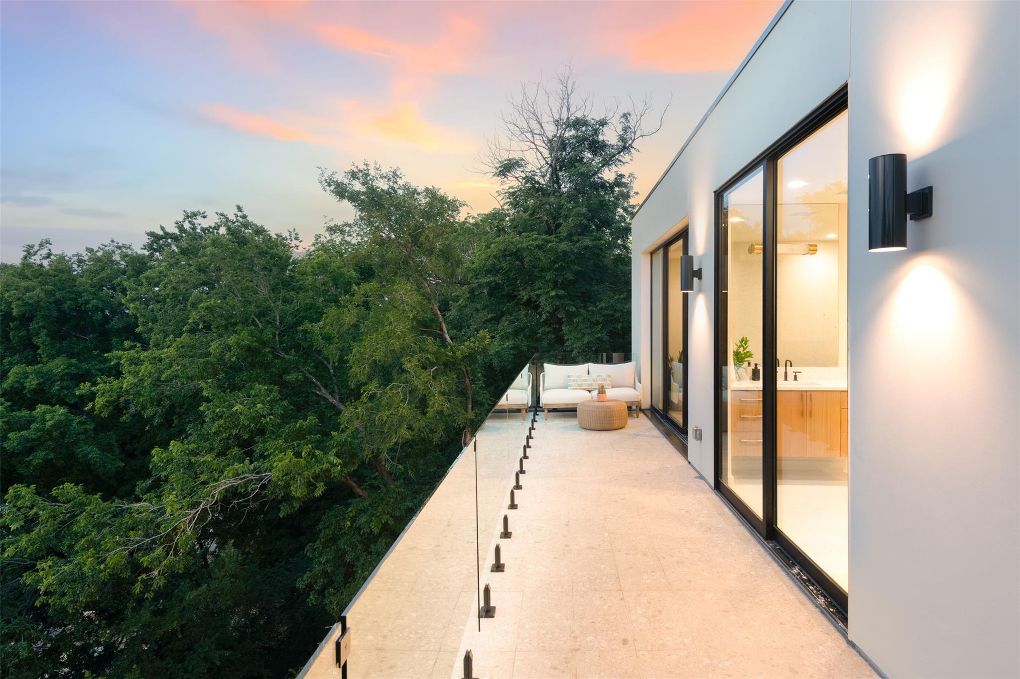 Welcome to the The Canopy Residence of Bouldin. Refined. Intentional. Captivating. If you are looking for something special in 78704 with finishes found in high-end custom homes, this is it! Located in the extremely walkable Bouldin Creek neighborhood. This stunning 4-bedroom, 4.5-bathroom house at 3621 square feet is designed to bring nature in. The home features multiple floors of 10' tall Western sliders and windows that open up to multiple, massive balconies overlooking tree canopies. Complete with a swanky, front courtyard featuring a pool, hot tub and seating areas. Open-concept kitchen/living/dining space, features custom cabinetry and an oversized island with waterfall countertops. It is properly equipped with a Wolf gas range, cabinet-cladded Sub Zero refrigeration, The expansive living and dining have windows on two sides offering optimal natural light. Upstairs, has the majority of your bedrooms including the back half of the floor is all dedicated to the Primary bedroom suite offering a massive master bath with a freestanding tub with a separate walk-in shower. Turn the corner and walk into the Well equipped massive master closet. The front side of the second story has two gracious front bedrooms that include their own private ensuite bathrooms. Each have beautiful views of the front courtyard and stunning live oaks. From the first floor walk down to the catacomb nestled into the hillside featuring 10’ ceilings where your media/game room is located with a full bath and your fourth bedroom with access to the lower terrace. With its refined design elements and intentional spaces, the Canopy Residence of Bouldin is sure to be one of the most captivating homes you've seen in 78704. Architect: Narrative Architecture