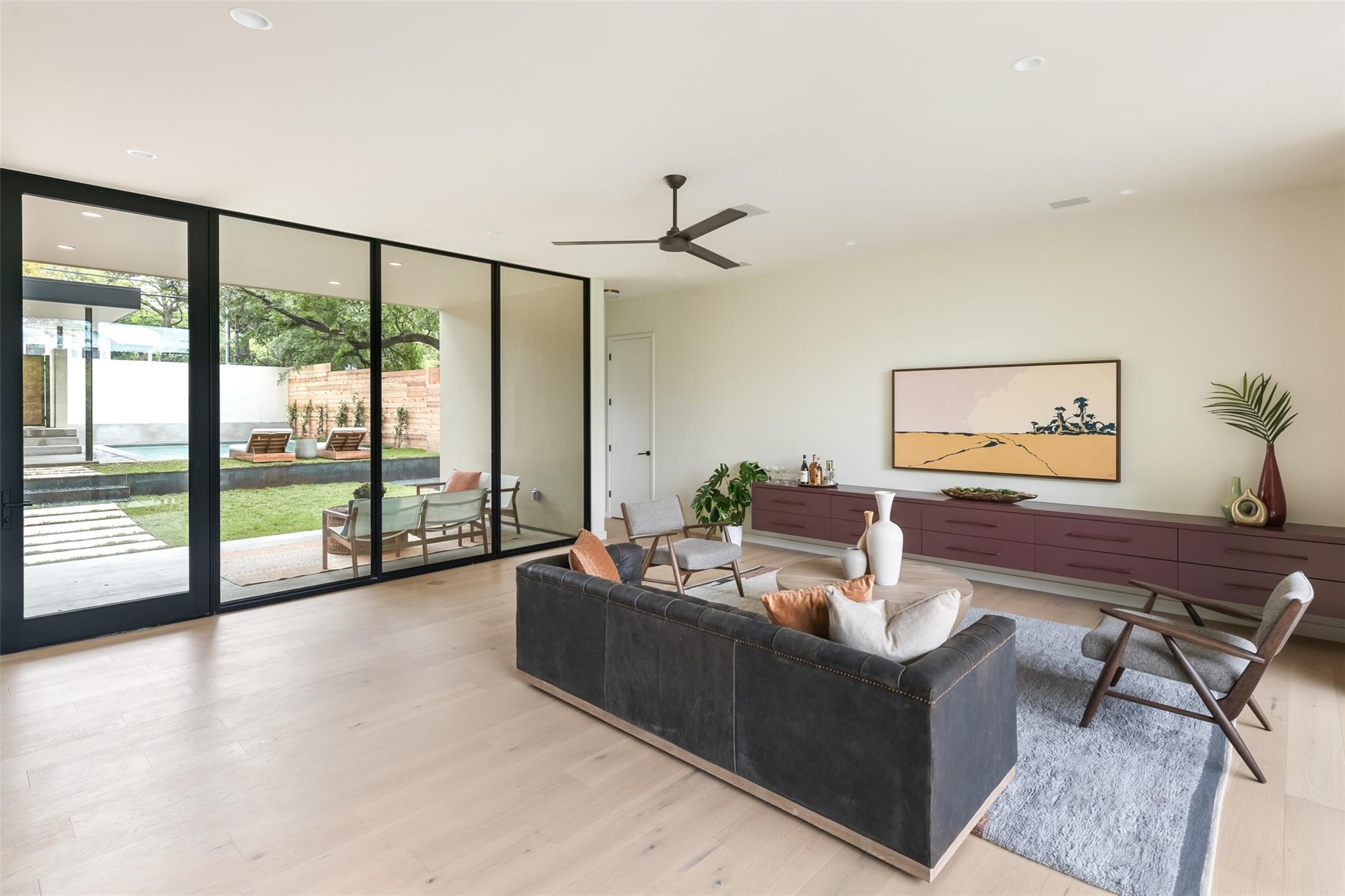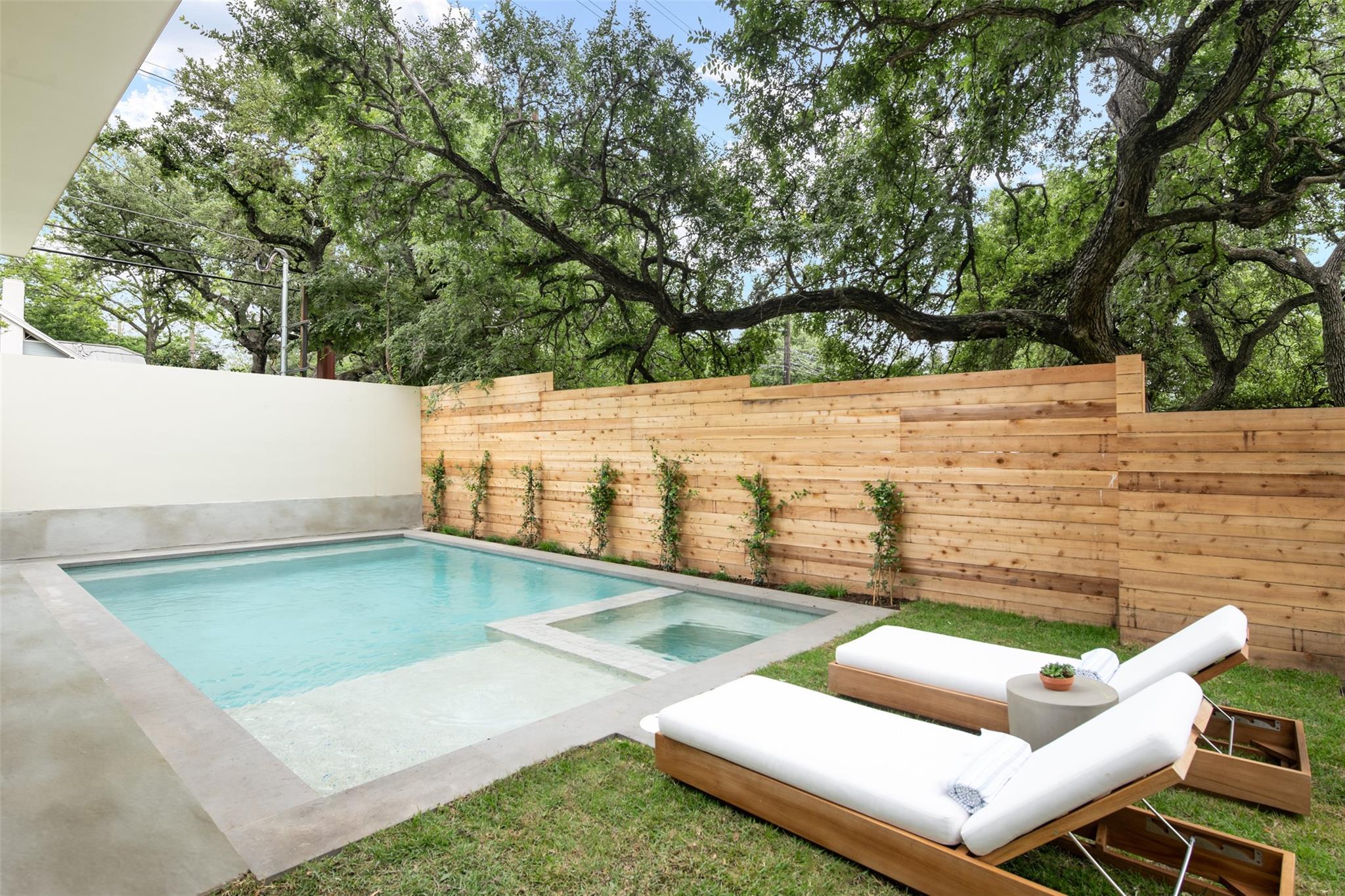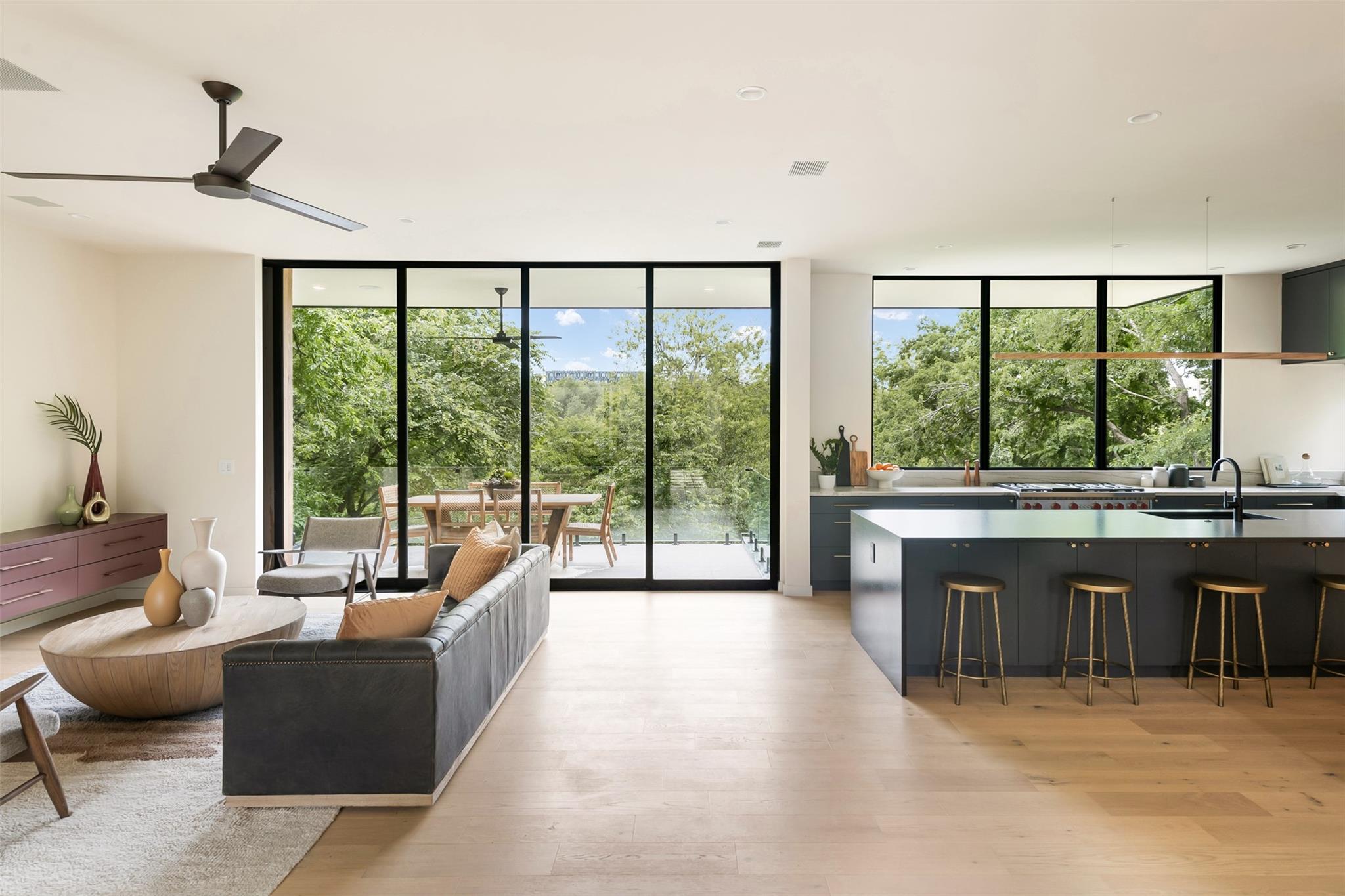 Welcome to the The Canopy Residence of Bouldin. Refined. Intentional. Captivating. If you are looking for something special in 78704 with finishes found in high-end custom homes, this is it! Located in the extremely walkable Bouldin Creek neighborhood. This stunning 4-bedroom, 4.5-bathroom house at 3621 square feet is designed to bring nature in. The home features multiple floors of 10' tall Western sliders and windows that open up to multiple, massive balconies overlooking tree canopies. Complete with a swanky, front courtyard featuring a pool, hot tub and seating areas. Open-concept kitchen/living/dining space, features custom cabinetry and an oversized island with waterfall countertops. It is properly equipped with a Wolf gas range, cabinet-cladded Sub Zero refrigeration, The expansive living and dining have windows on two sides offering optimal natural light. Upstairs, has the majority of your bedrooms including the back half of the floor is all dedicated to the Primary bedroom suite offering a massive master bath with a freestanding tub with a separate walk-in shower. Turn the corner and walk into the Well equipped massive master closet. The front side of the second story has two gracious front bedrooms that include their own private ensuite bathrooms. Each have beautiful views of the front courtyard and stunning live oaks. From the first floor walk down to the catacomb nestled into the hillside featuring 10’ ceilings where your media/game room is located with a full bath and your fourth bedroom with access to the lower terrace. With its refined design elements and intentional spaces, the Canopy Residence of Bouldin is sure to be one of the most captivating homes you've seen in 78704. Architect: Narrative Architecture