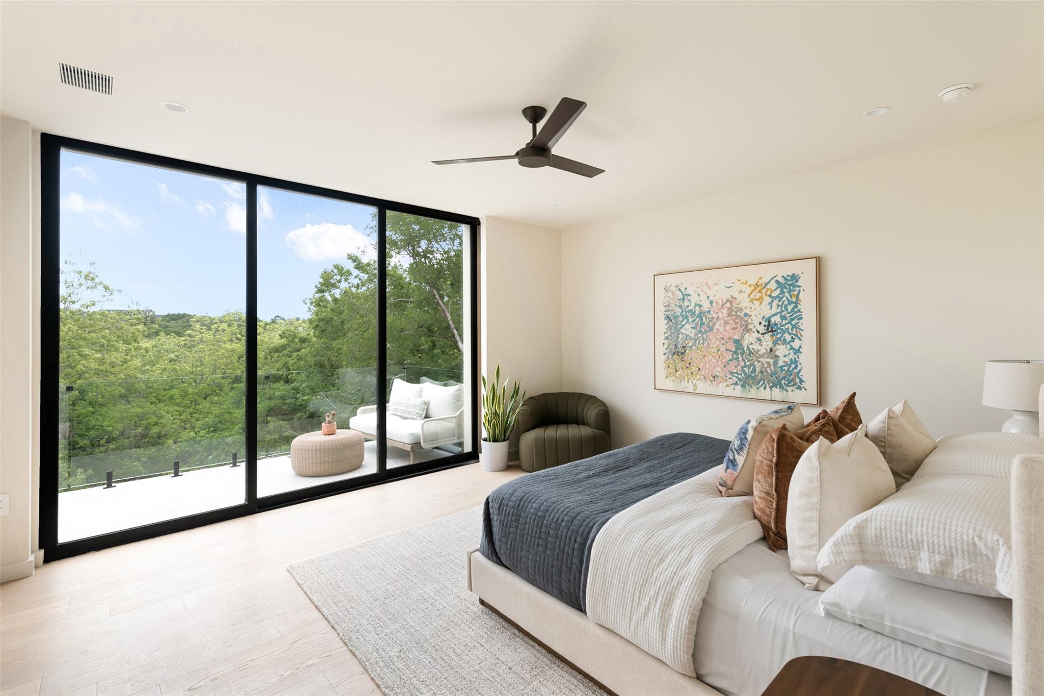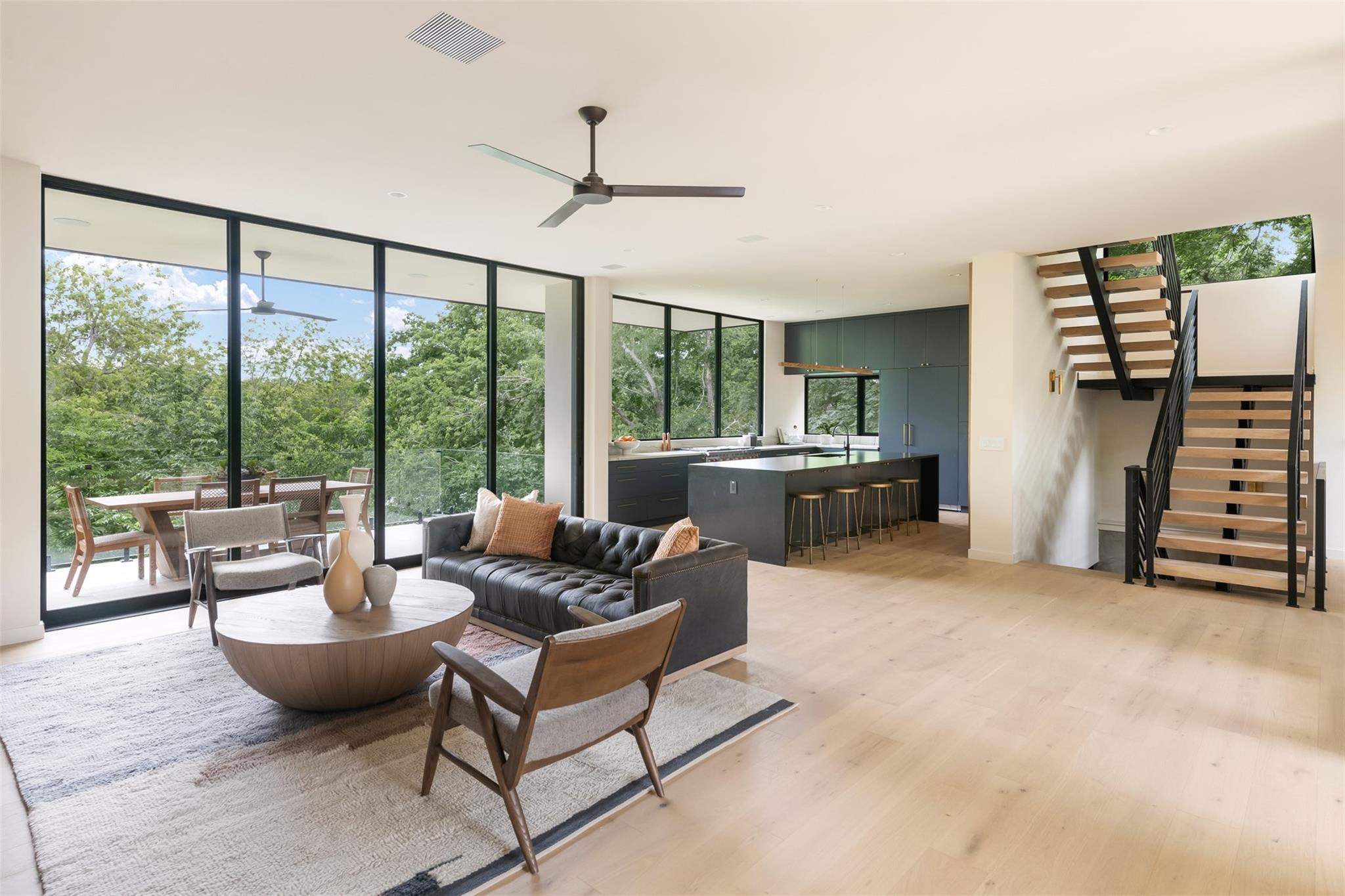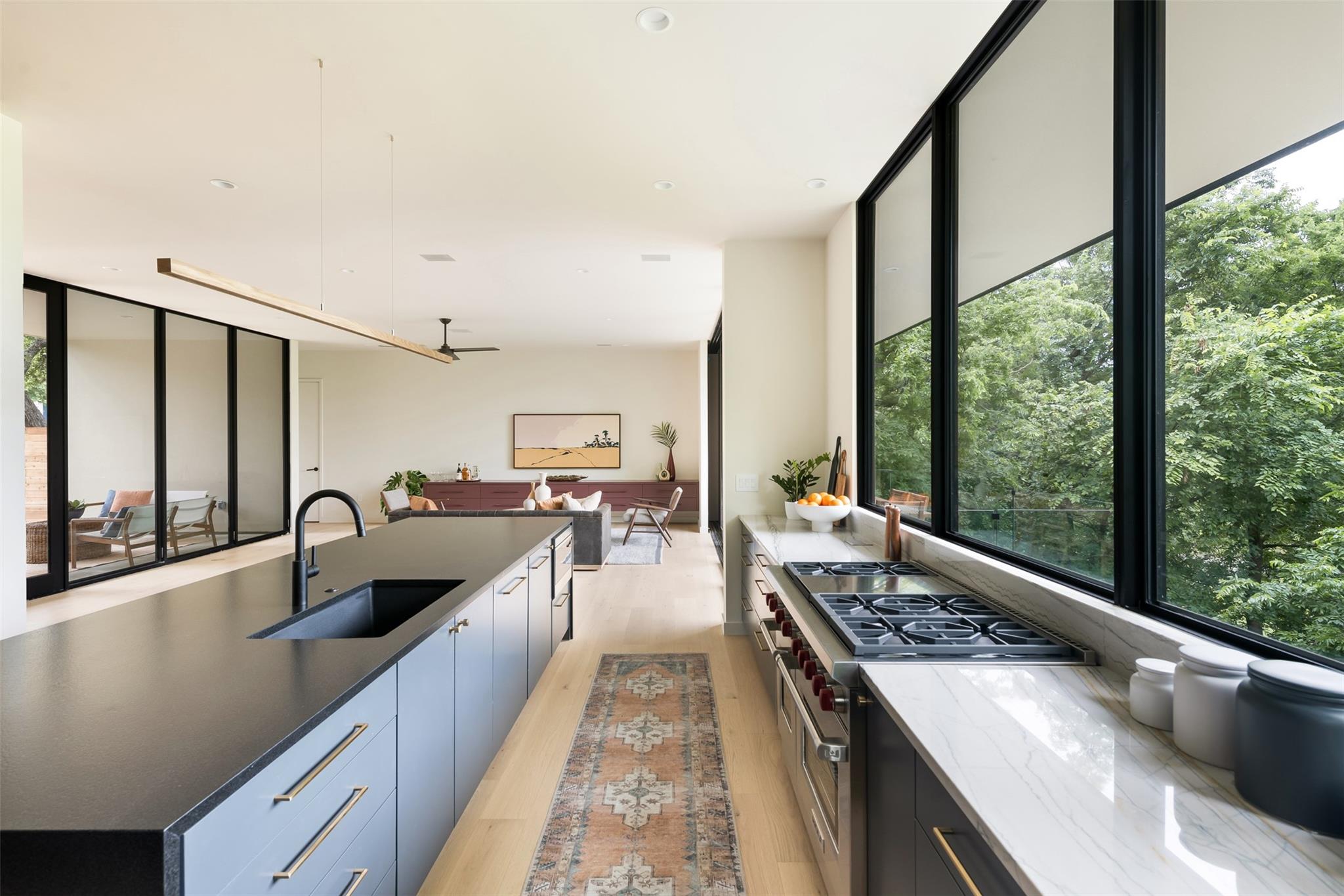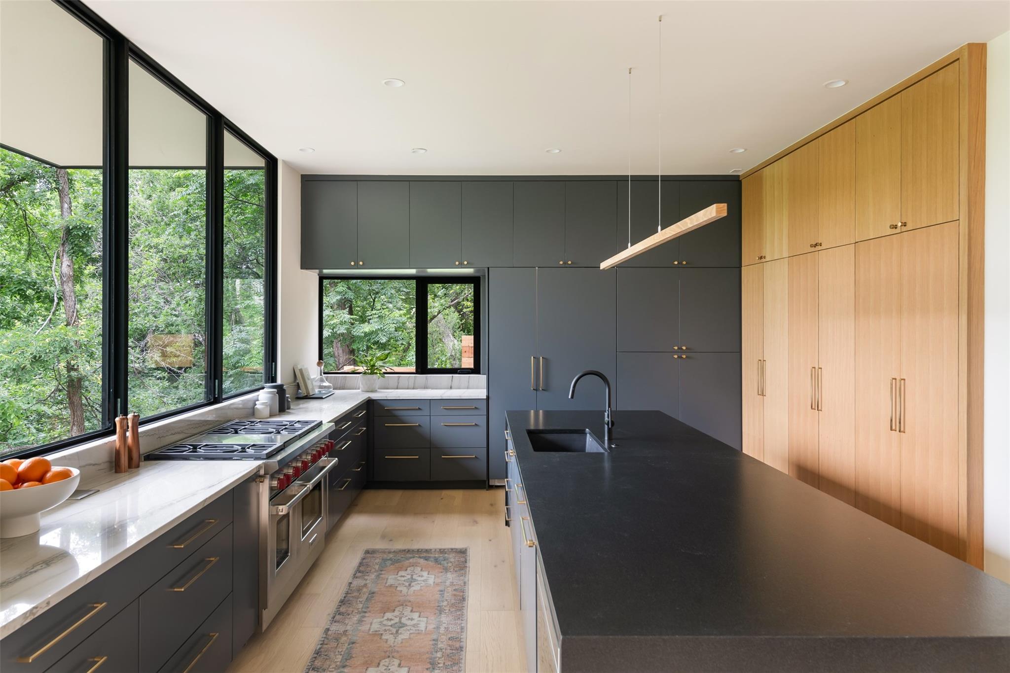 Welcome to the The Canopy Residence of Bouldin. Refined. Intentional. Captivating. If you are looking for something special in 78704 with finishes found in high-end custom homes, this is it! Located in the extremely walkable Bouldin Creek neighborhood. This stunning 4-bedroom, 4.5-bathroom house at 3621 square feet is designed to bring nature in. The home features multiple floors of 10' tall Western sliders and windows that open up to multiple, massive balconies overlooking tree canopies. Complete with a swanky, front courtyard featuring a pool, hot tub and seating areas. Open-concept kitchen/living/dining space, features custom cabinetry and an oversized island with waterfall countertops. It is properly equipped with a Wolf gas range, cabinet-cladded Sub Zero refrigeration, The expansive living and dining have windows on two sides offering optimal natural light. Upstairs, has the majority of your bedrooms including the back half of the floor is all dedicated to the Primary bedroom suite offering a massive master bath with a freestanding tub with a separate walk-in shower. Turn the corner and walk into the Well equipped massive master closet. The front side of the second story has two gracious front bedrooms that include their own private ensuite bathrooms. Each have beautiful views of the front courtyard and stunning live oaks. From the first floor walk down to the catacomb nestled into the hillside featuring 10’ ceilings where your media/game room is located with a full bath and your fourth bedroom with access to the lower terrace. With its refined design elements and intentional spaces, the Canopy Residence of Bouldin is sure to be one of the most captivating homes you've seen in 78704. Architect: Narrative Architecture