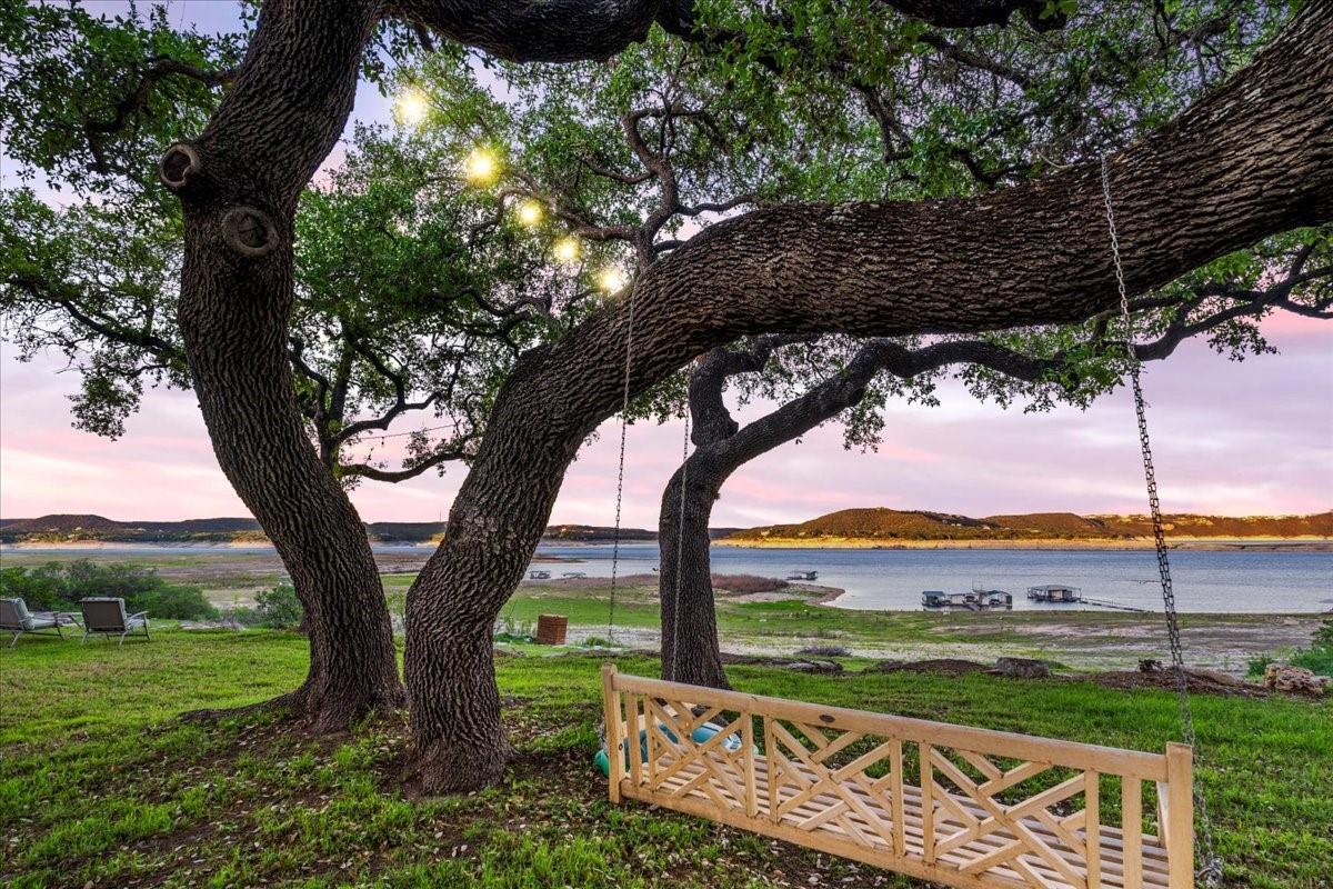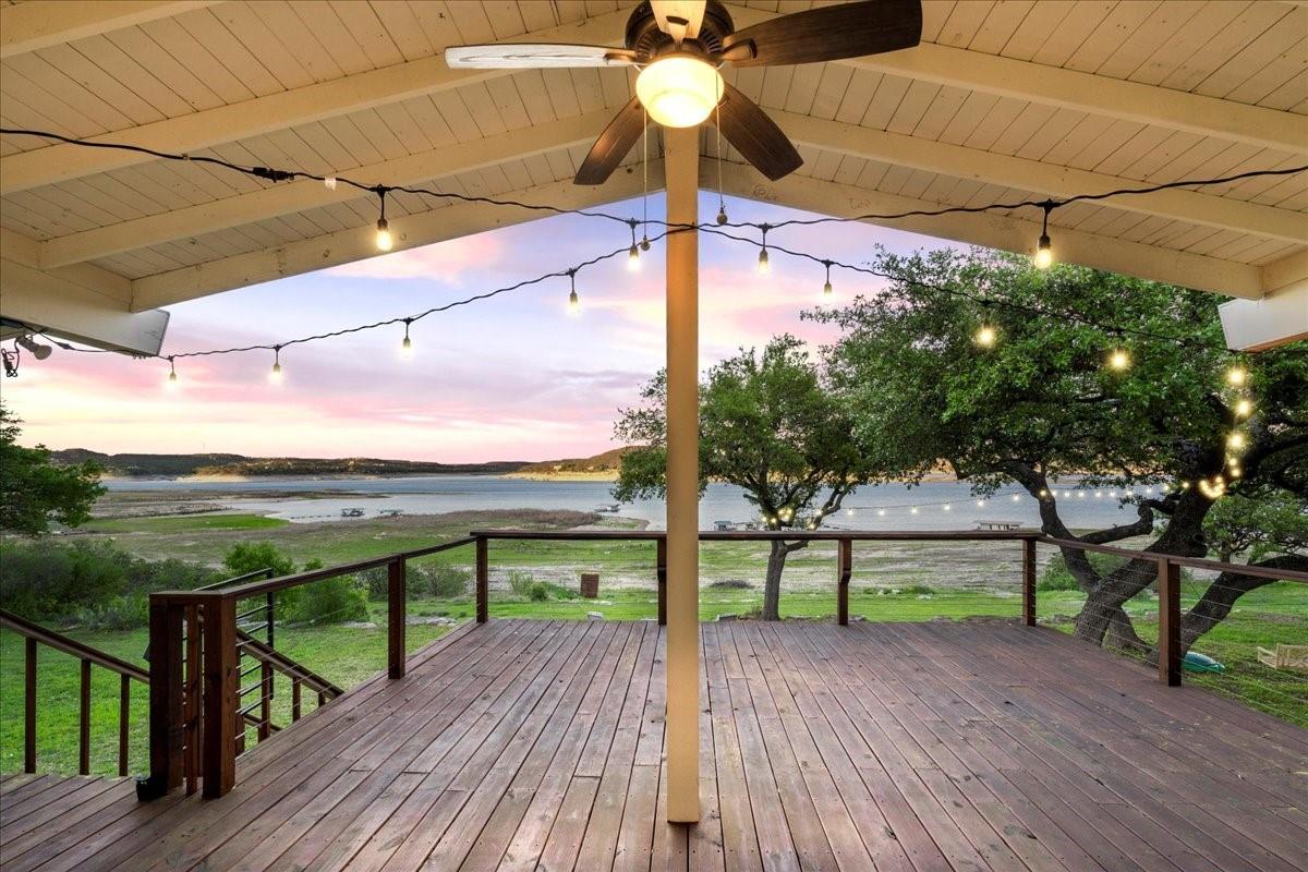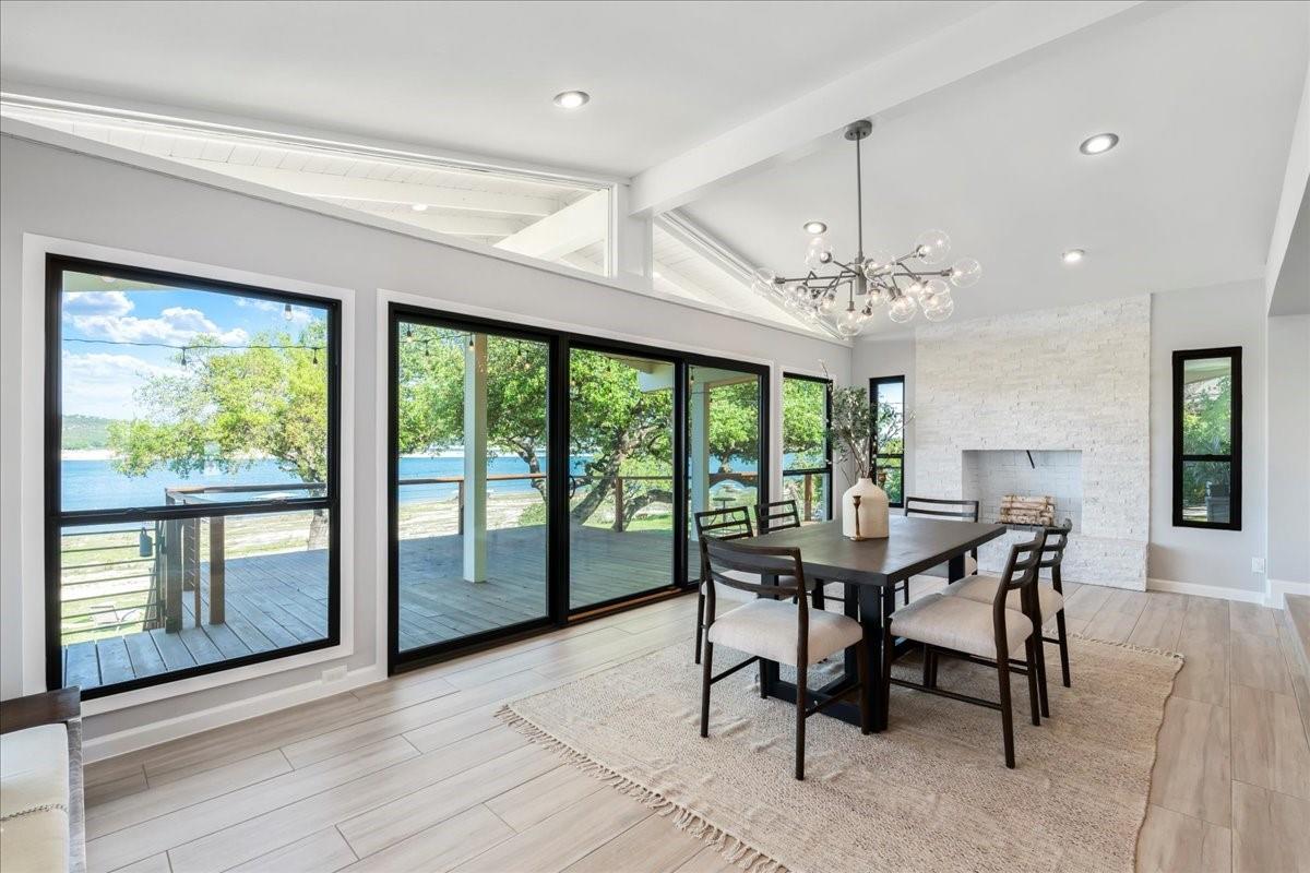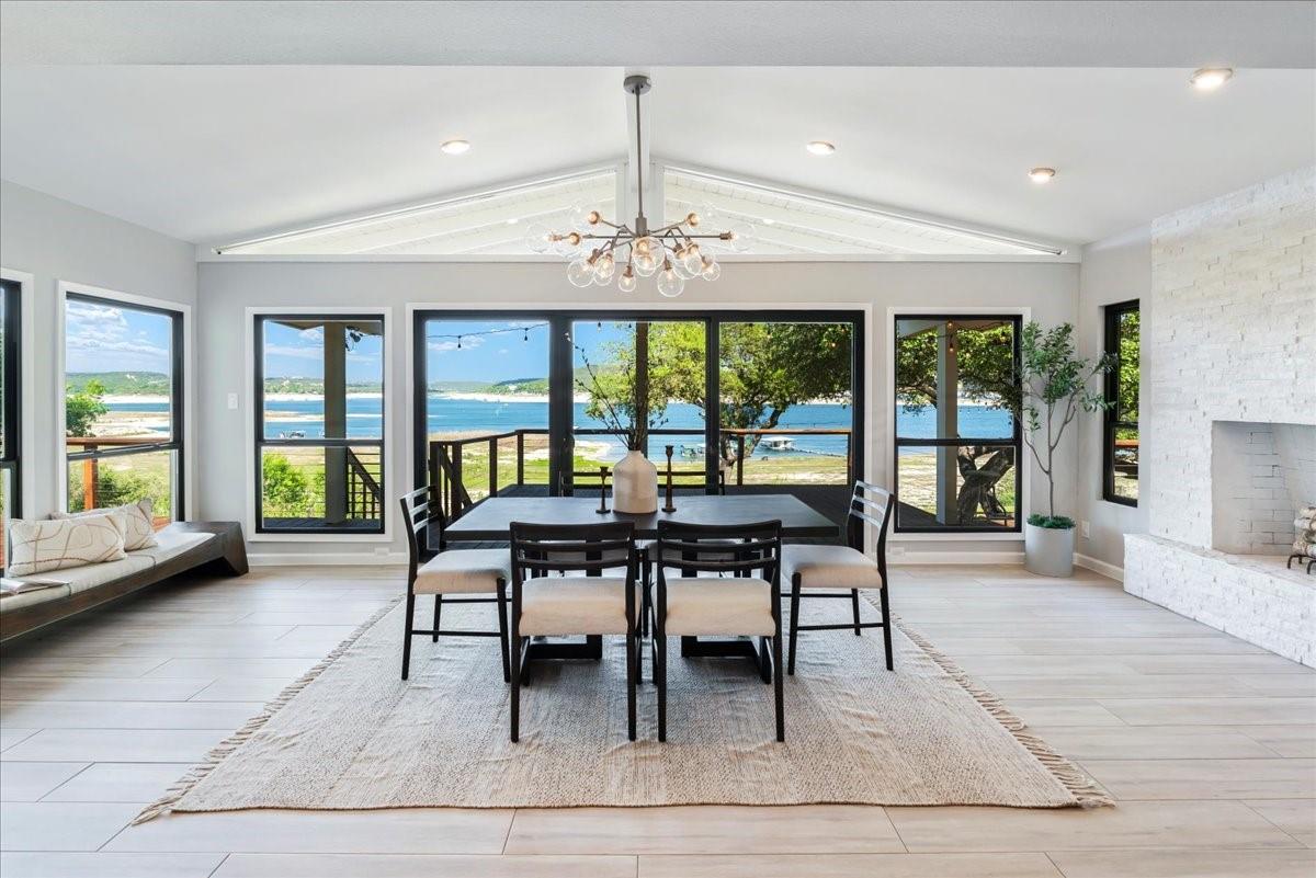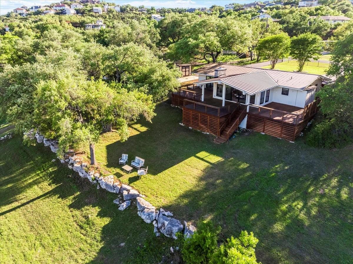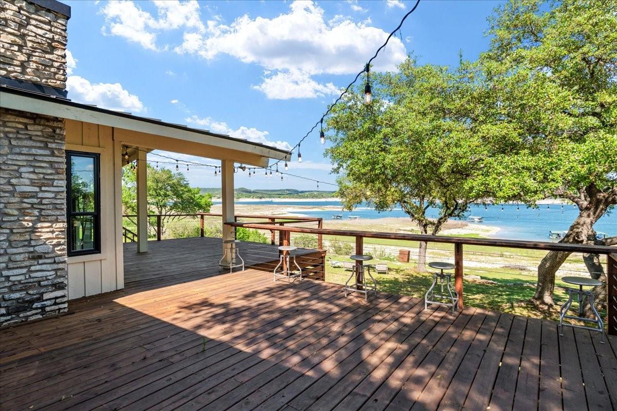 Bring your beach towels and sunscreen. This unique, completely updated, Lake Travis waterfront home is ready for you to move in and start living every day as if it’s a vacation. Quality and attention to detail are evident throughout the entire property. The home underwent a major renovation in 2019. Finish-out and appliances are top of the line, major systems including roof, septic, windows and HVAC were replaced, wifi controlled 12 station irrigation system installed in front and back yard in 2020. The property still retains a sense of place and character with the Texas limestone exterior. This isn’t another cookie-cutter contemporary home. Inside the home, an open floor plan offers lake views from the moment you walk in the front door. Enjoy preparing meals in the gourmet kitchen with stainless steel Viking appliances, a quartz waterfall eat-in island, quartz countertops and a wine fridge. Look out over the living area to the dining room which opens up right onto the deck and out onto the backyard and onto Lake Travis. The primary bedroom opens onto the deck and lake view. The primary bathroom features a double vanity, gold fixtures and a glass walk-in shower. Head out onto the back deck to enjoy dramatic sunrises and the violet crown cast over the lake and hills from the sunsets are unique to Austin. Head down to the property’s 1400 sqft, double slip boat dock with all concrete decking, two 12x28 slips, boat lift, double jet ski lift, a 16’ patio, Tarzan swing, 40 foot walkway, Touch-less boat cover and an enclosed closet. The property will also come with a one year maintenance contract on the dock. The home is located in the Travis Landing neighborhood. Property owners get access to the 35 acre private waterfront park that features two deep water boat ramps, boat storage, a playground, frisbee golf course, picnic areas and hike and bike trails. The home is located less than a mile from the park gate. Close to dining, acclaimed LTISD schools and shopping.