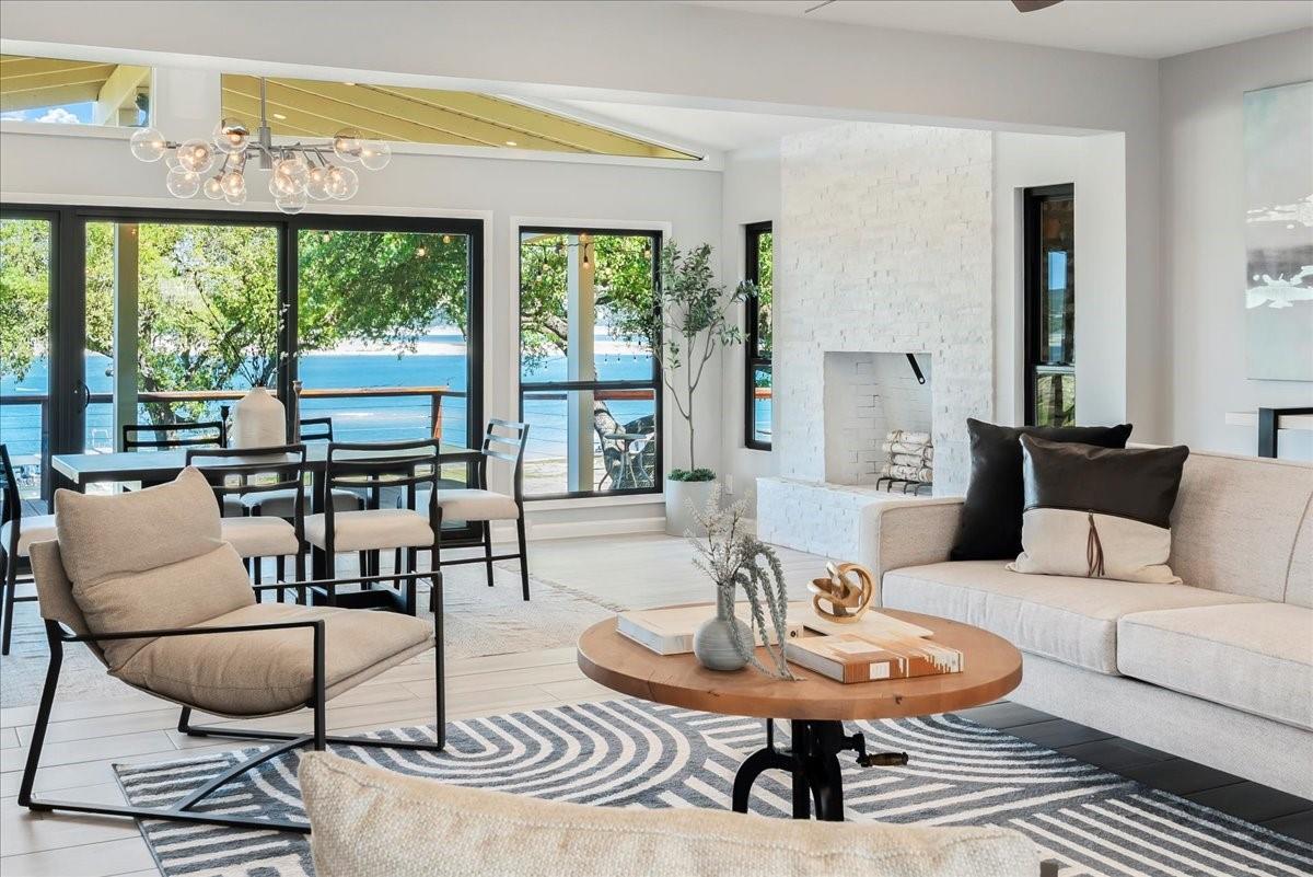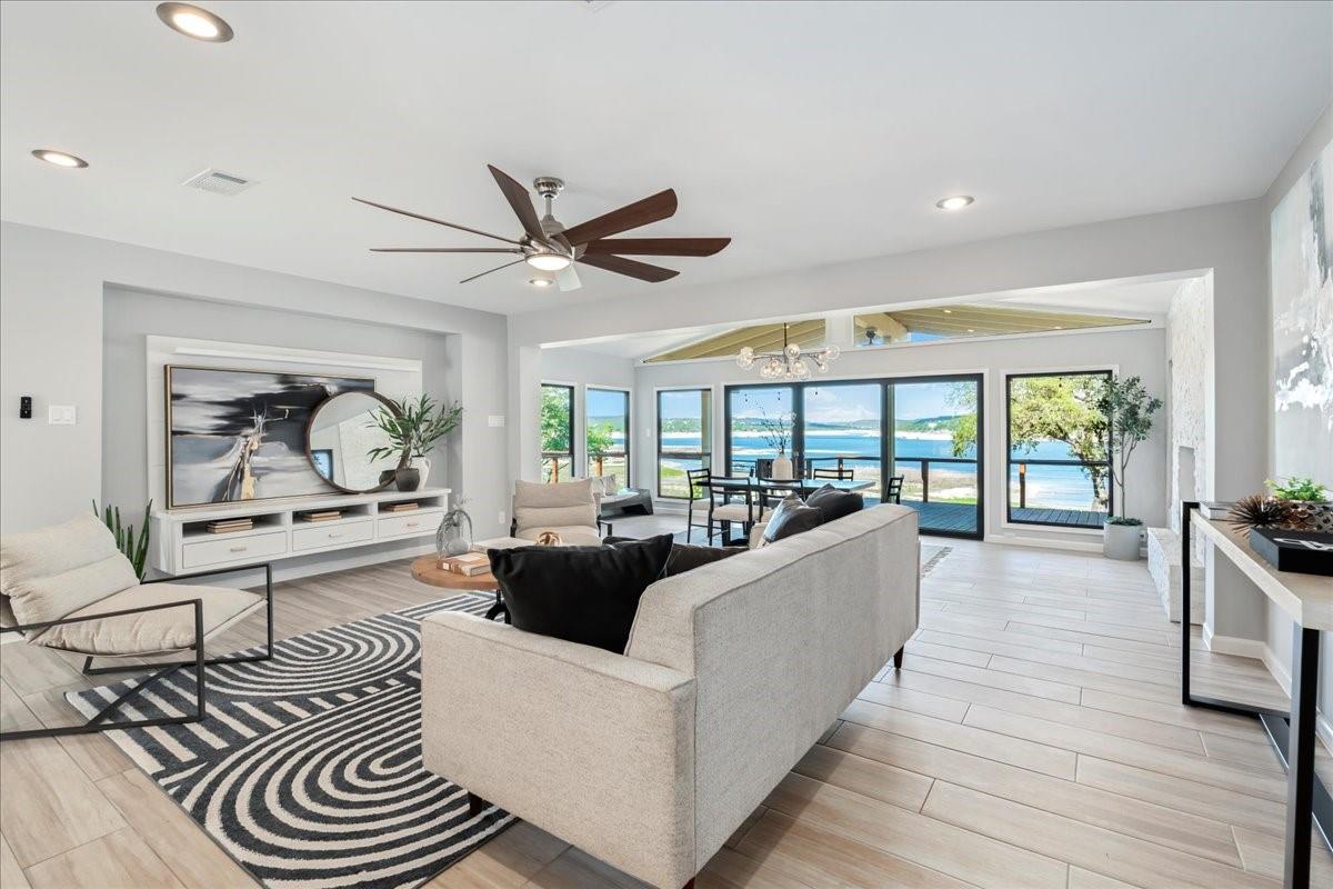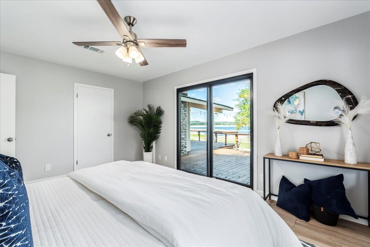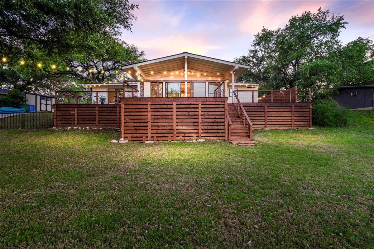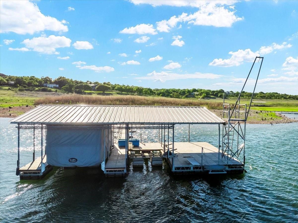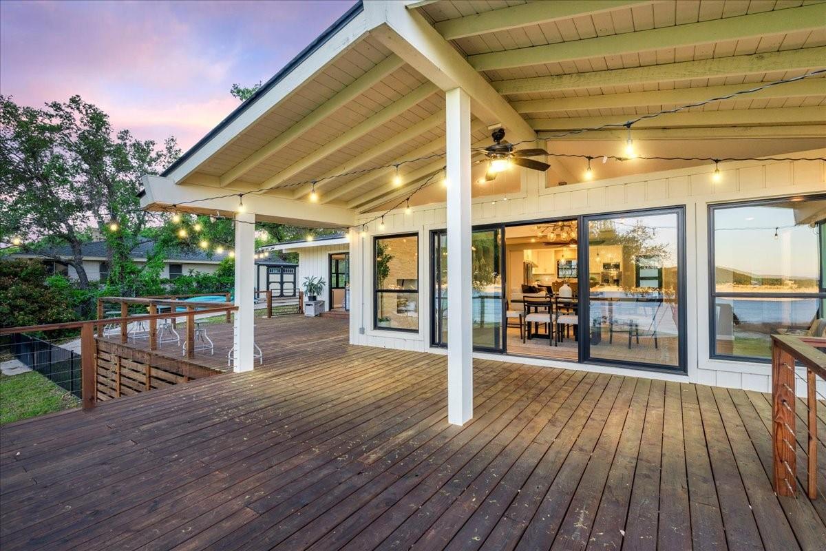 Bring your beach towels and sunscreen. This unique, completely updated, Lake Travis waterfront home is ready for you to move in and start living every day as if it’s a vacation. Quality and attention to detail are evident throughout the entire property. The home underwent a major renovation in 2019. Finish-out and appliances are top of the line, major systems including roof, septic, windows and HVAC were replaced, wifi controlled 12 station irrigation system installed in front and back yard in 2020. The property still retains a sense of place and character with the Texas limestone exterior. This isn’t another cookie-cutter contemporary home. Inside the home, an open floor plan offers lake views from the moment you walk in the front door. Enjoy preparing meals in the gourmet kitchen with stainless steel Viking appliances, a quartz waterfall eat-in island, quartz countertops and a wine fridge. Look out over the living area to the dining room which opens up right onto the deck and out onto the backyard and onto Lake Travis. The primary bedroom opens onto the deck and lake view. The primary bathroom features a double vanity, gold fixtures and a glass walk-in shower. Head out onto the back deck to enjoy dramatic sunrises and the violet crown cast over the lake and hills from the sunsets are unique to Austin. Head down to the property’s 1400 sqft, double slip boat dock with all concrete decking, two 12x28 slips, boat lift, double jet ski lift, a 16’ patio, Tarzan swing, 40 foot walkway, Touch-less boat cover and an enclosed closet. The property will also come with a one year maintenance contract on the dock. The home is located in the Travis Landing neighborhood. Property owners get access to the 35 acre private waterfront park that features two deep water boat ramps, boat storage, a playground, frisbee golf course, picnic areas and hike and bike trails. The home is located less than a mile from the park gate. Close to dining, acclaimed LTISD schools and shopping.