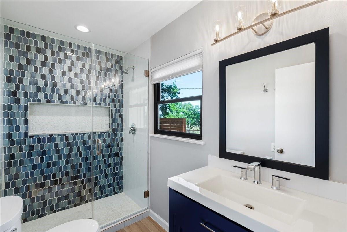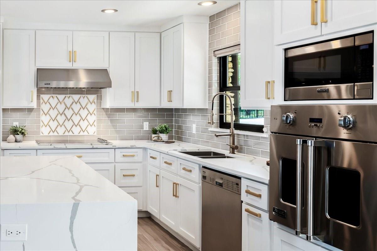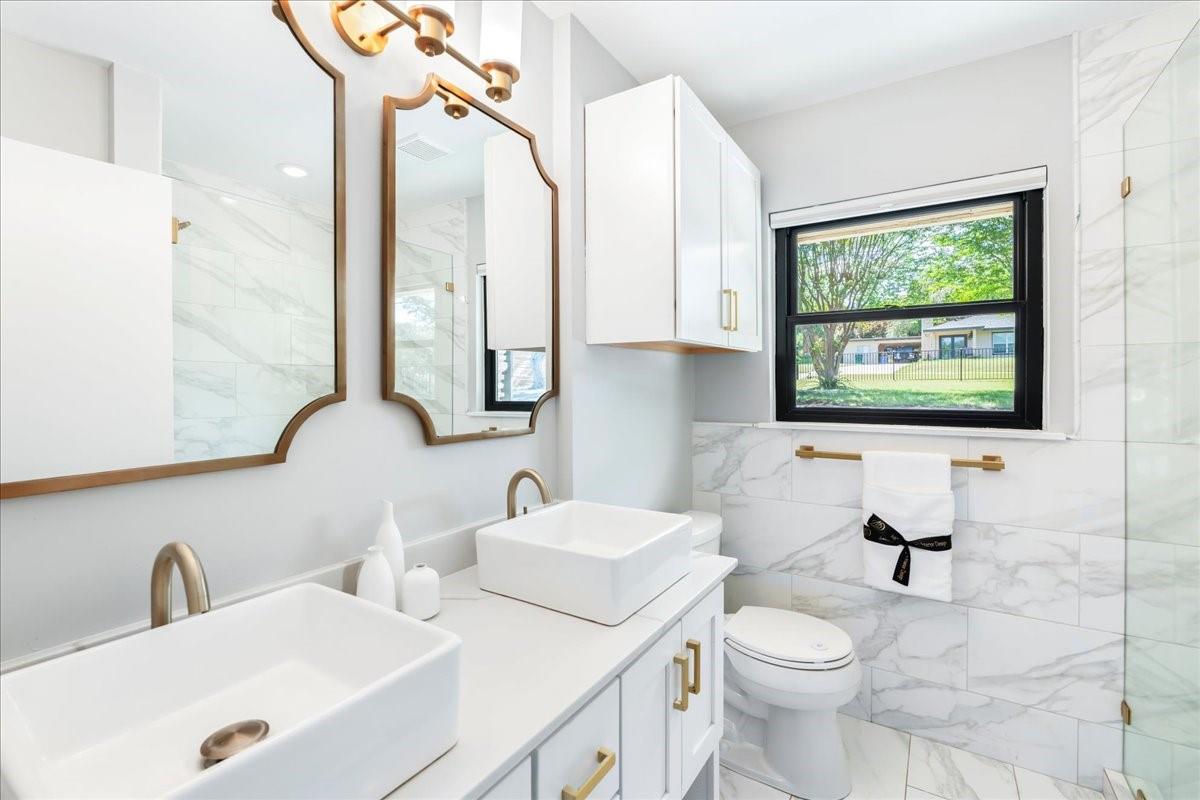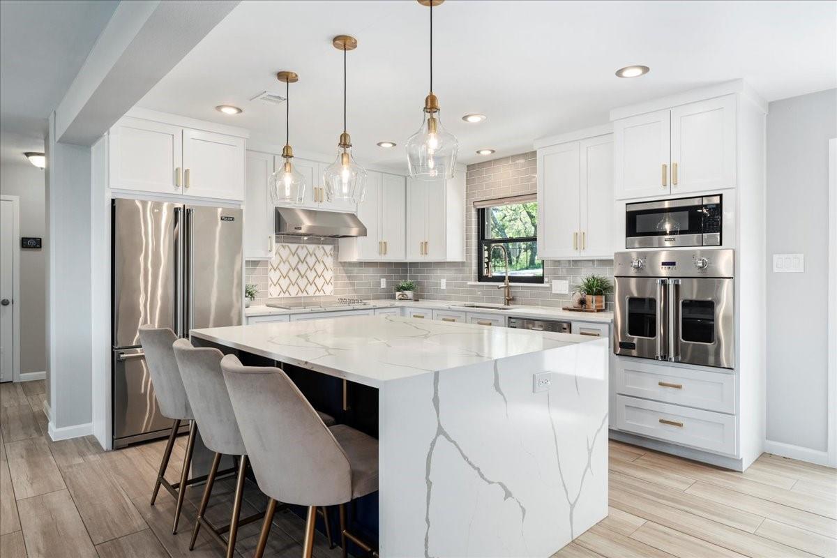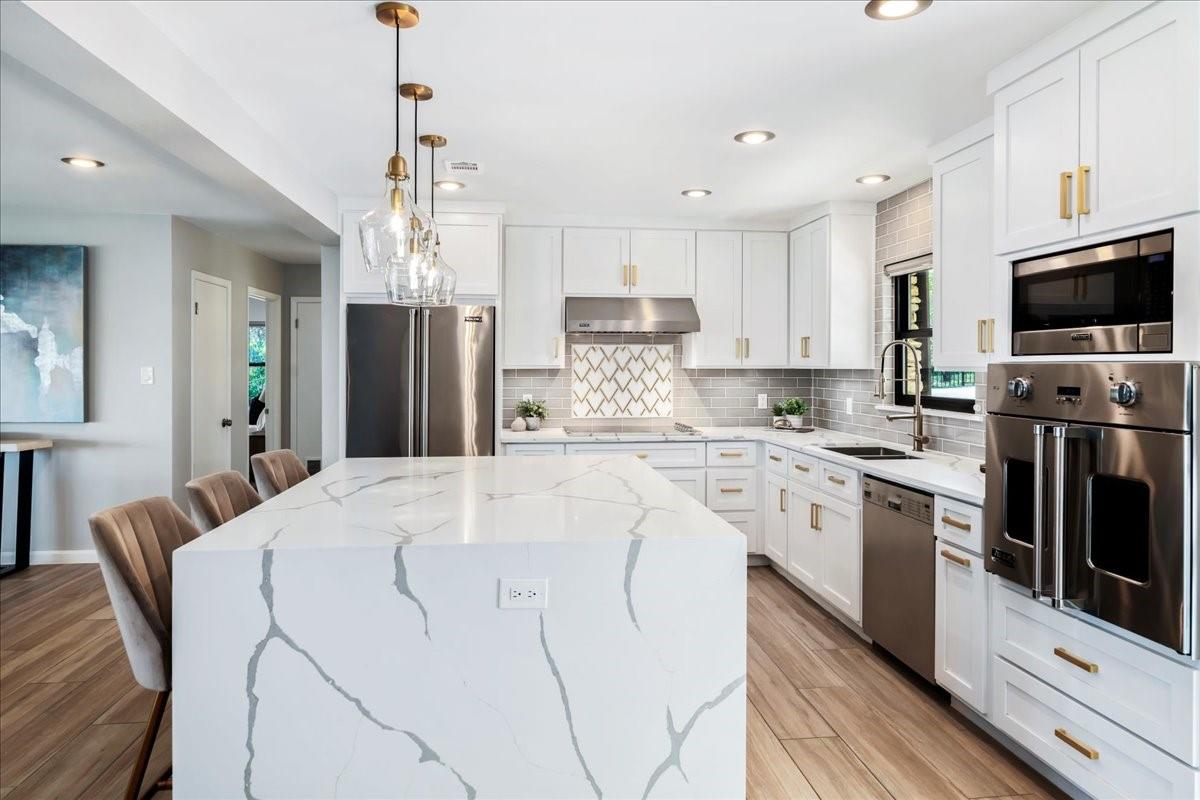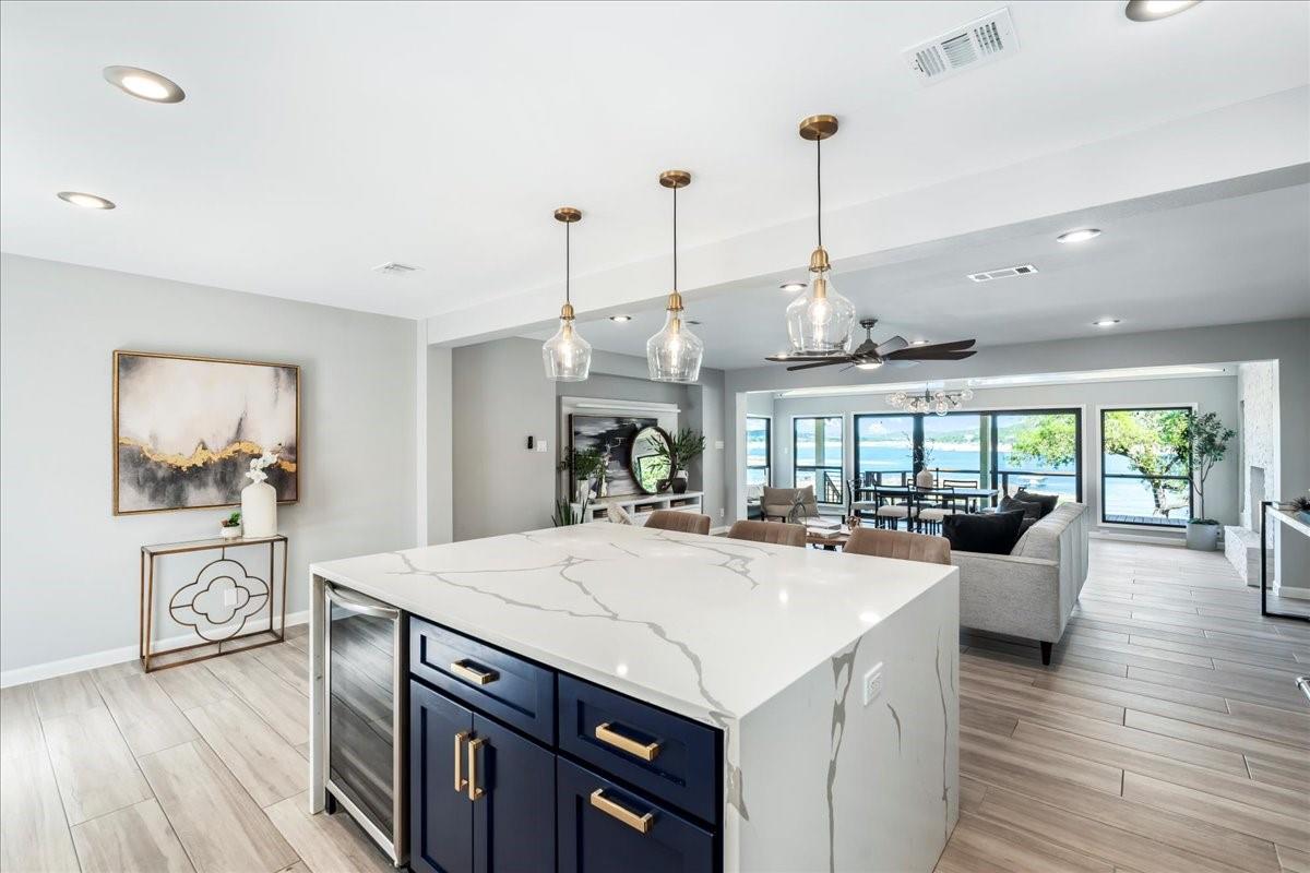 Bring your beach towels and sunscreen. This unique, completely updated, Lake Travis waterfront home is ready for you to move in and start living every day as if it’s a vacation. Quality and attention to detail are evident throughout the entire property. The home underwent a major renovation in 2019. Finish-out and appliances are top of the line, major systems including roof, septic, windows and HVAC were replaced, wifi controlled 12 station irrigation system installed in front and back yard in 2020. The property still retains a sense of place and character with the Texas limestone exterior. This isn’t another cookie-cutter contemporary home. Inside the home, an open floor plan offers lake views from the moment you walk in the front door. Enjoy preparing meals in the gourmet kitchen with stainless steel Viking appliances, a quartz waterfall eat-in island, quartz countertops and a wine fridge. Look out over the living area to the dining room which opens up right onto the deck and out onto the backyard and onto Lake Travis. The primary bedroom opens onto the deck and lake view. The primary bathroom features a double vanity, gold fixtures and a glass walk-in shower. Head out onto the back deck to enjoy dramatic sunrises and the violet crown cast over the lake and hills from the sunsets are unique to Austin. Head down to the property’s 1400 sqft, double slip boat dock with all concrete decking, two 12x28 slips, boat lift, double jet ski lift, a 16’ patio, Tarzan swing, 40 foot walkway, Touch-less boat cover and an enclosed closet. The property will also come with a one year maintenance contract on the dock. The home is located in the Travis Landing neighborhood. Property owners get access to the 35 acre private waterfront park that features two deep water boat ramps, boat storage, a playground, frisbee golf course, picnic areas and hike and bike trails. The home is located less than a mile from the park gate. Close to dining, acclaimed LTISD schools and shopping.