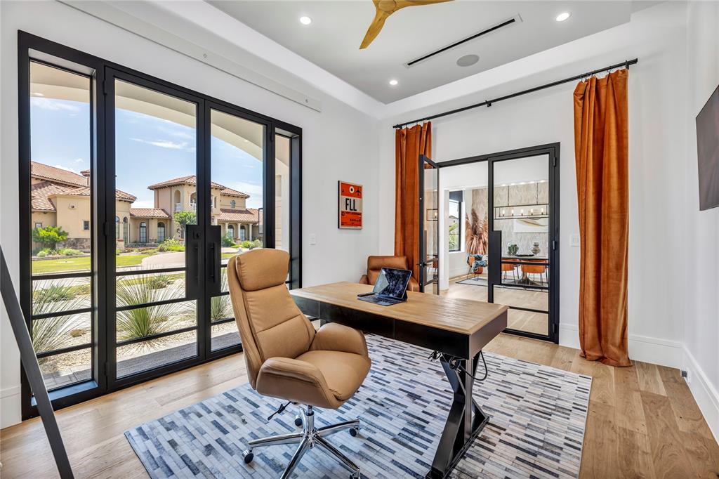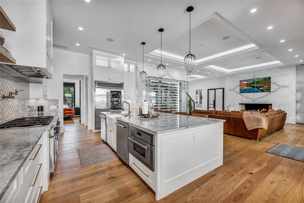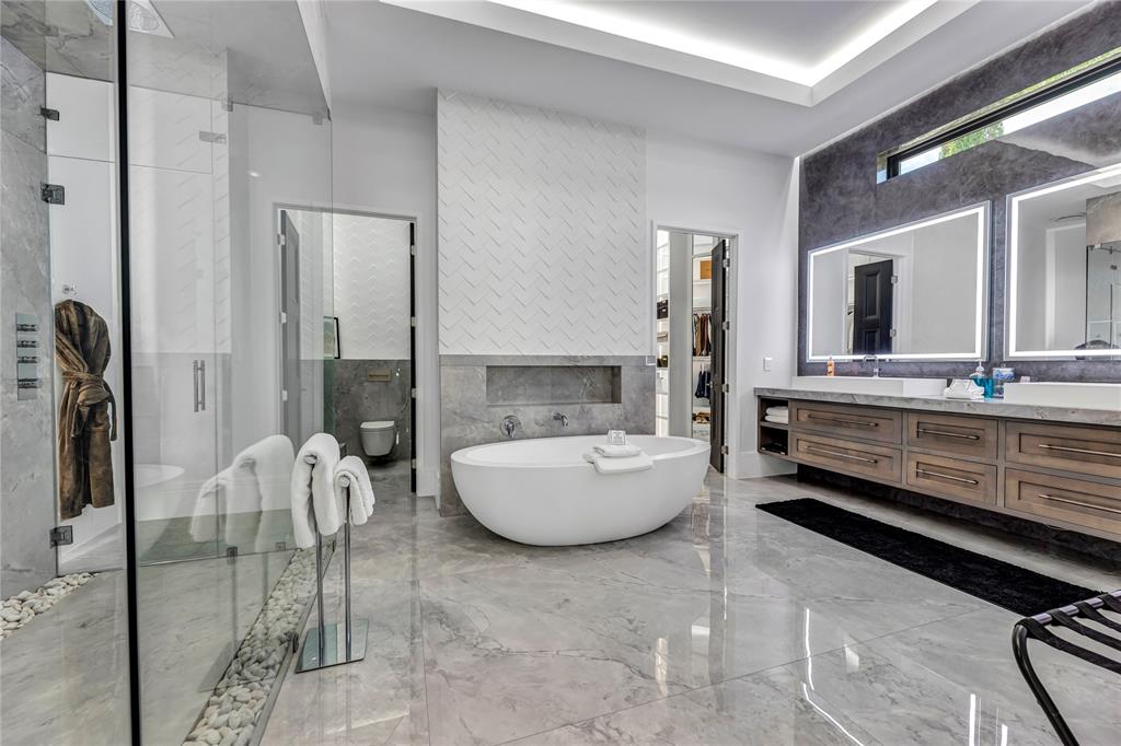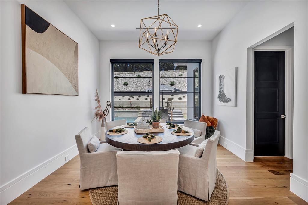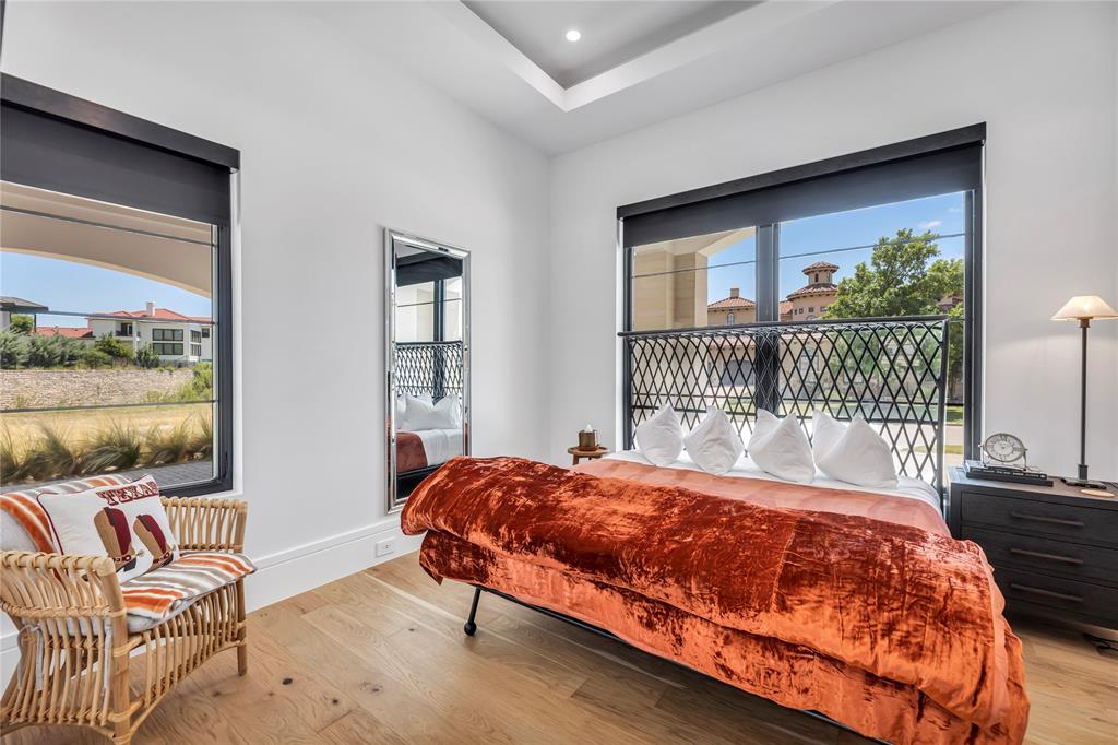 Another gorgeous home built by Texas Artisan Builders located in the upscale lakeside neighborhood of Waters Edge. Meticulous attention to detail with ultra-luxurious finishes throughout. Four bedroom and 3 bathrooms with imported Italian water fixtures, wide plank white oak floors illuminated by LED cove lighting and stunning floor to ceiling cabinetry. Electronic blinds throughout the home and a $75K technology package has been added. The kitchen is a true chefs dream with grey goose marble counters and a sub Zero Thermador kitchen package while the outdoor Hestan kitchen package is made for entertaining. Enjoy a glass of wine from the beautiful wine display which is near the indoor Masonite combustible fireplace. Step outside and enjoy the heated pool and spa or unwind with and hang out in the movie room. When you're ready to turn in, enter the luxurious primary suite which features a his and her closet, one with a 200 sq ft. mirror clad and illuminated shelves. Your pets will feel at home with the built in pet home and pet shower. Rough Hollow Amenities include multiple pools, playgrounds, tennis/basketball courts, paddle boarding, gym, pavilion, and more.