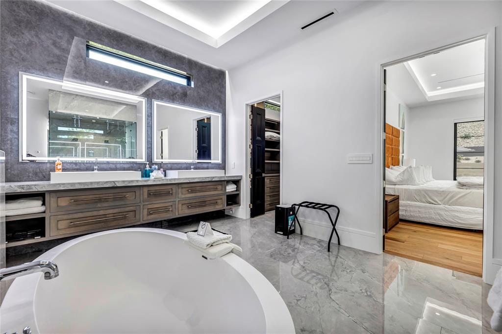| Interior Features | Built-in Features, Ceiling Fan(s), High Ceilings, Tray Ceiling(s), Double Vanity, Electric Dryer Hookup, Gas Dryer Hookup, Eat-in Kitchen, French Doors, Interior Steps, Low Flow Plumbing Fixtures, Natural Woodwork, Open Floorplan, Pantry, Recessed Lighting, Smart Home, Smart Thermostat, Soaking Tub, Sound System, Storage, Track Lighting, Two Primary Closets, Walk-In Closet(s), WaterSense Fixture(s), Wet Bar, Wired for Data | |