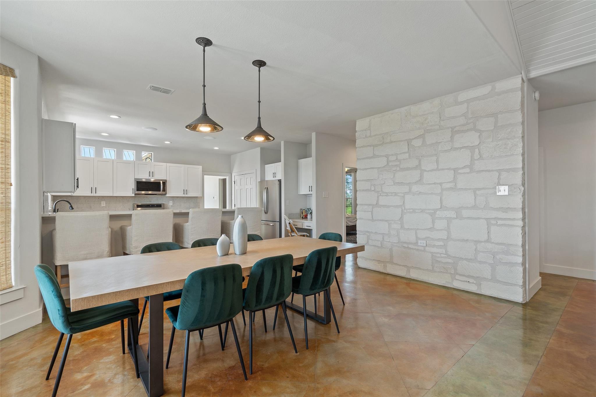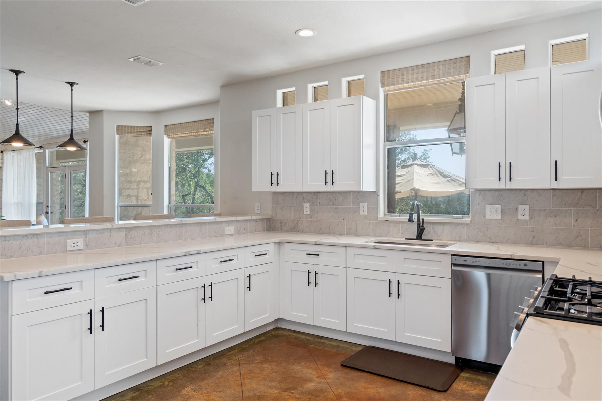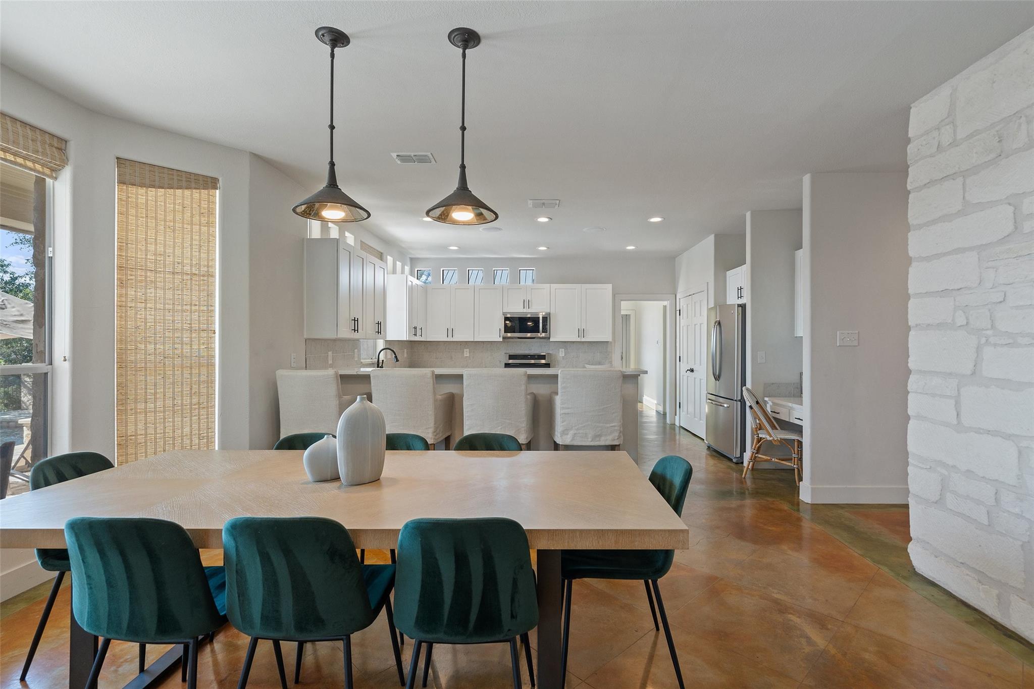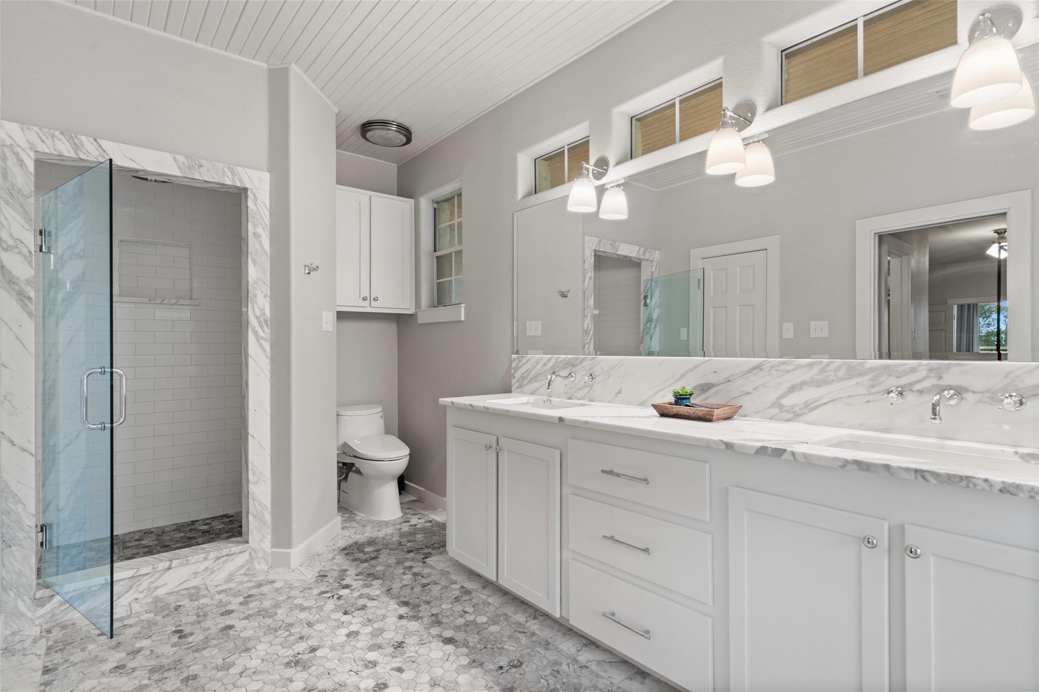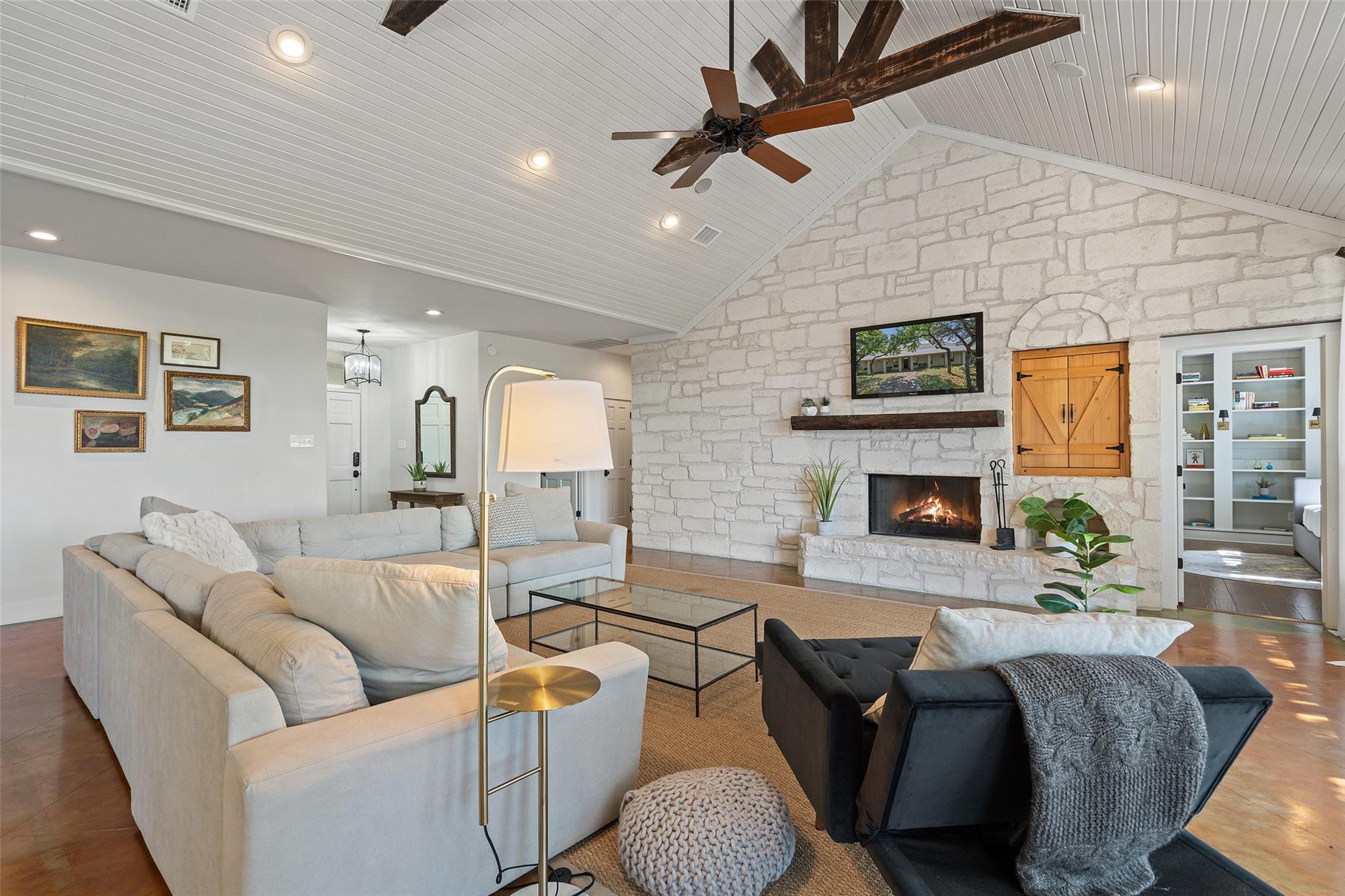 | Interior Features | Two Primary Suties, Bookcases, Breakfast Bar, Built-in Features, Beamed Ceilings, High Ceilings, Vaulted Ceiling(s), Stone Counters, Double Vanity, Eat-in Kitchen, In-Law Floorplan, Multiple Dining Areas, Multiple Living Areas, Natural Woodwork, Open Floorplan, Pantry, Primary Bedroom on Main, Recessed Lighting, Soaking Tub, Storage, Two Primary Closets, Walk-In Closet(s), Washer Hookup, Wired for Sound, See Remarks | |