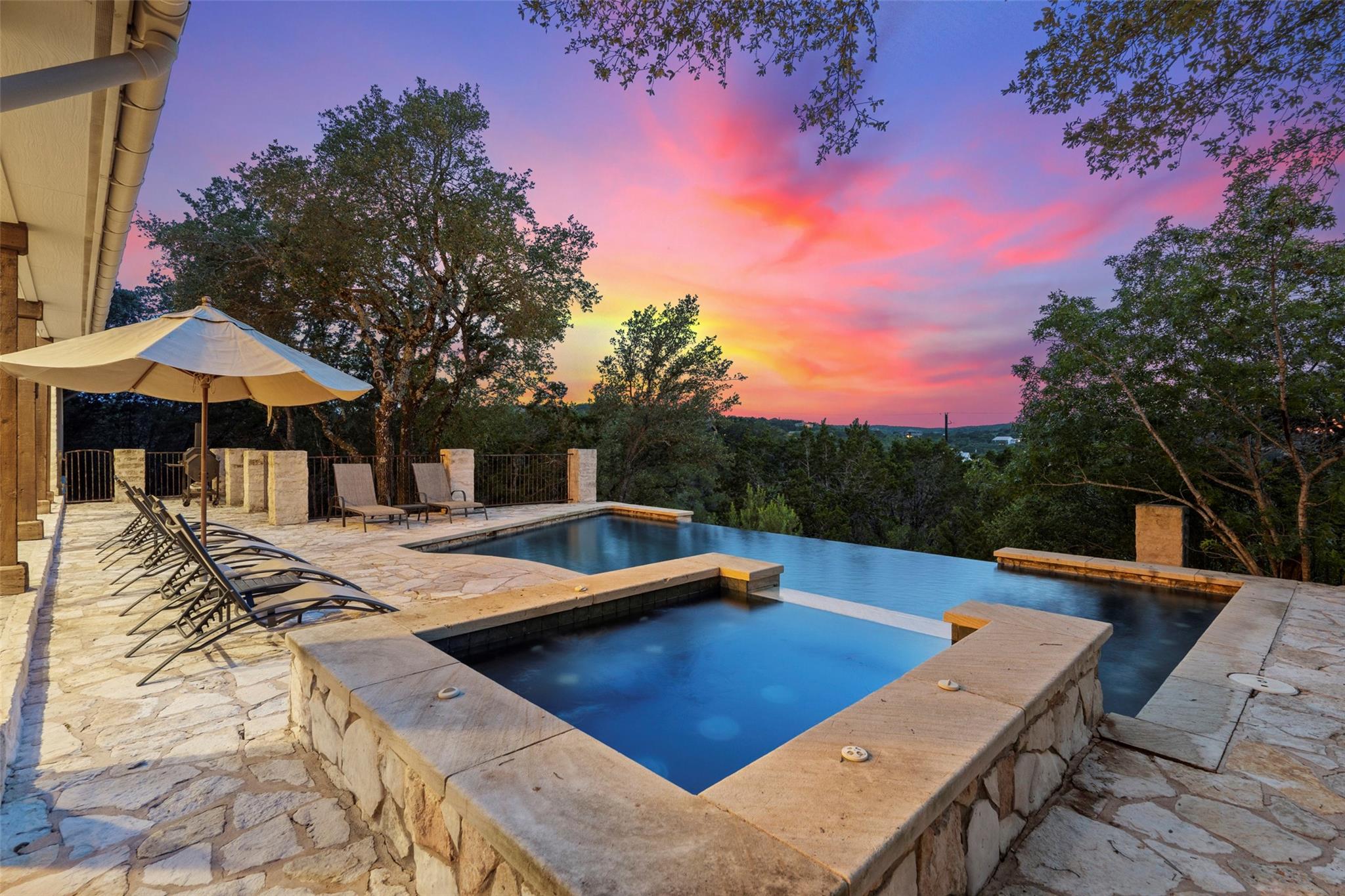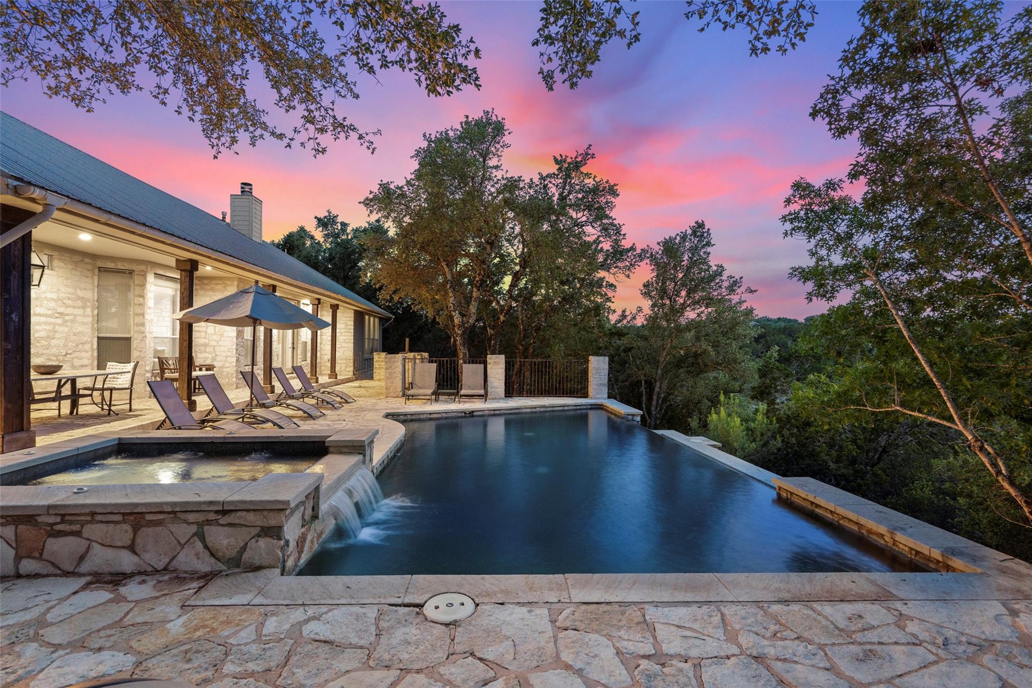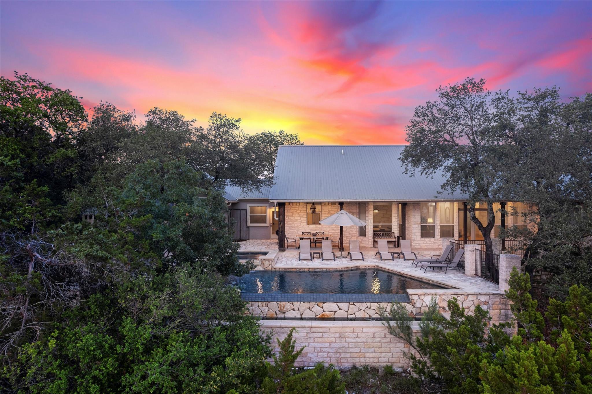 Truly a unicorn, incredible secluded lifestyle residence / vacation home on approx 4.5 very lightly restricted mountaintop acres with expansive views and just 20 minutes from downtown Austin. Classic stone & timber Hill Country ranch style home exudes a warmth, honesty and classic elegance that is authentic and increasingly rare. Extraordinary sunset views from the negative edge pool/ hot tub. The luxurious pool deck features a classic stone fireplace, outdoor bbq area and smoker, waterfall, more - ideal for large gatherings and entertaining or just quiet relaxation. The heart of the main residence is the expansive living room featuring soaring tongue & groove vaulted ceilings, timber trusses and a massive stone fireplace, all exuding true hill country charm. Indoor/ outdoor living spaces are second to none. Generous master suite itself includes multiple rooms - a library/ sitting area with custom bookshelves, through the french doors into the very generous master bedroom, past the double walk-in closets to the exquisite master bathroom. Enjoy the soaking tub while deer and other wildlife walk right past the picture window. Main home is 4 br + office, plus a a garage apartment with its own spectacular views over the detached two car garage/ workshop. Coveted Lake Travis ISD. Shopping + dining just minutes away at the Galleria, but once you enter the gate, wind through the trees, past the wildflowers to the circle drive, it feels like a private mountain oasis. Austin address but low Travis Co/ Bee Caves taxes. Includes both Lots 10 & 11 in The Homestead, one of the best kept secrets in Travis Co, small rural equestrian subdivision with huge wooded lots, luxury homes, voluntary HOA and the kind of freedom & privacy that is almost impossible to find this close in. A special and unique property with an incredible mix of attributes and assets. Available fully furnished for a turnkey vacation or 2nd home. Also available with Lots 10 & 11 combined for a total of 8+ acres